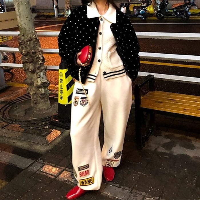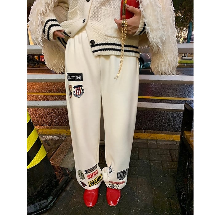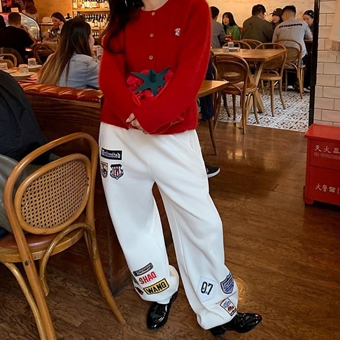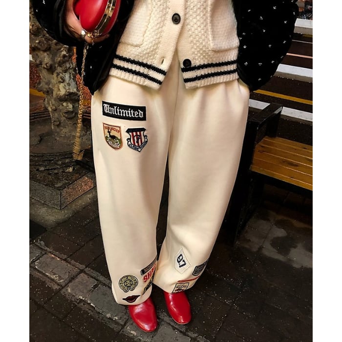 ワッペンウォームスウェットテーパードパンツ[S-L]