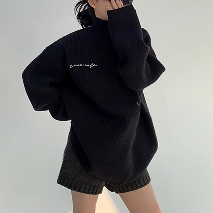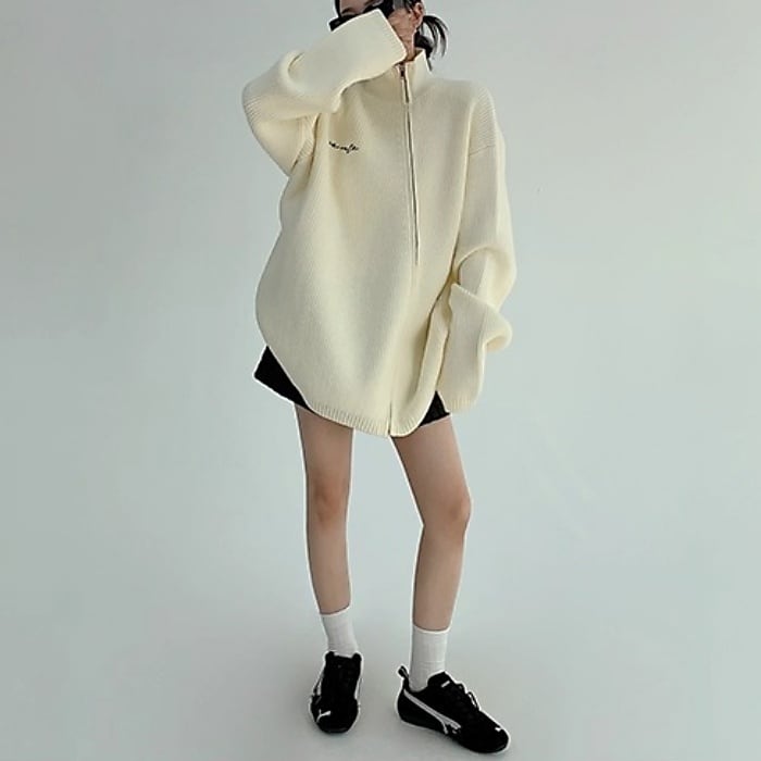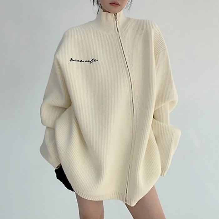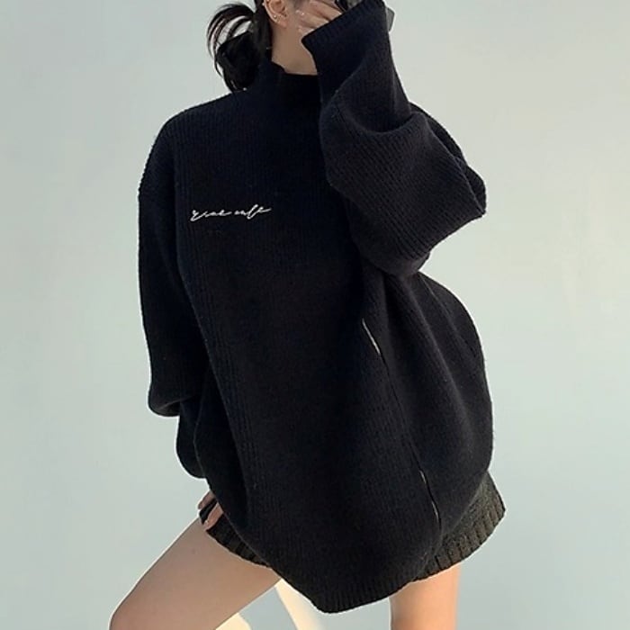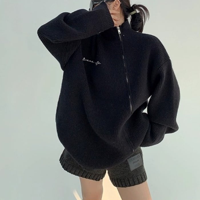 バイアスジッパースタンドカラールーズニット[M‐XXL]