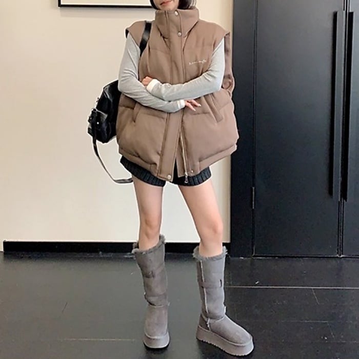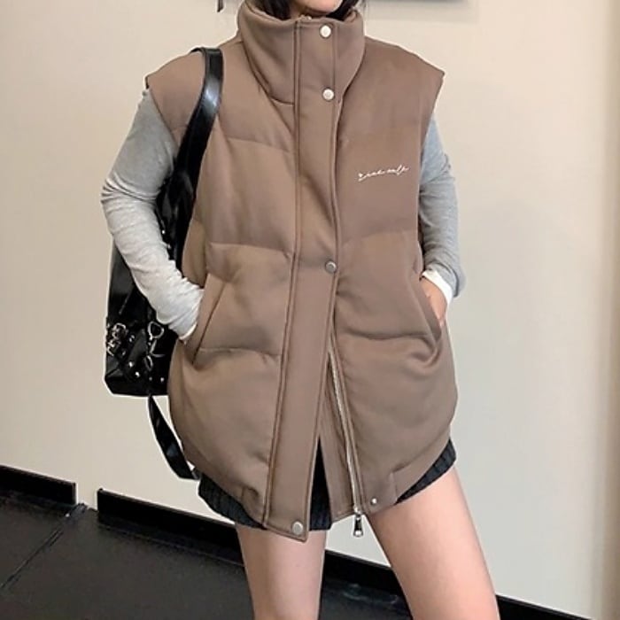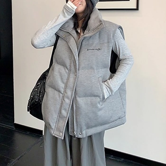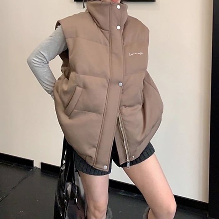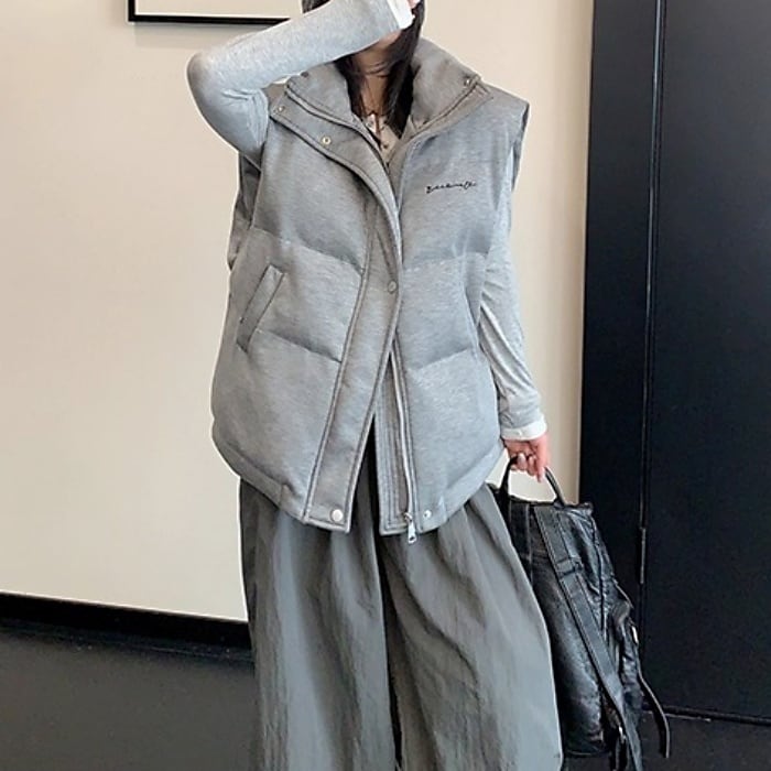 スタンドカラーオーバーサイズパフベスト[M‐XXL]