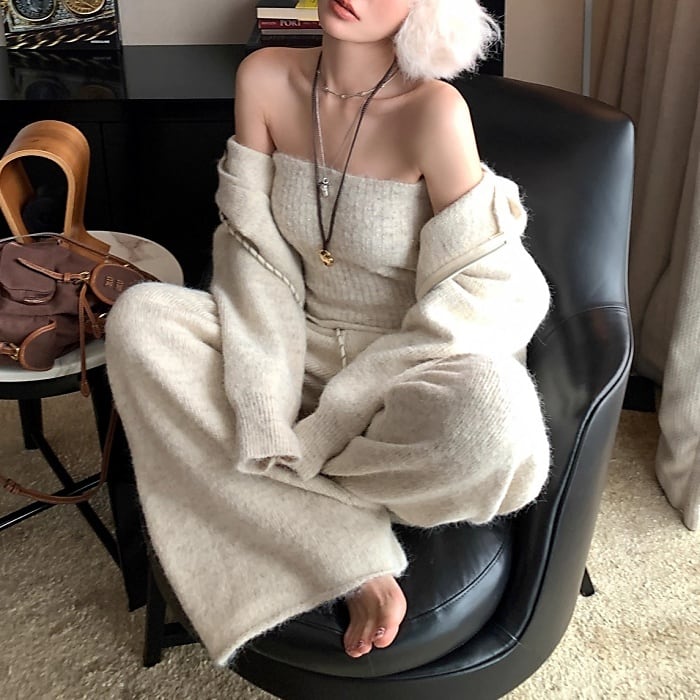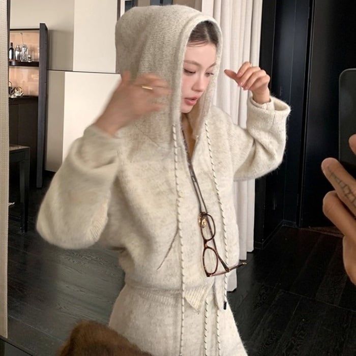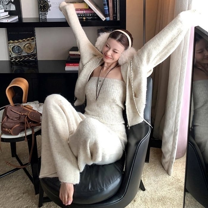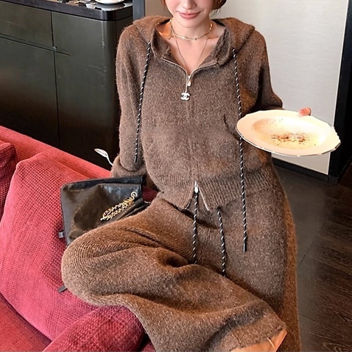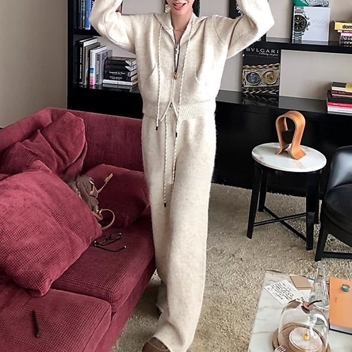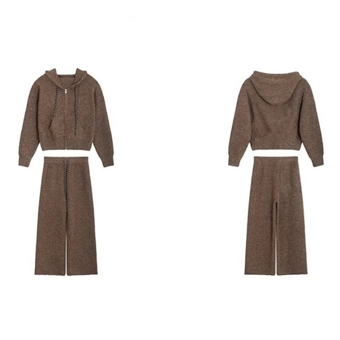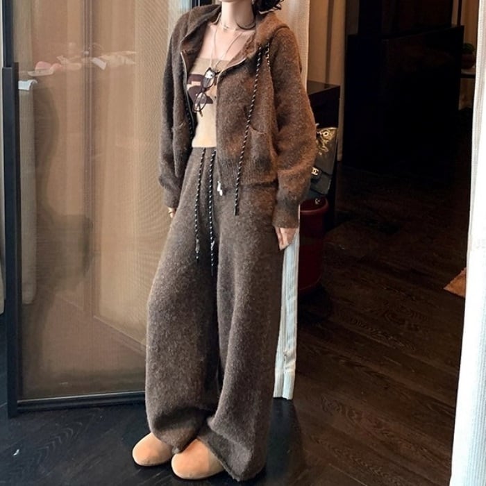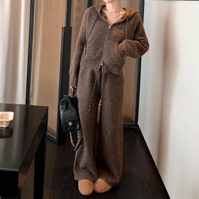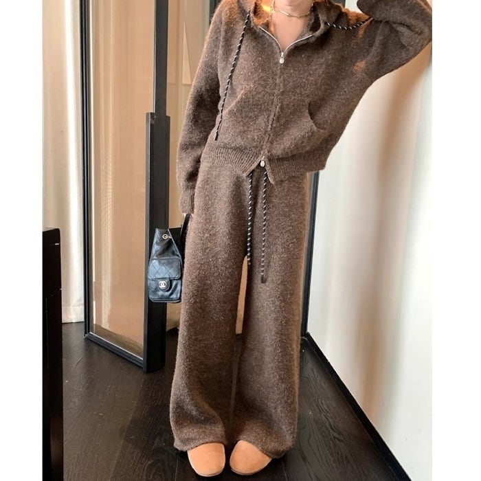 ニットパーカーワイドパンツセットアップ[2COLOR]