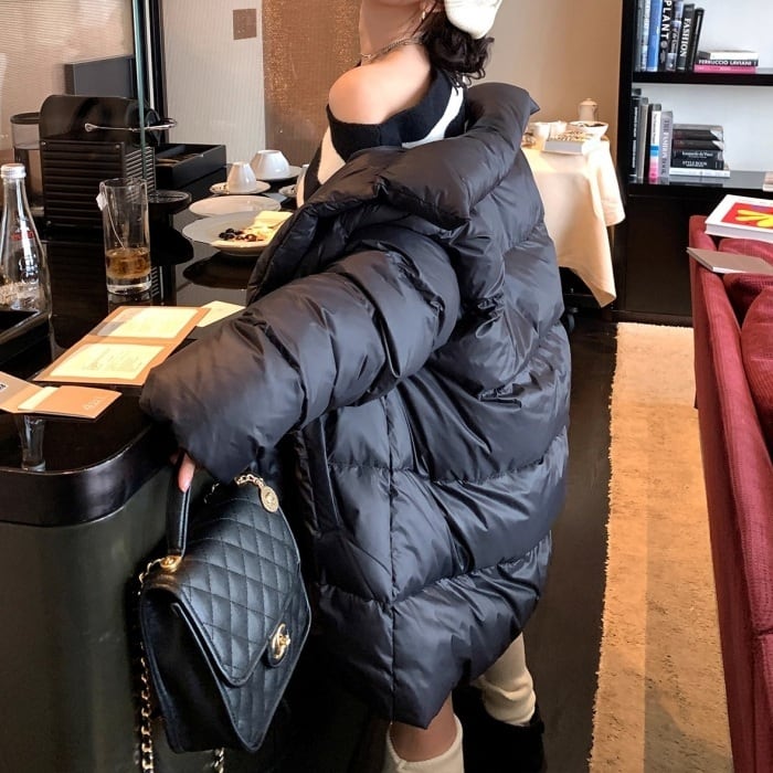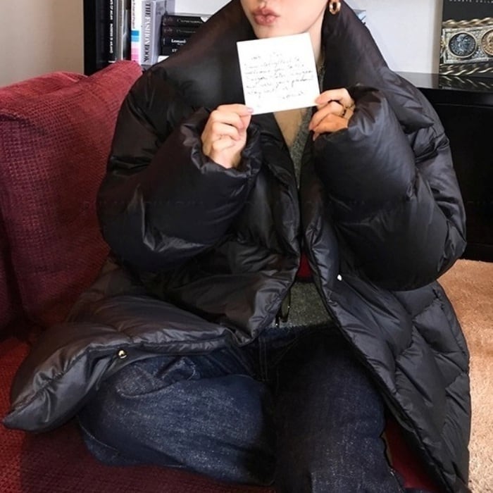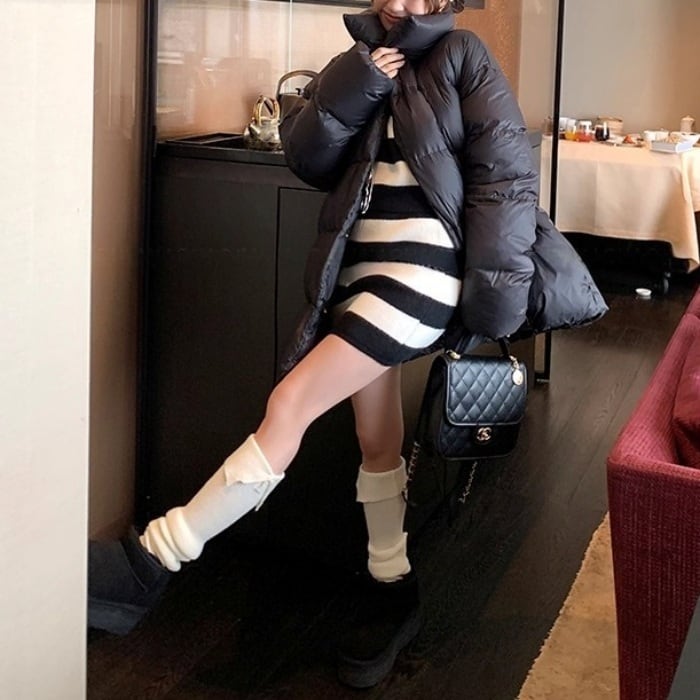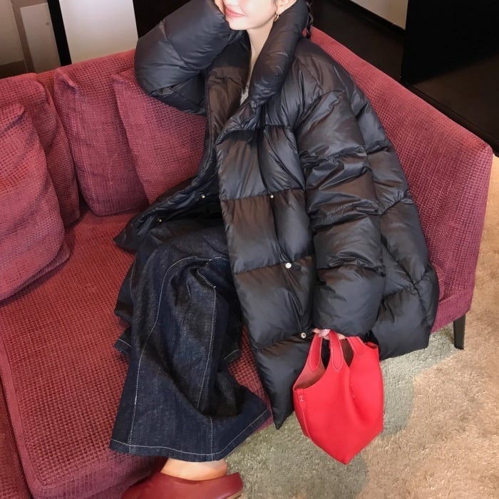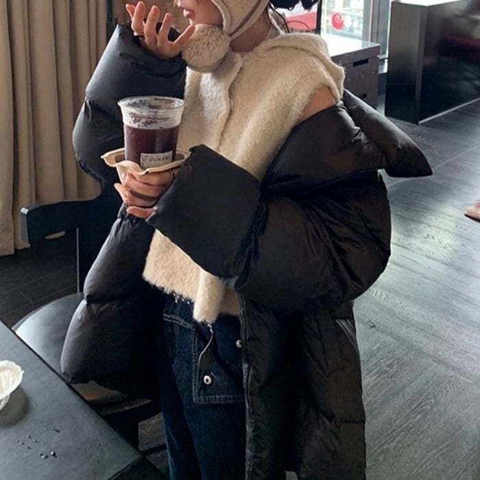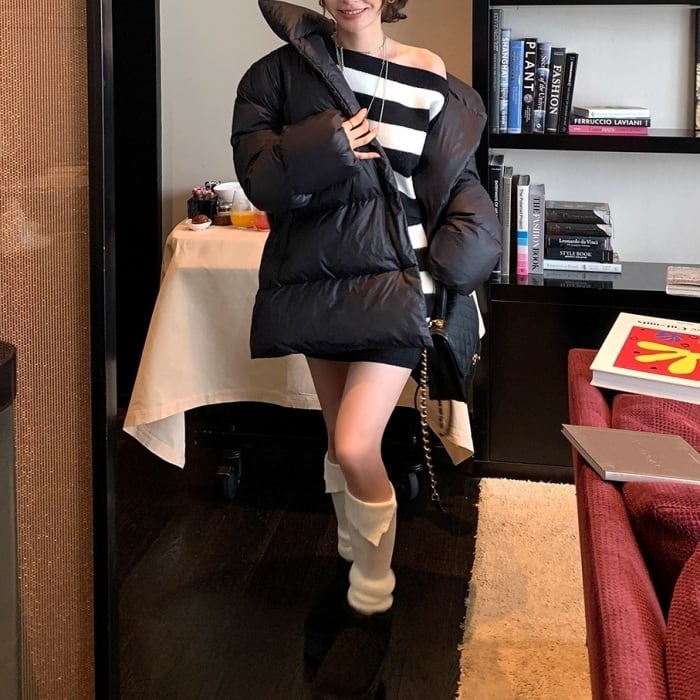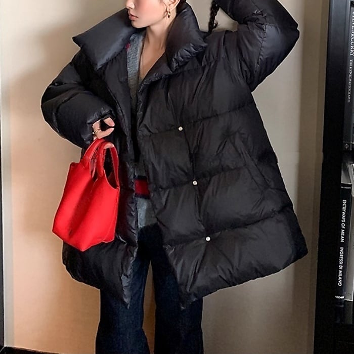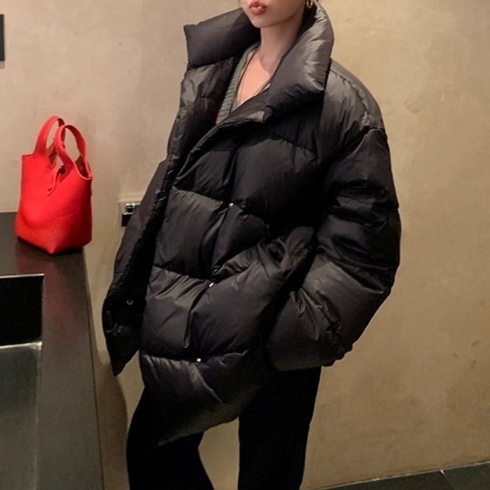 スタンドカラーミドルパフコート[S-L]