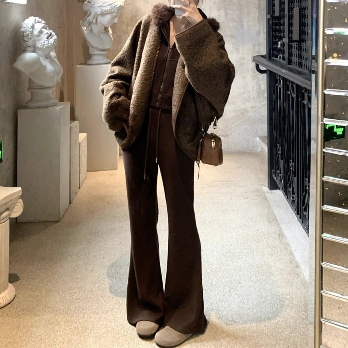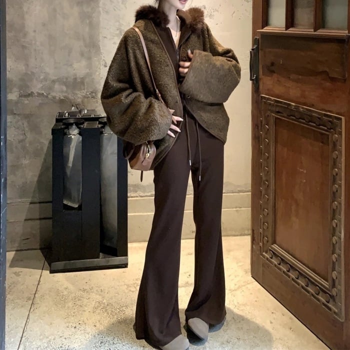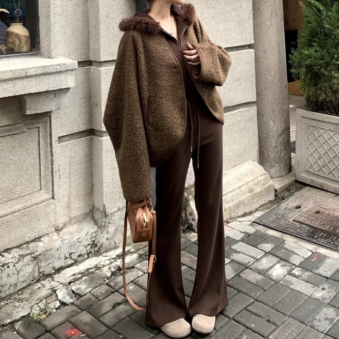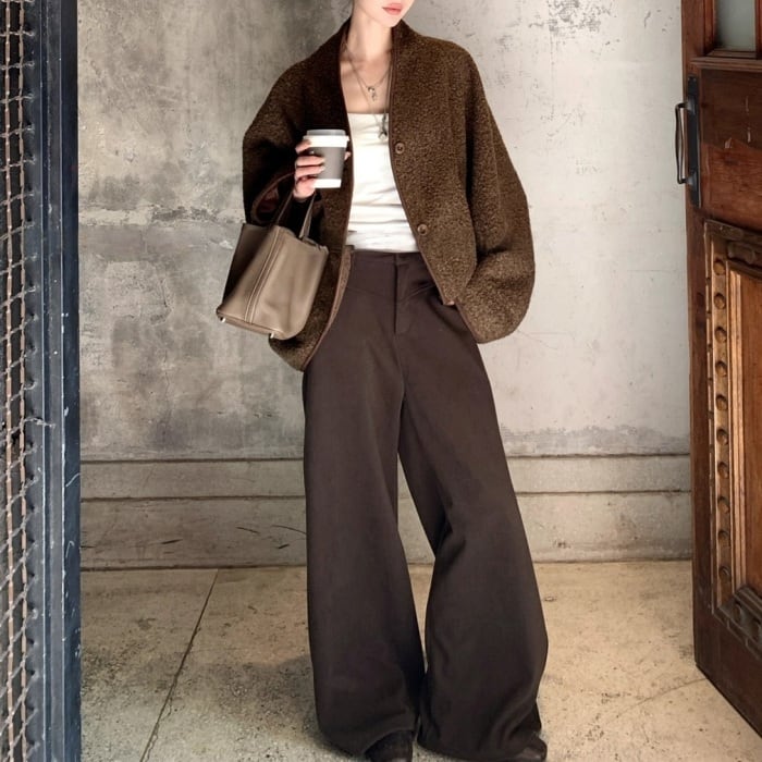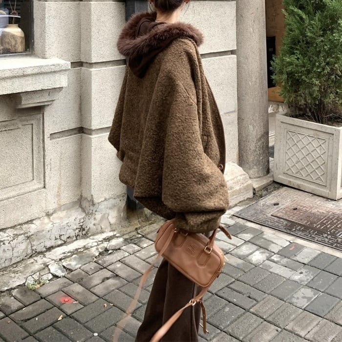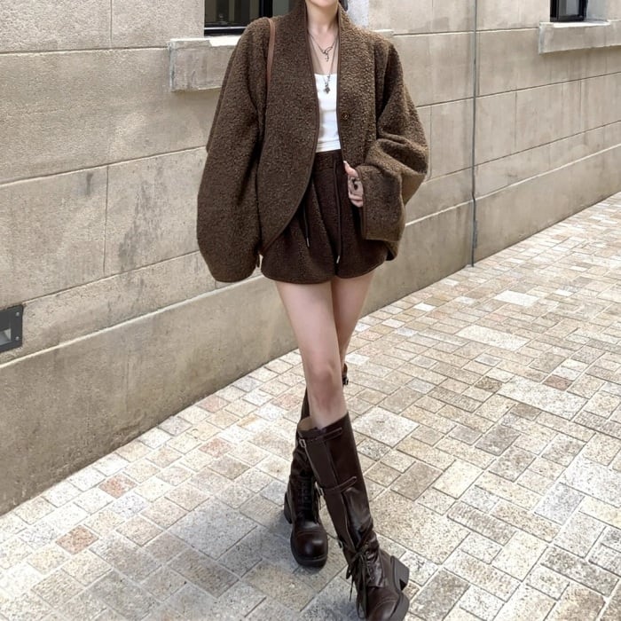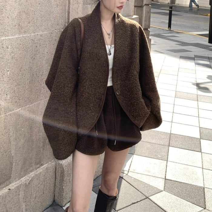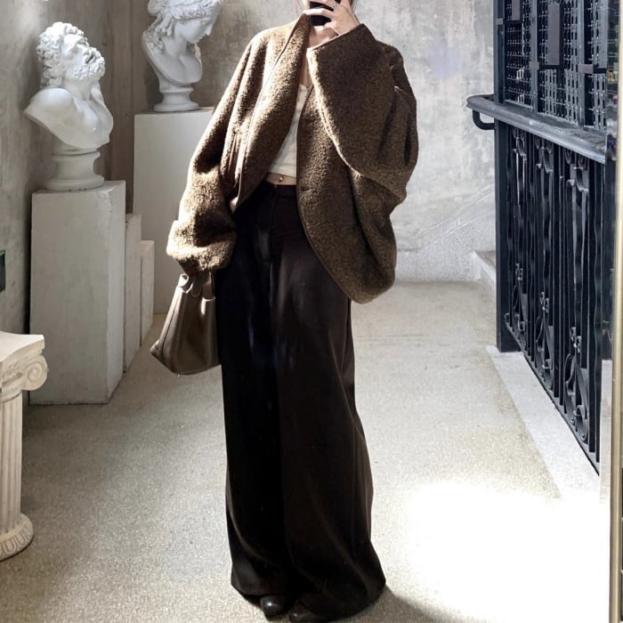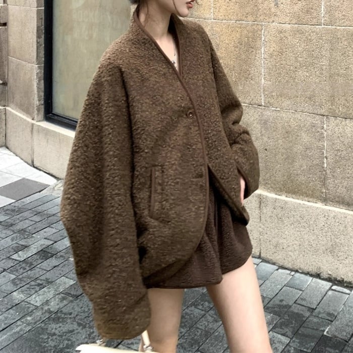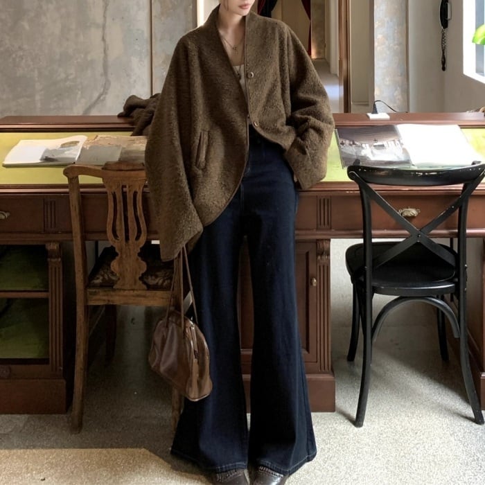 コクーンノーカラーボアジャケット[S-L]