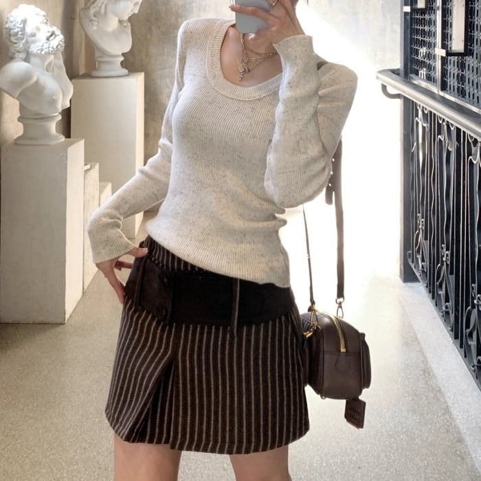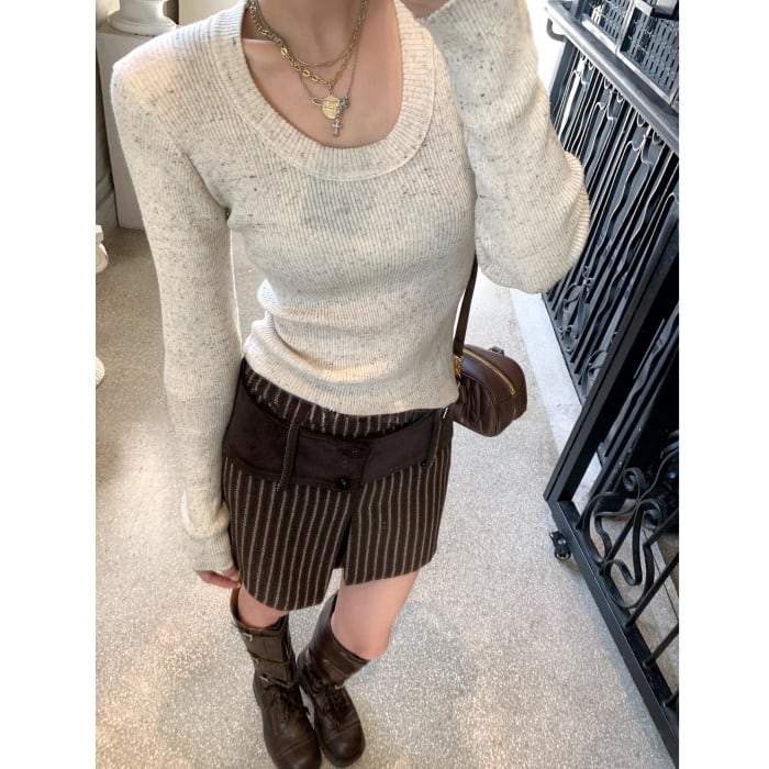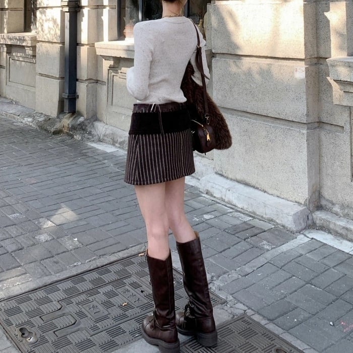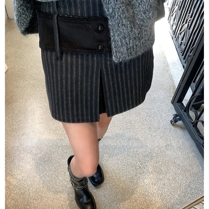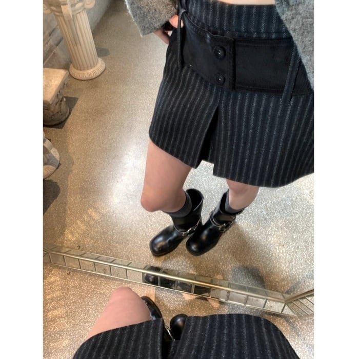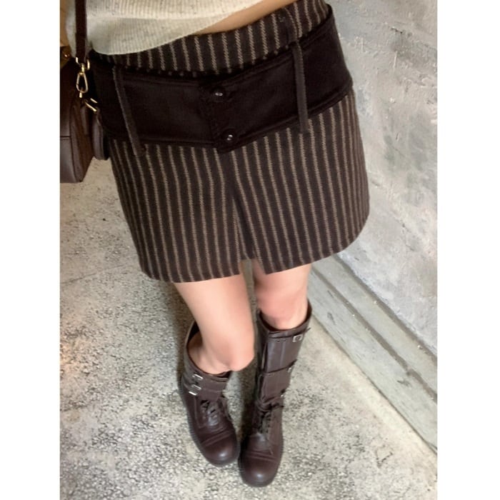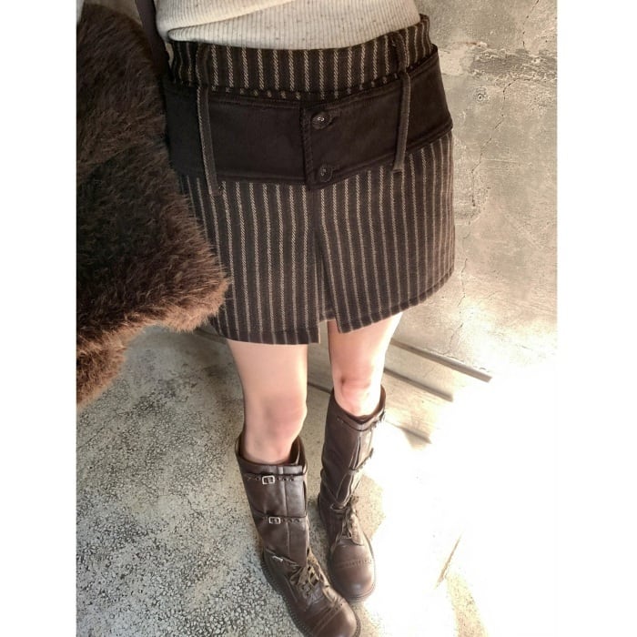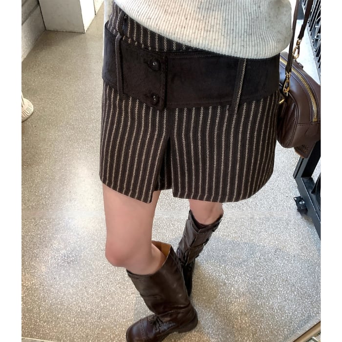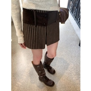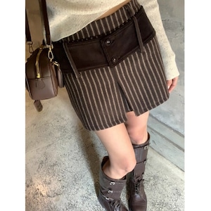 ストライプコーデユロイミニスカートパンツ[S-L]