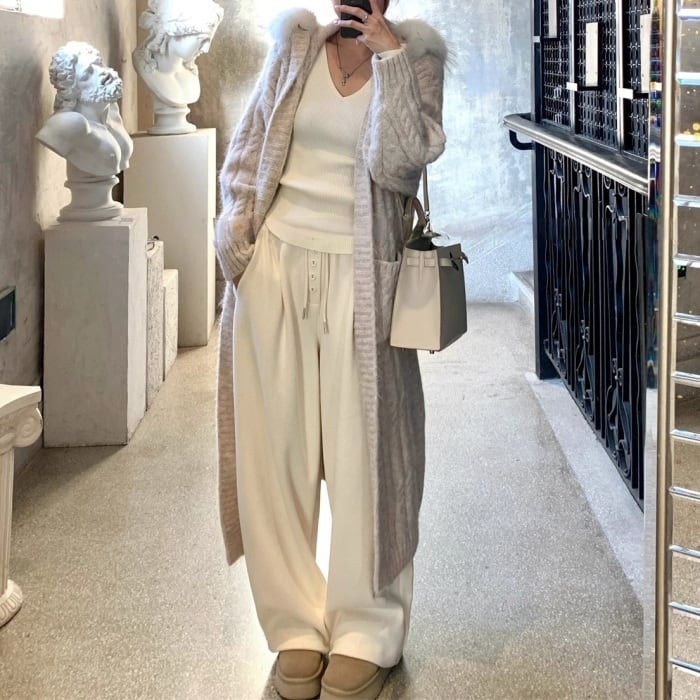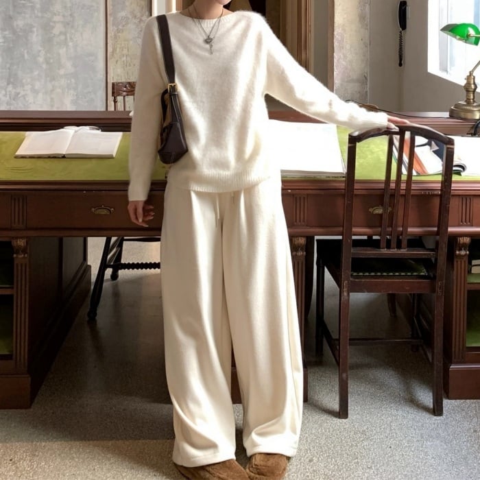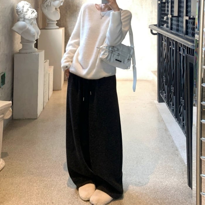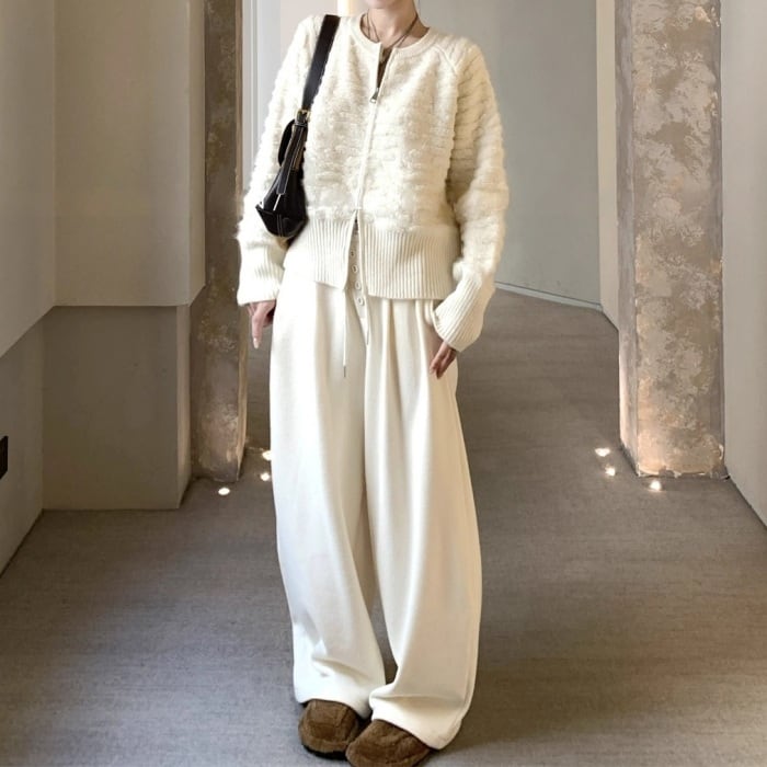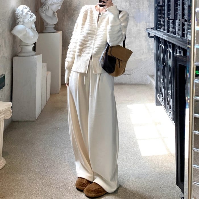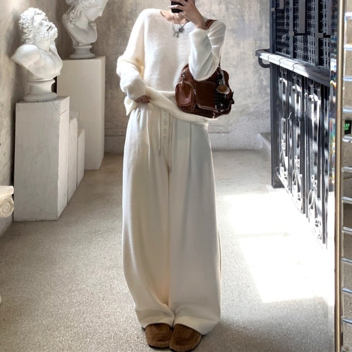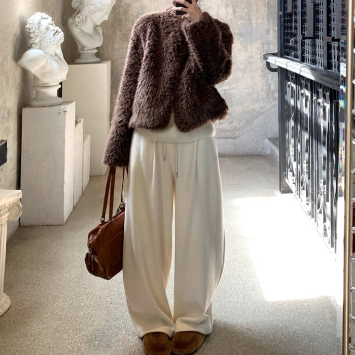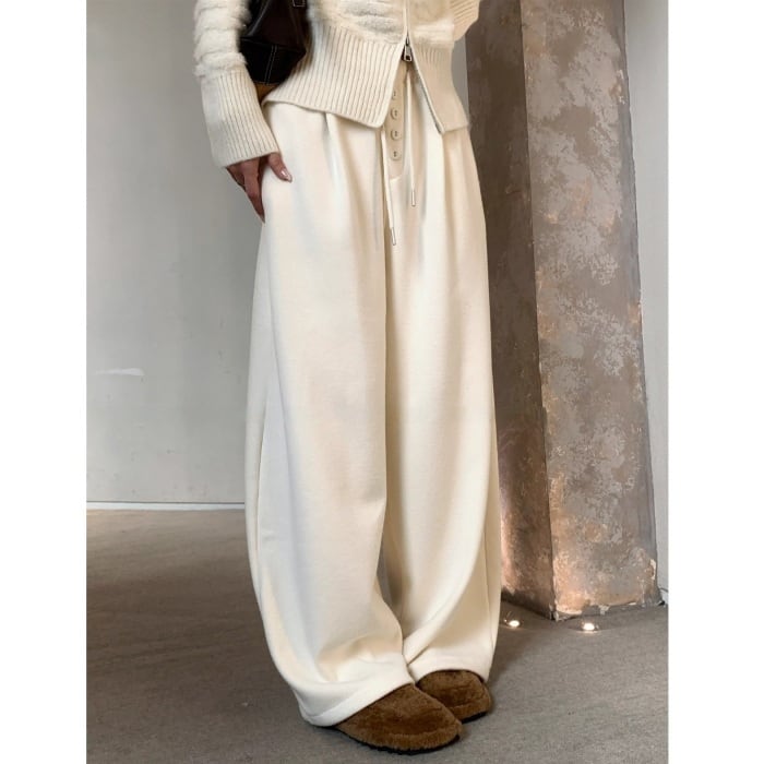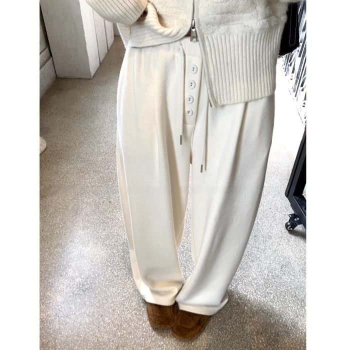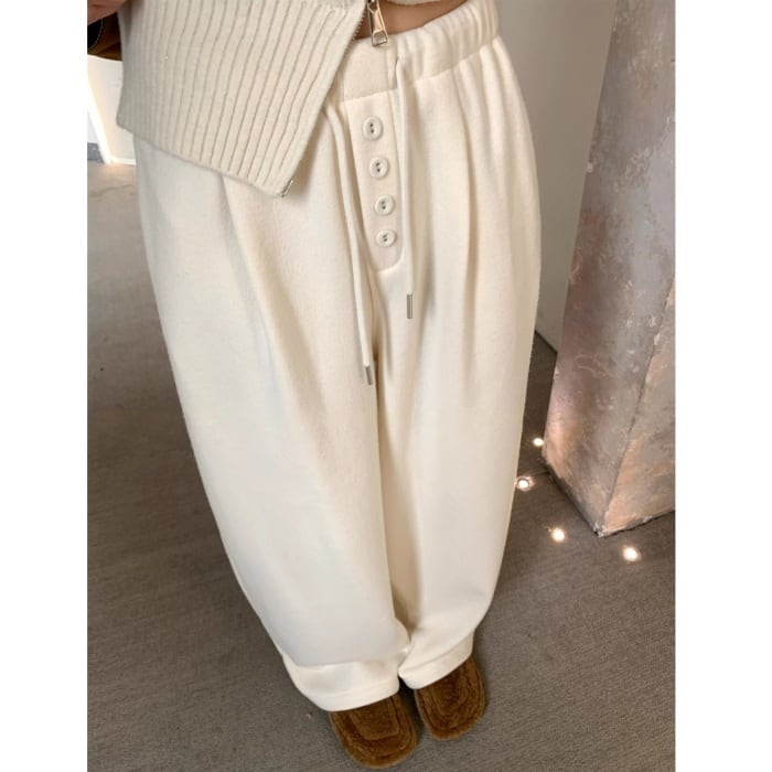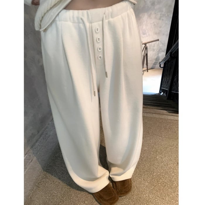 フロントボタンフリーススウェットカーブパンツ[S-L]