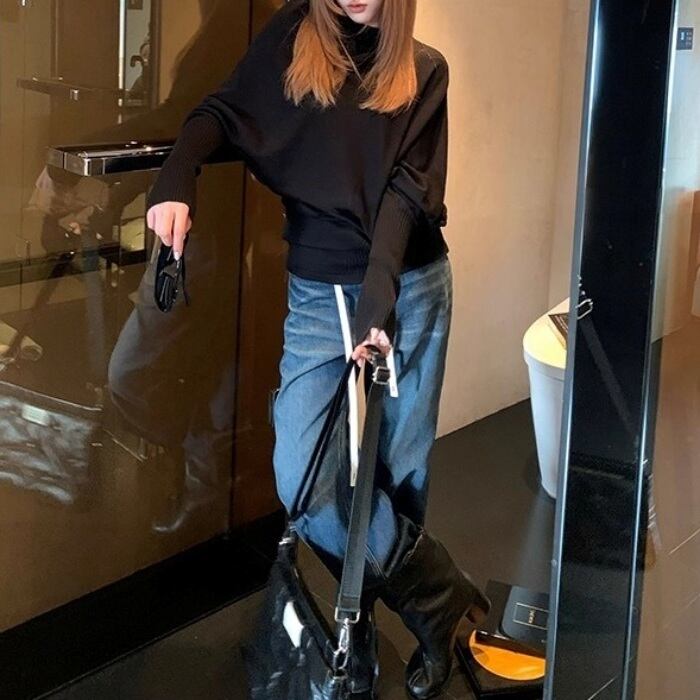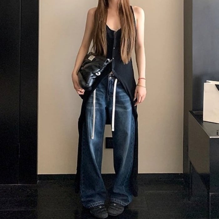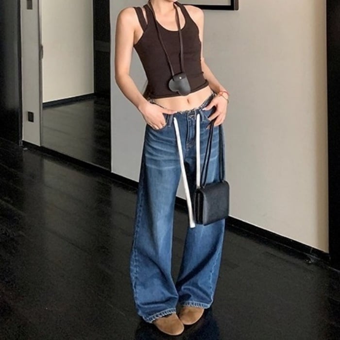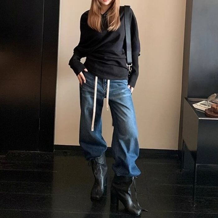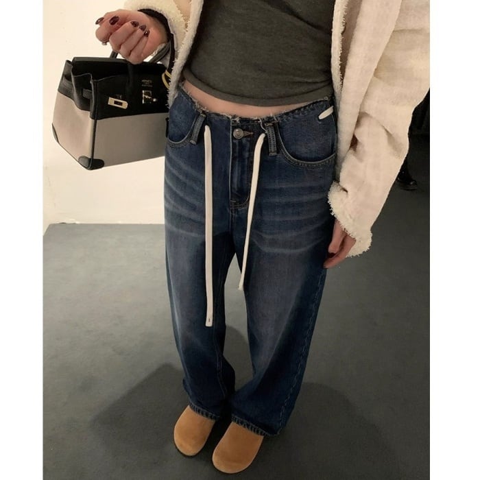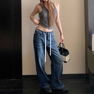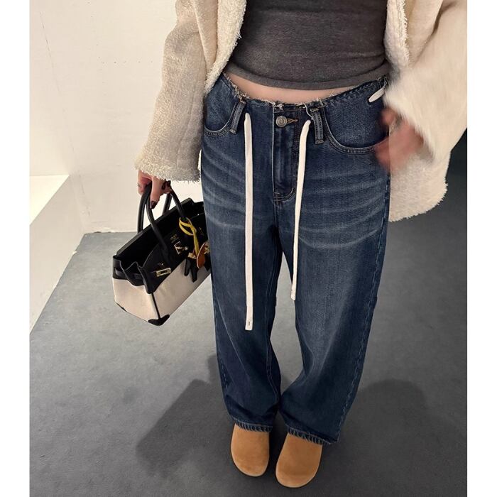 ドローストリングローライズデニムパンツ[XS-XL]