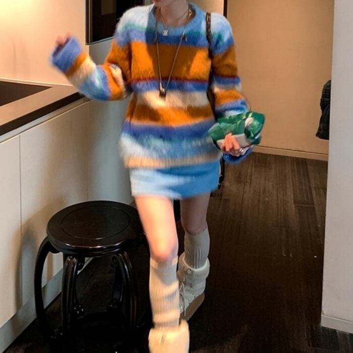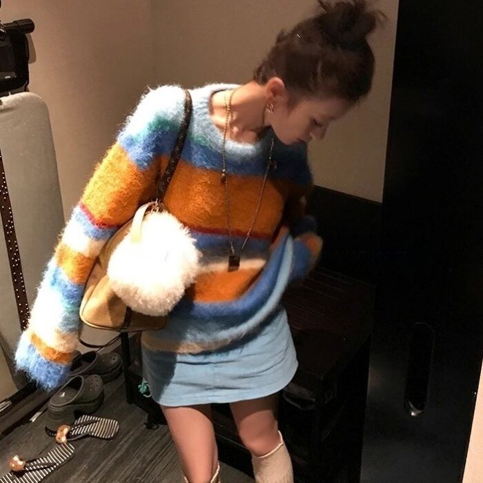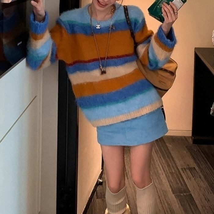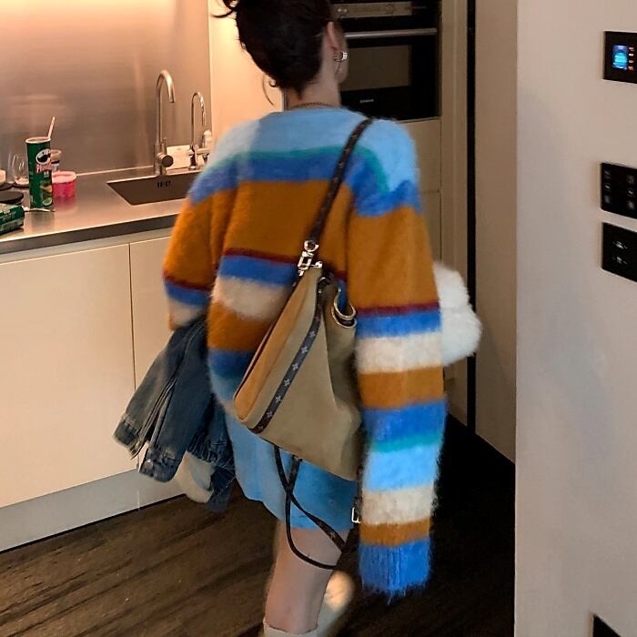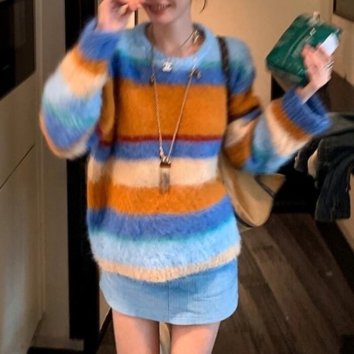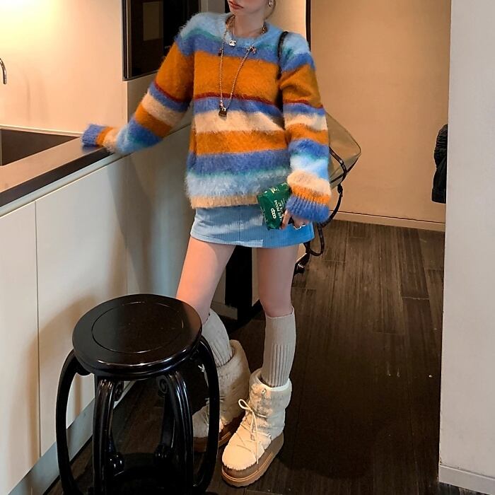カラフルストライプシャギーニット