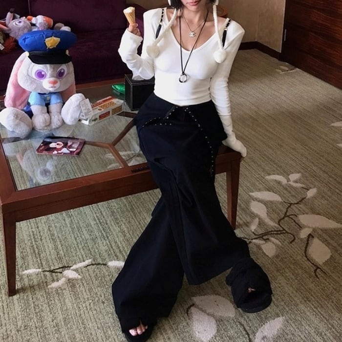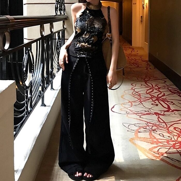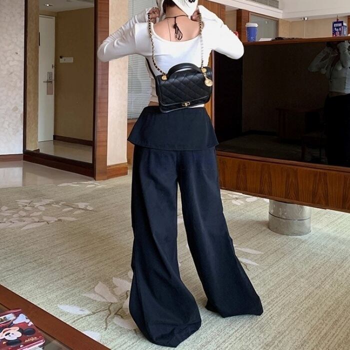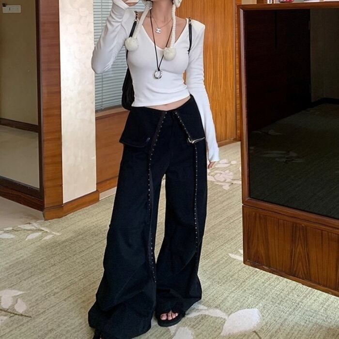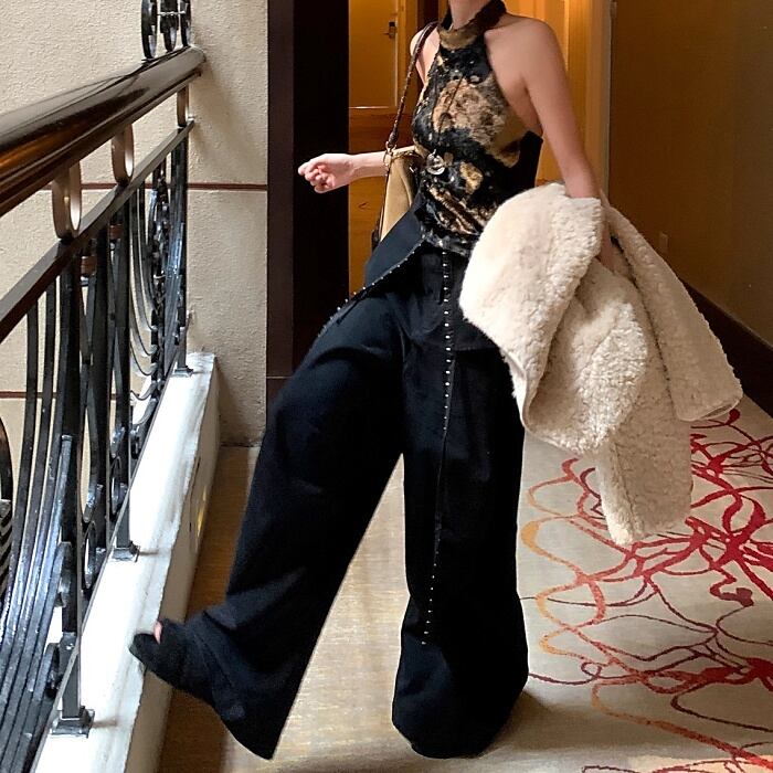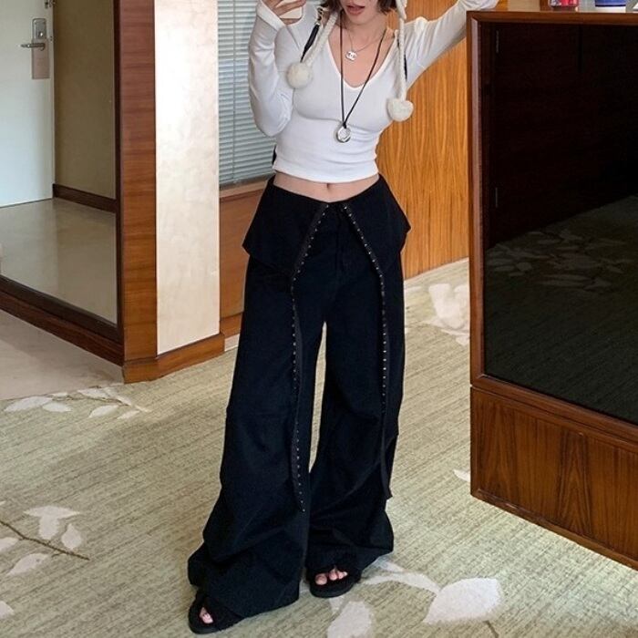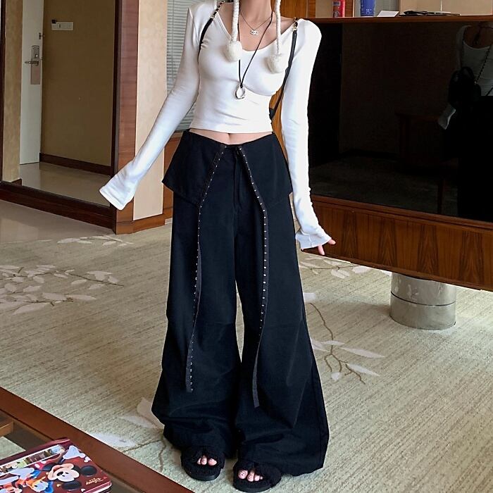 リベットリボンレイヤードラップスカートパンツ[S-L]