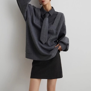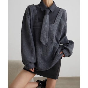 ネクタイシャツドッキングルーズケーブルニット[S-L]