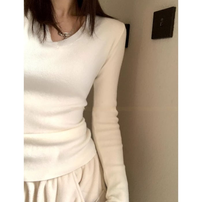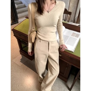 ベーシックVネックスリムフィットニット[S-M]