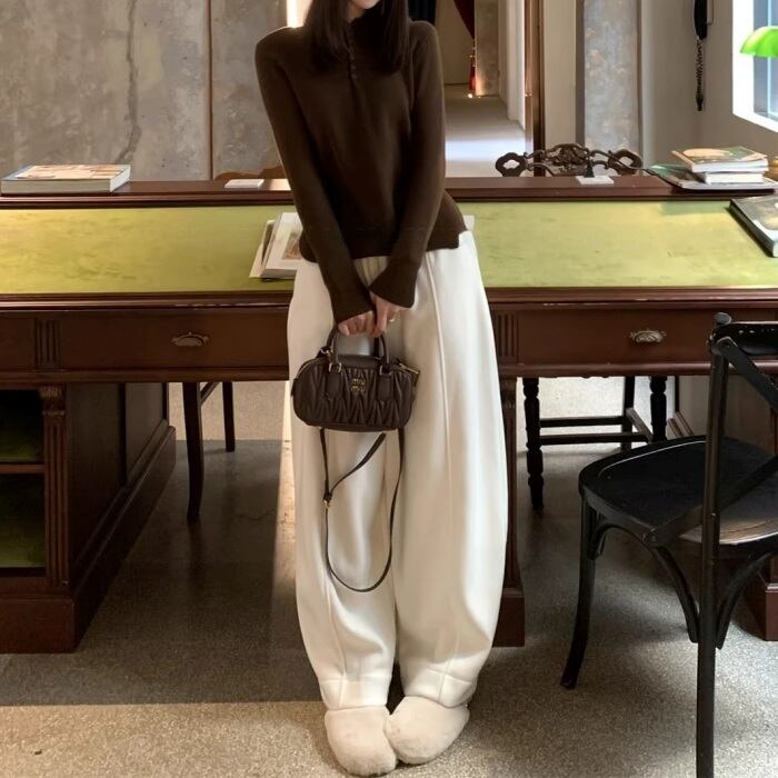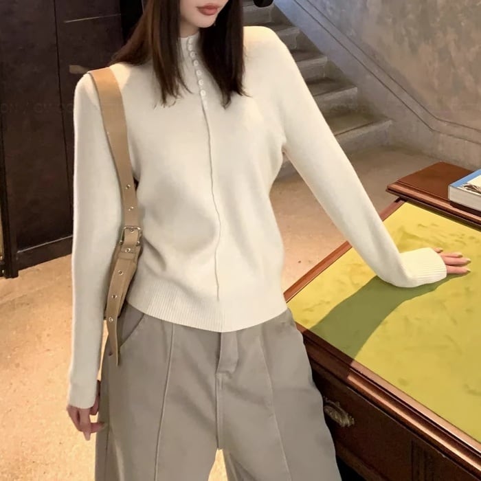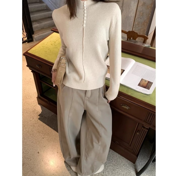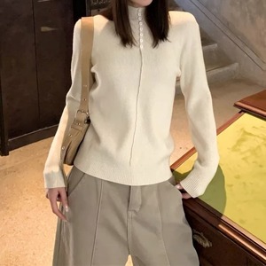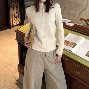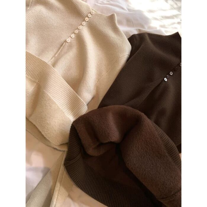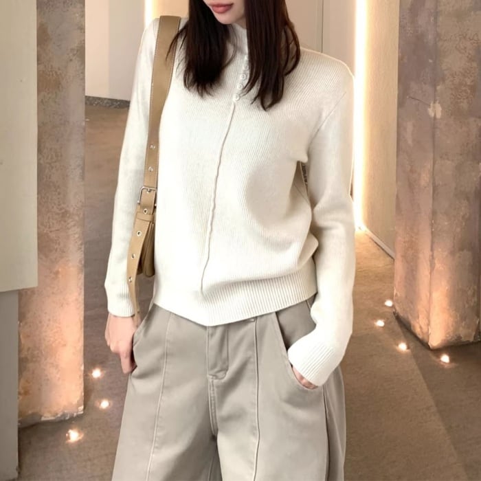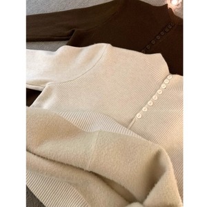 ハーフボタンインナーフリースリブニット[S-M]