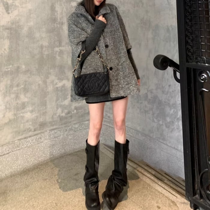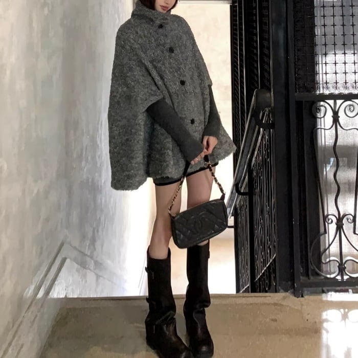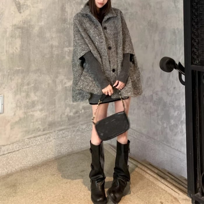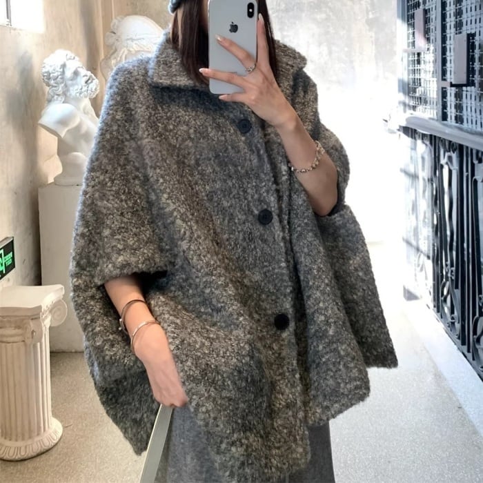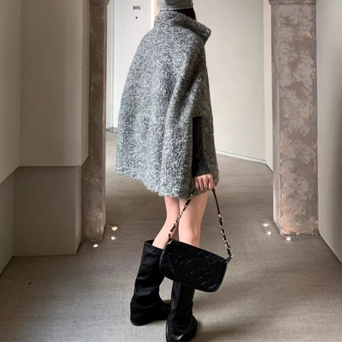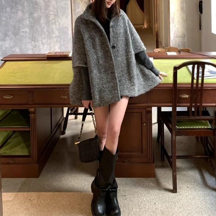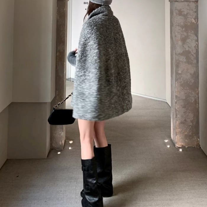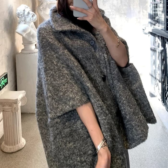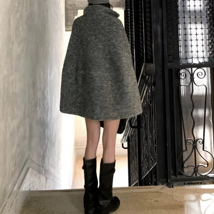 ウールケープミドルコート[S-M]