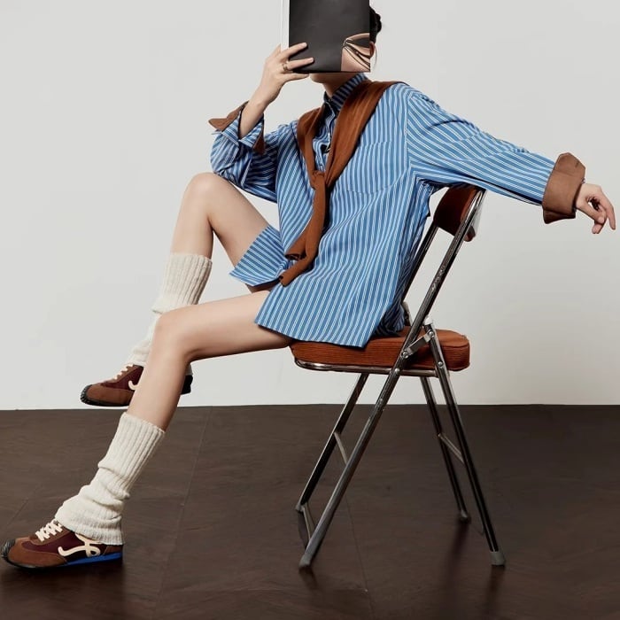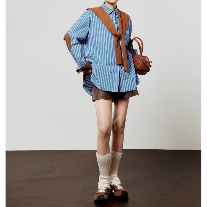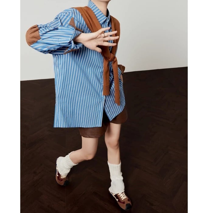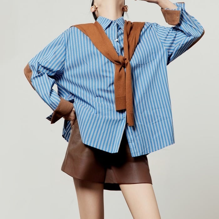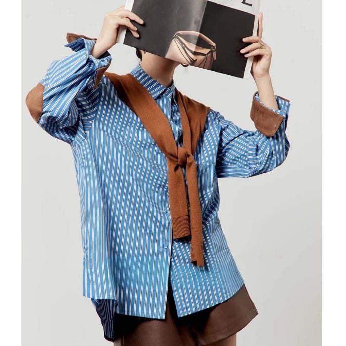 ストールパッチワークストライプシャツ