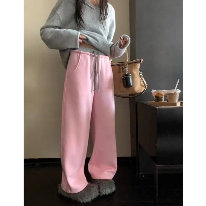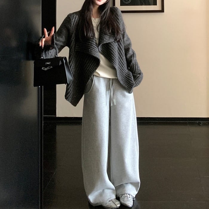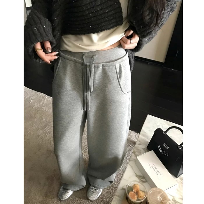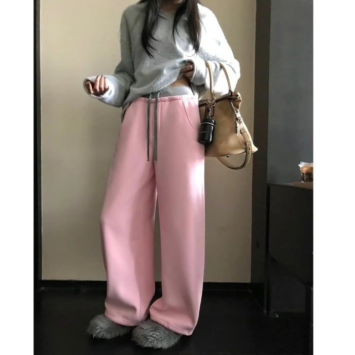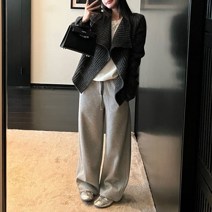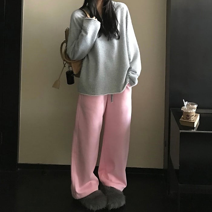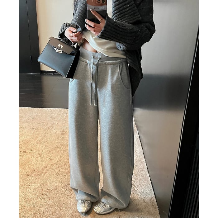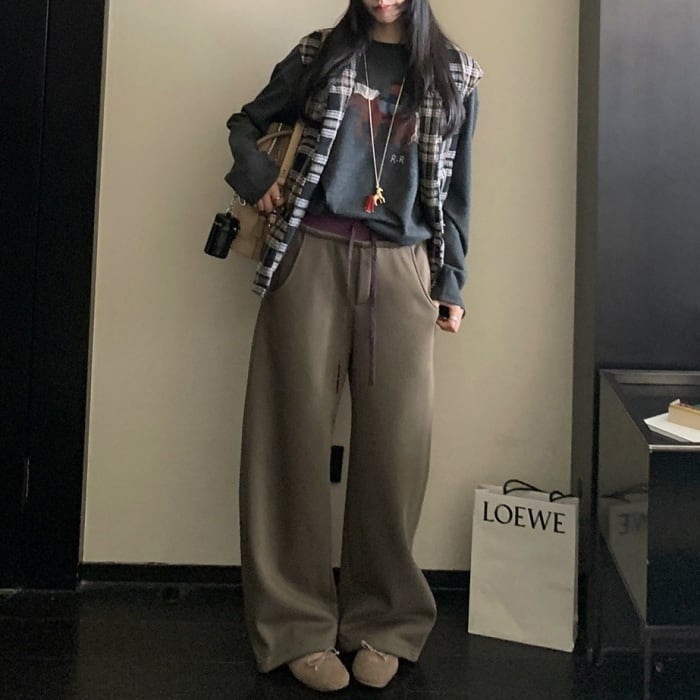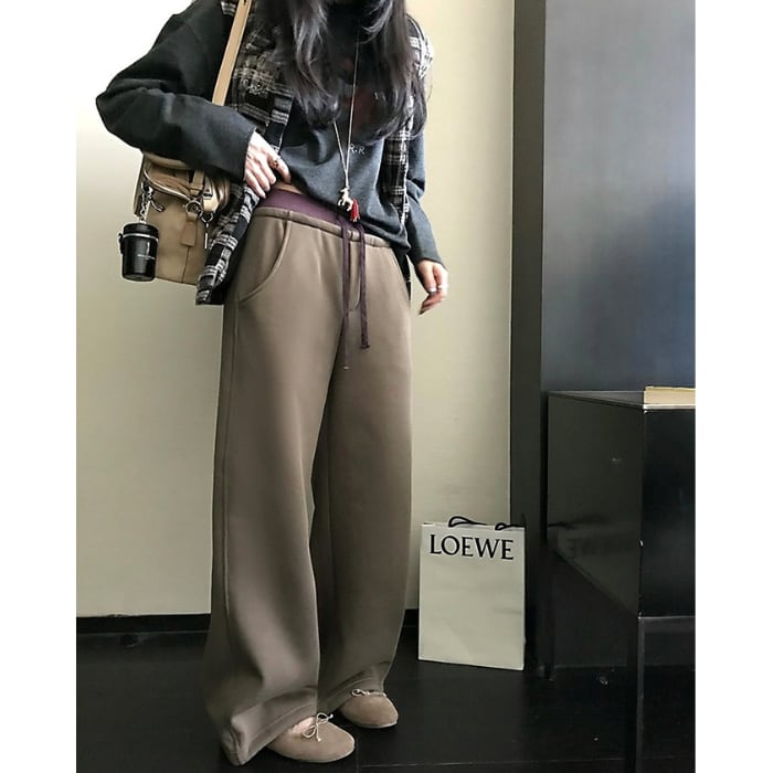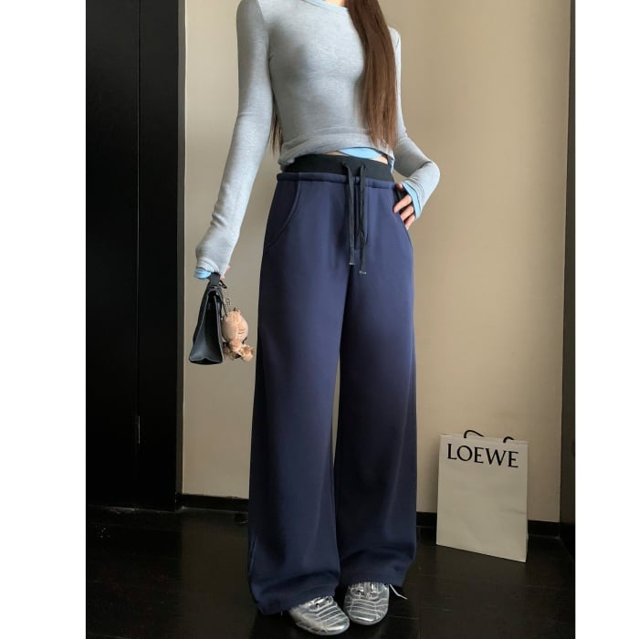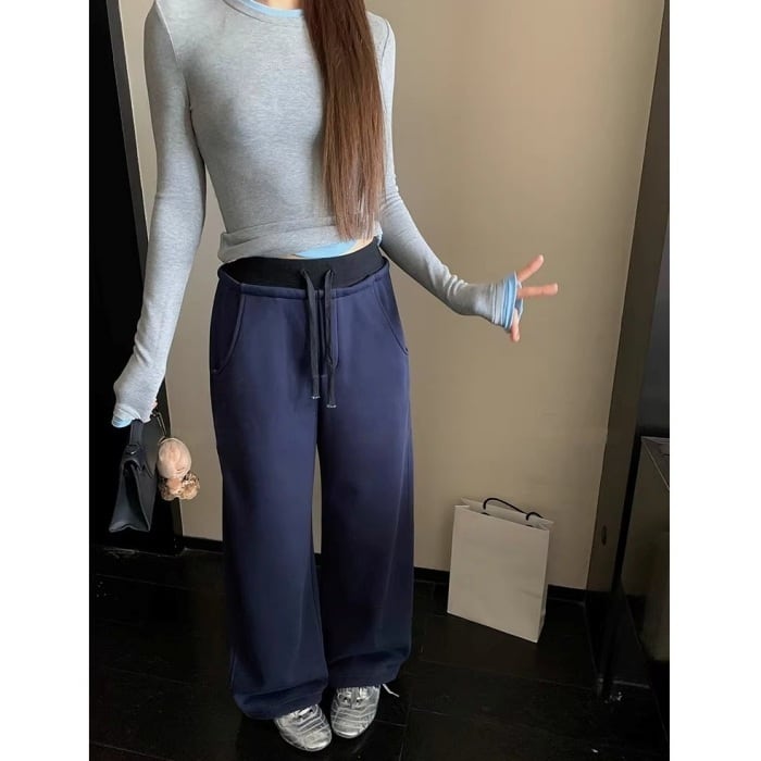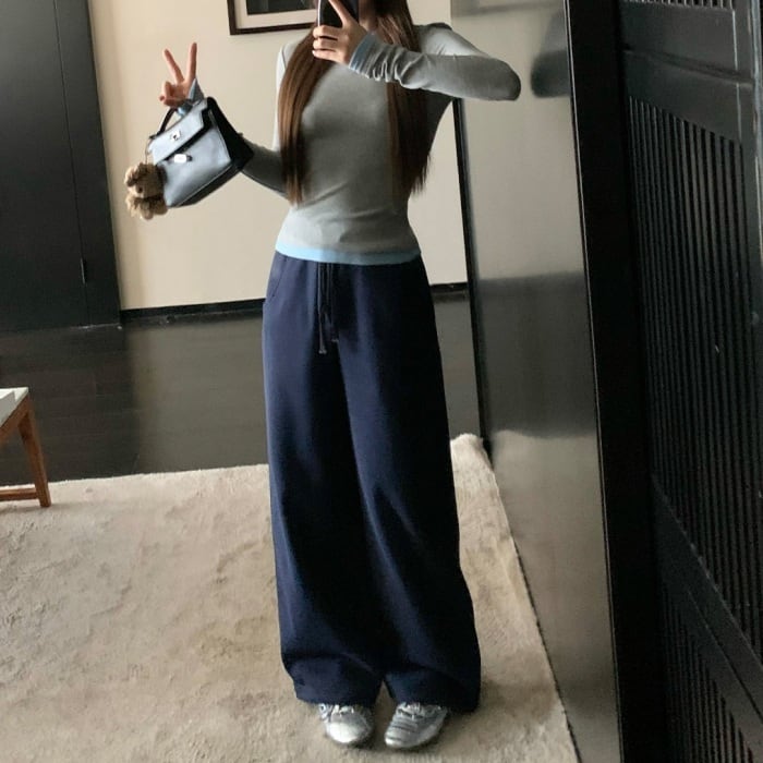 バイカラーダブルウエストスウェットパンツ[XS-XL]