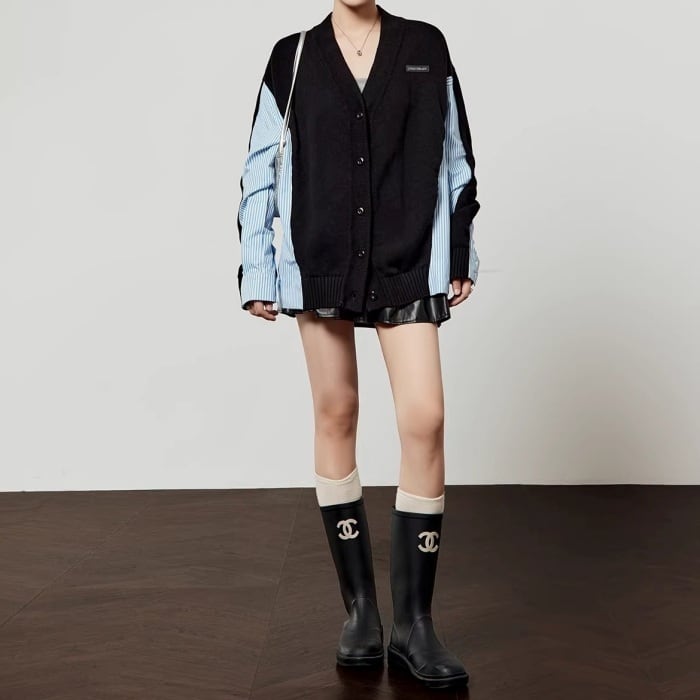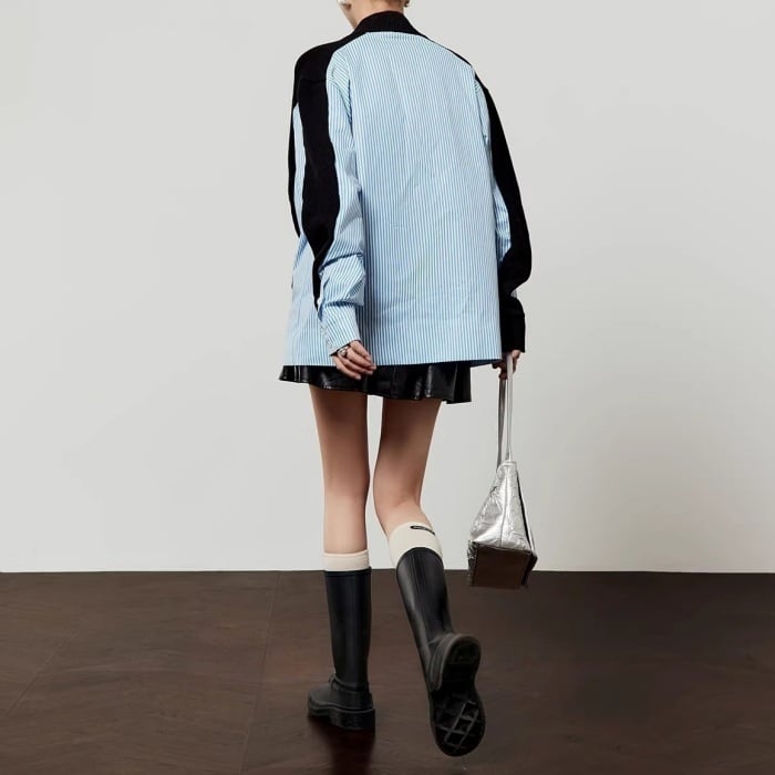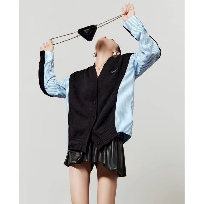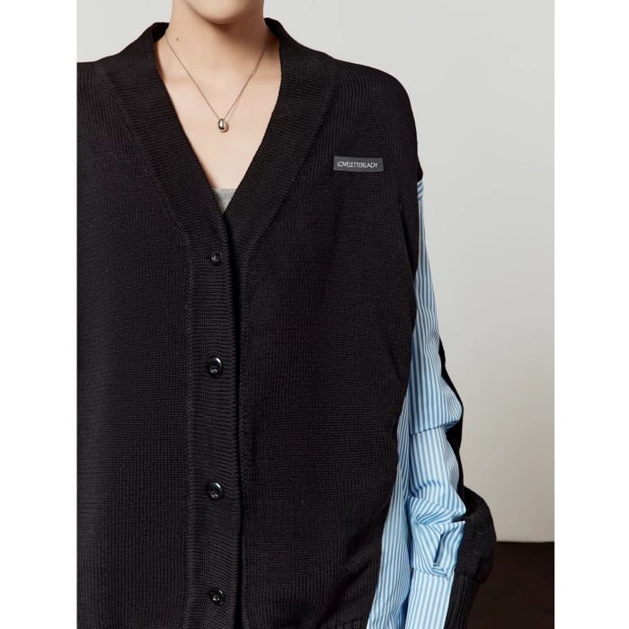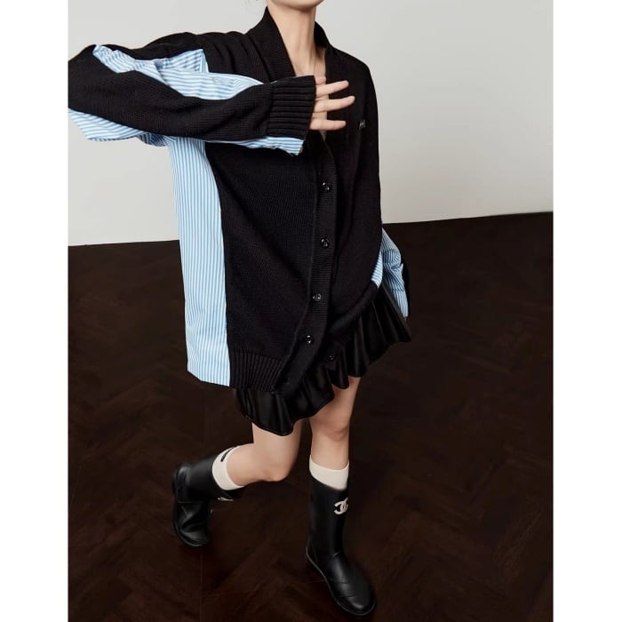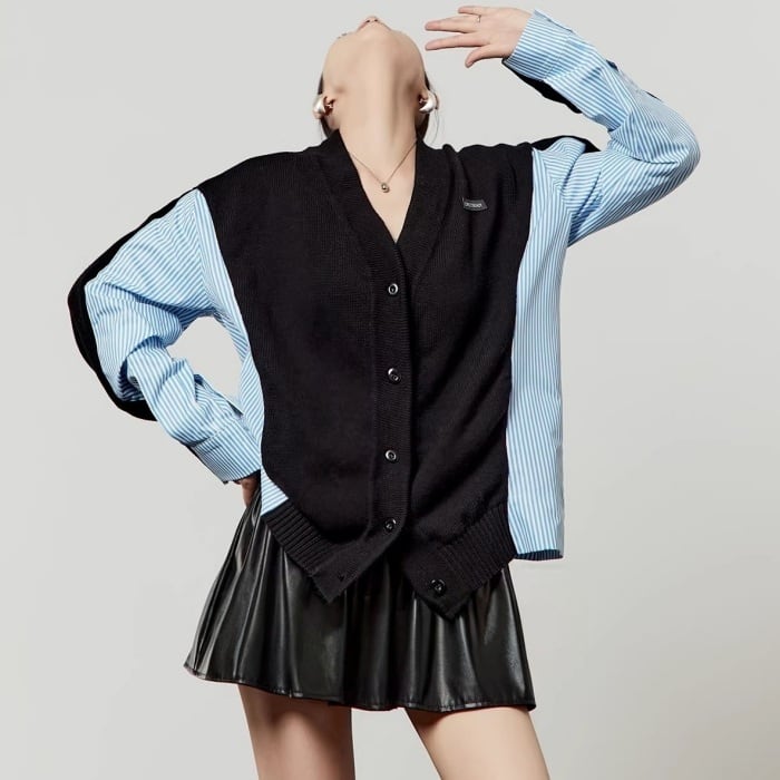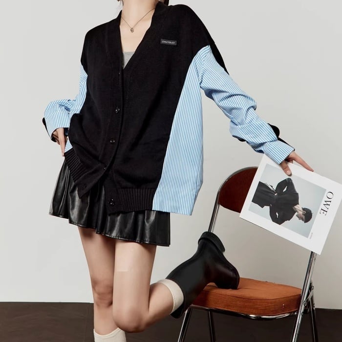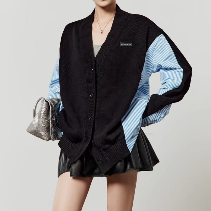 ストライプシャツドッキングニットカーディガン[S-L]