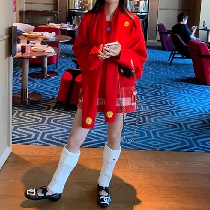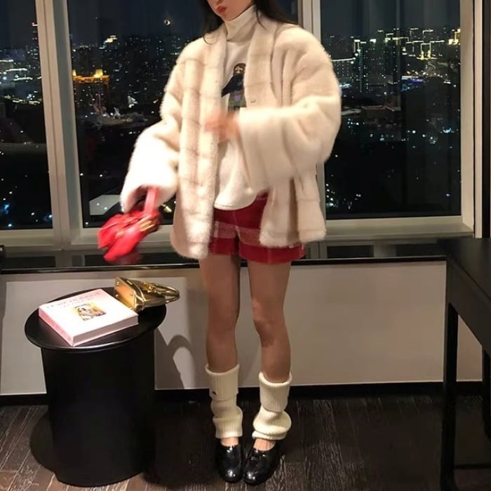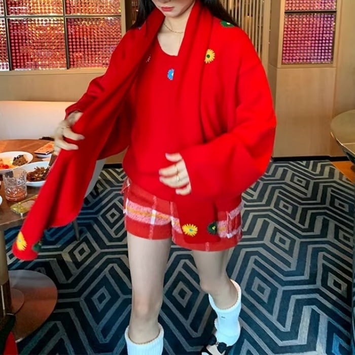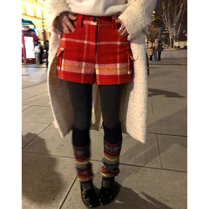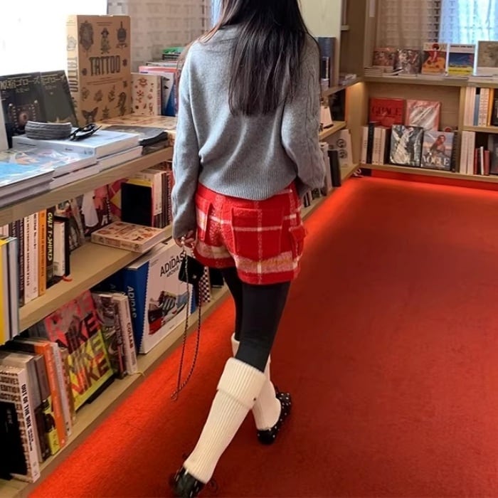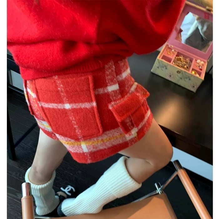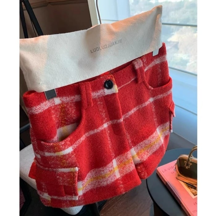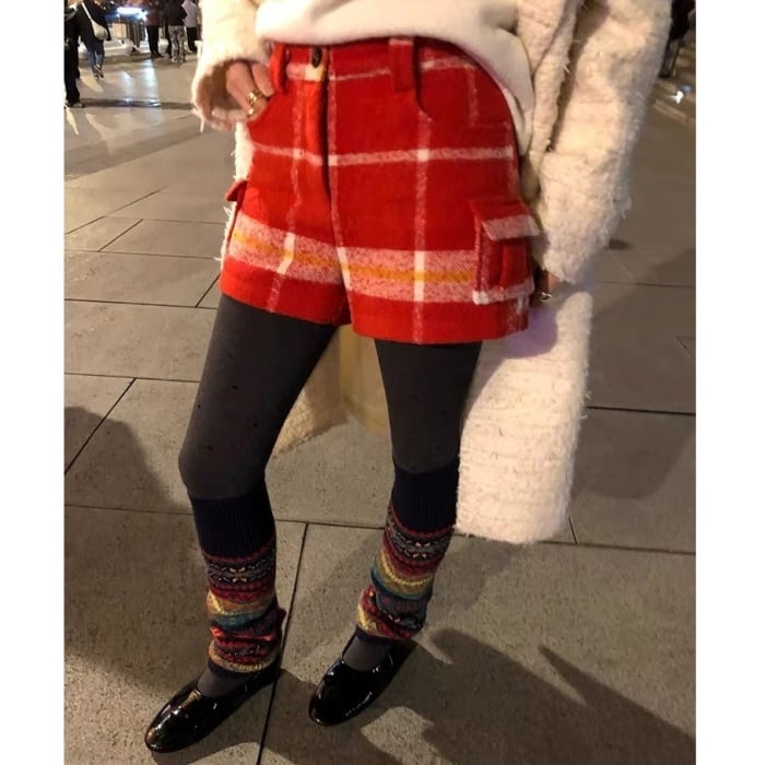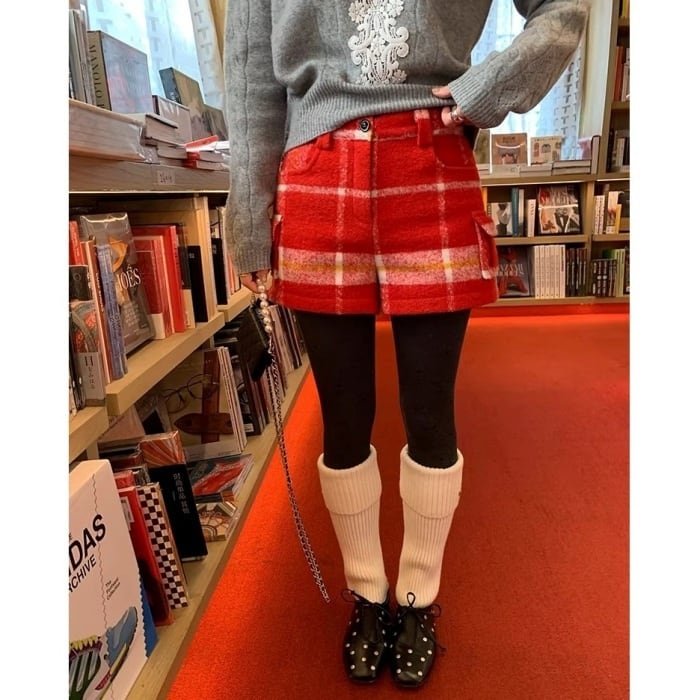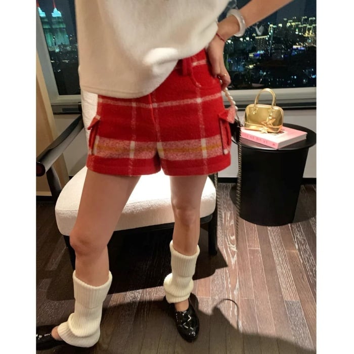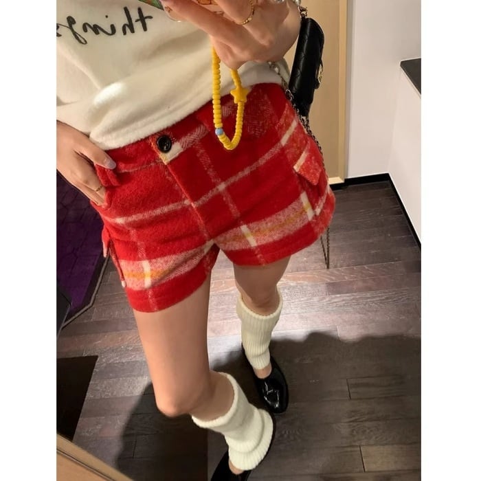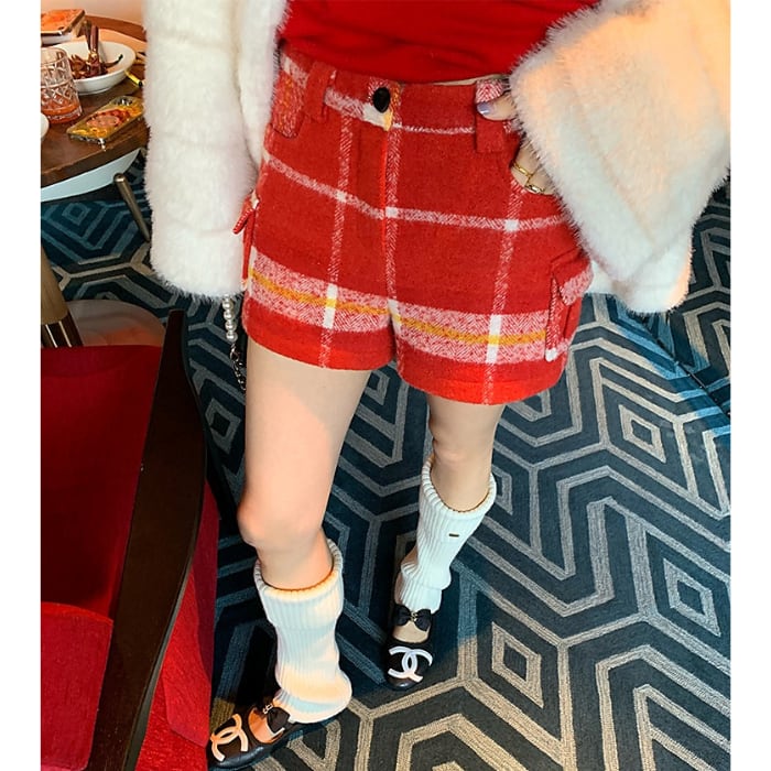レッドチェックウールブレンドショートパンツ[S-L]