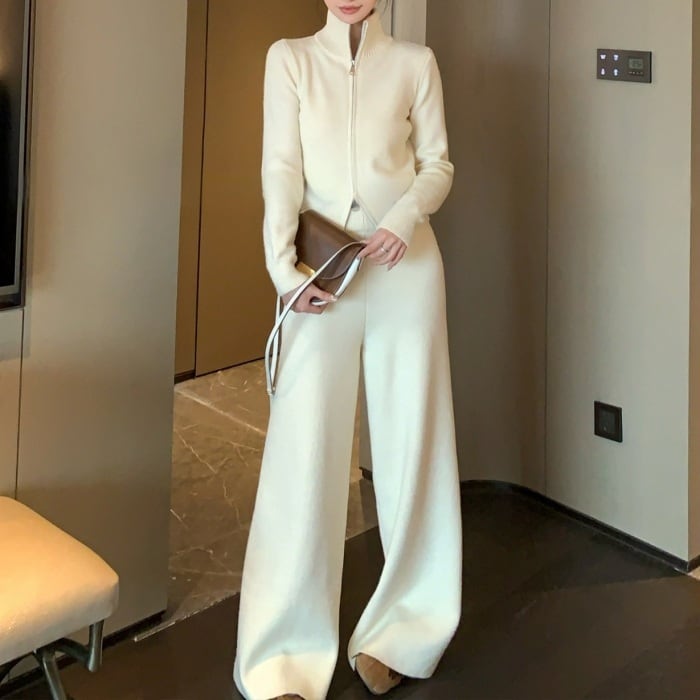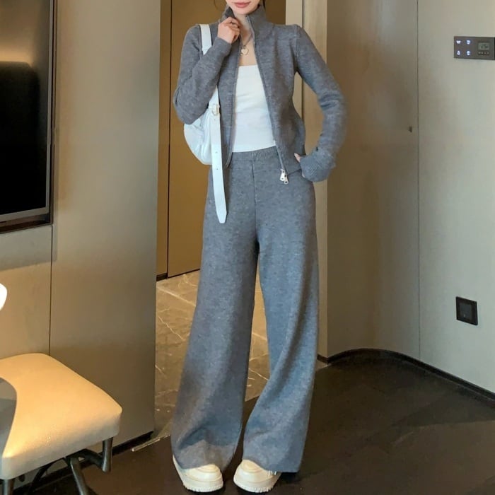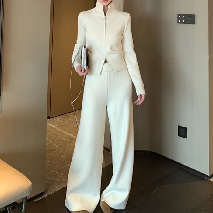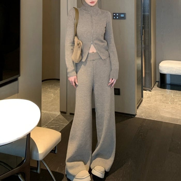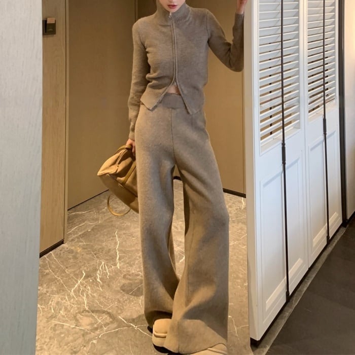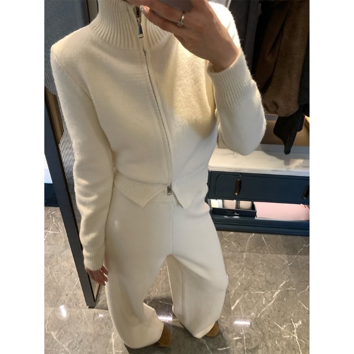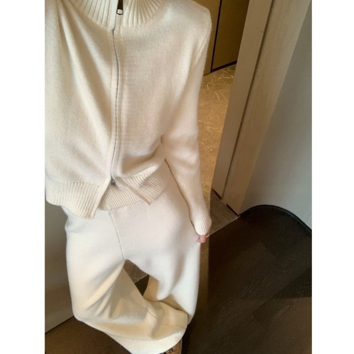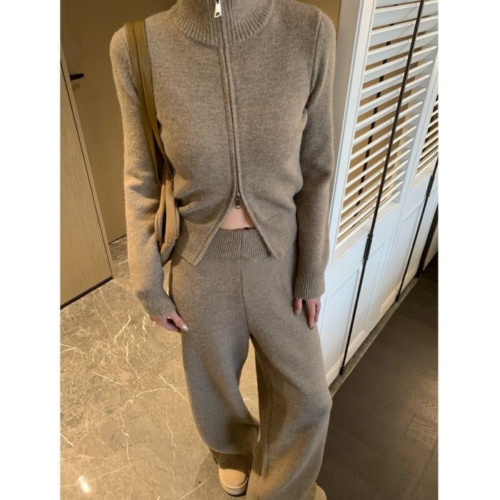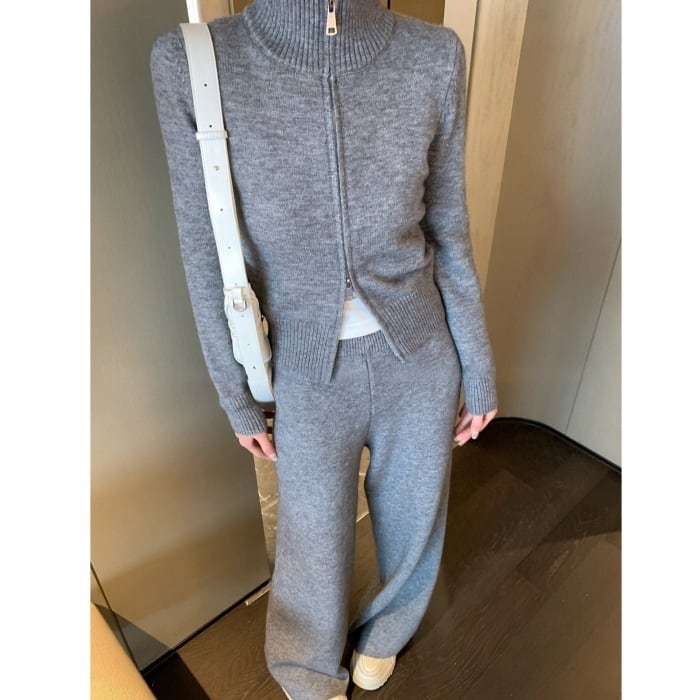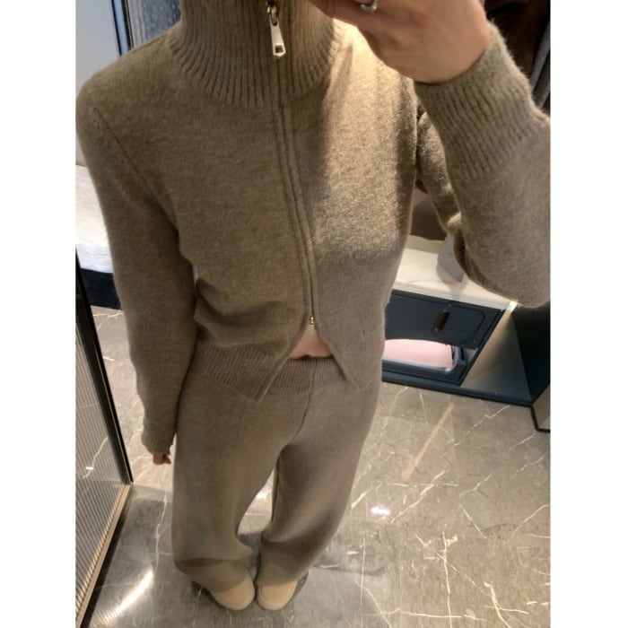 ダブルジッパースタンドカラーニットセットアップ[S-M]