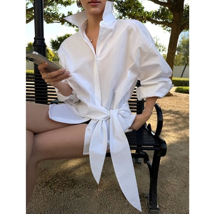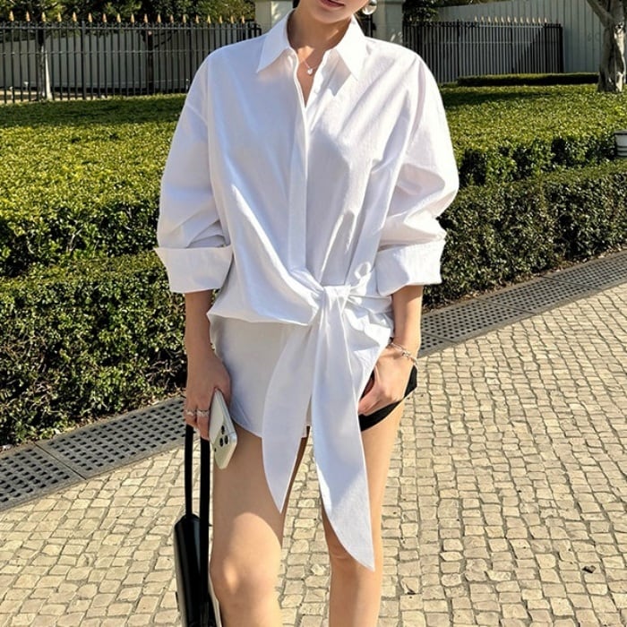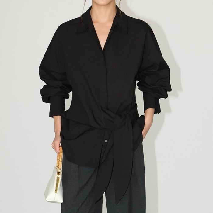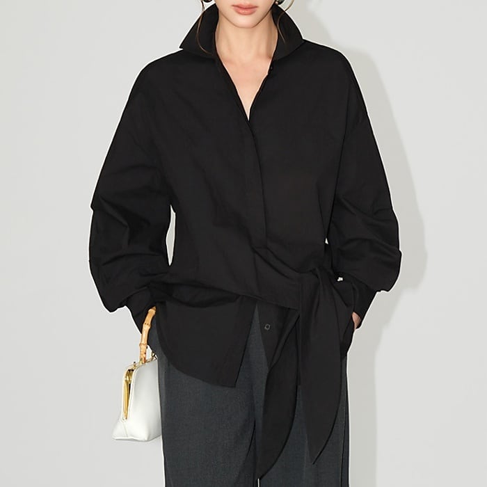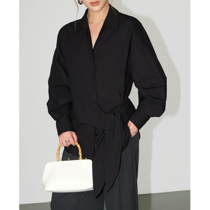 ウエストリボンデザインルーズシャツ[XS-L]