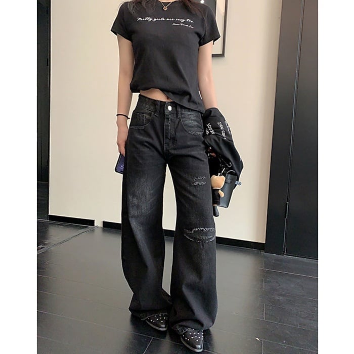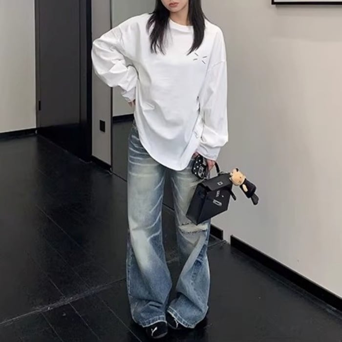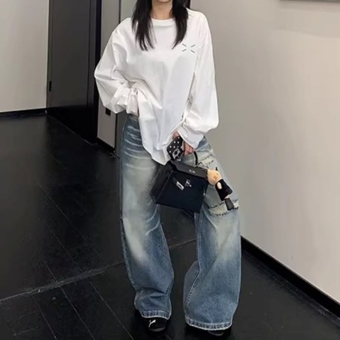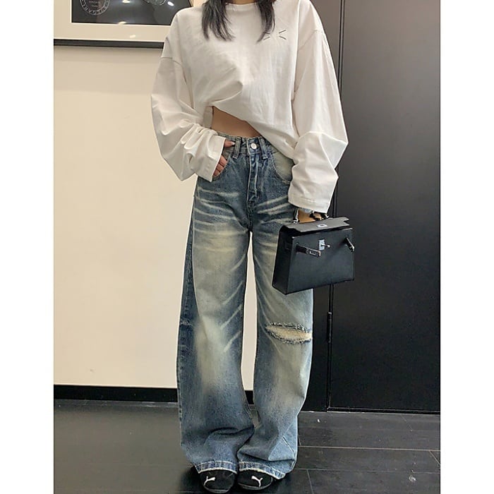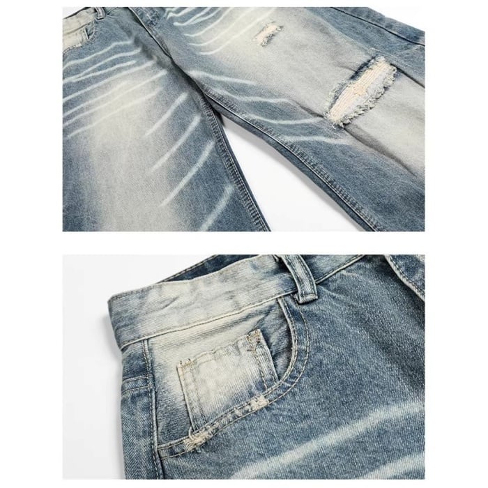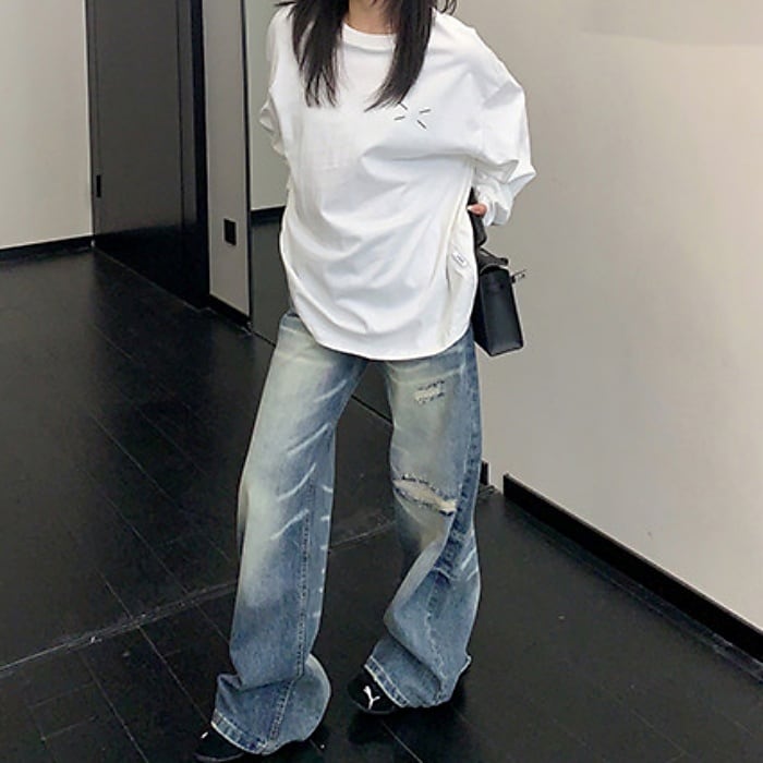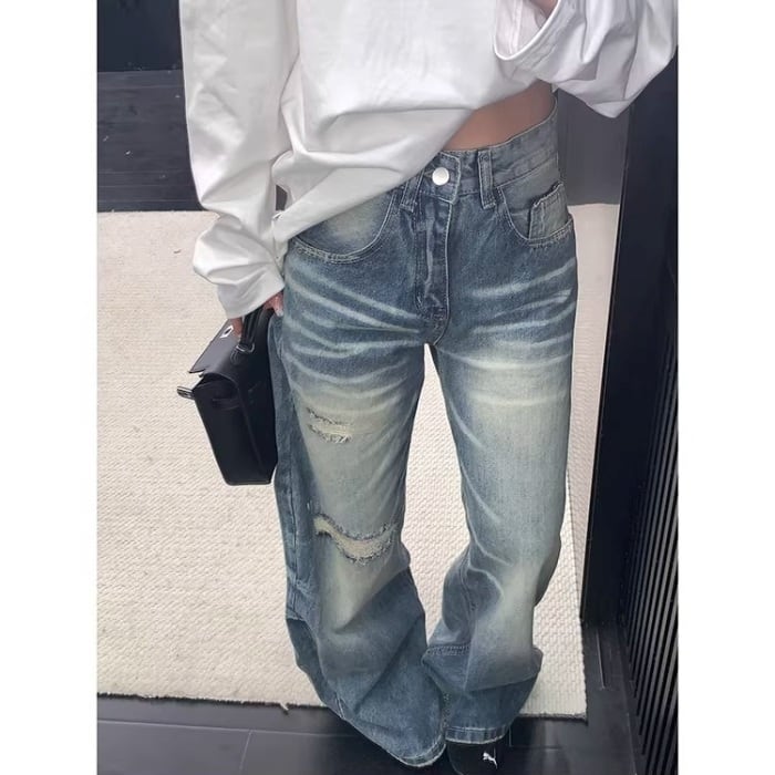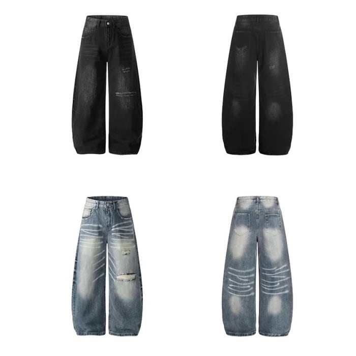 ヴィンテージワイドダメージデニムパンツ[S-XL]