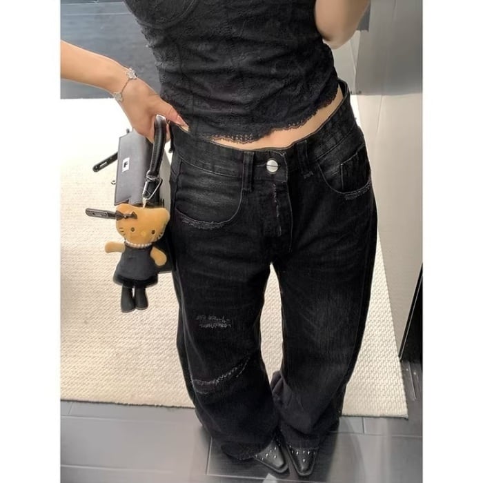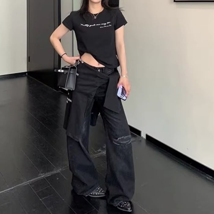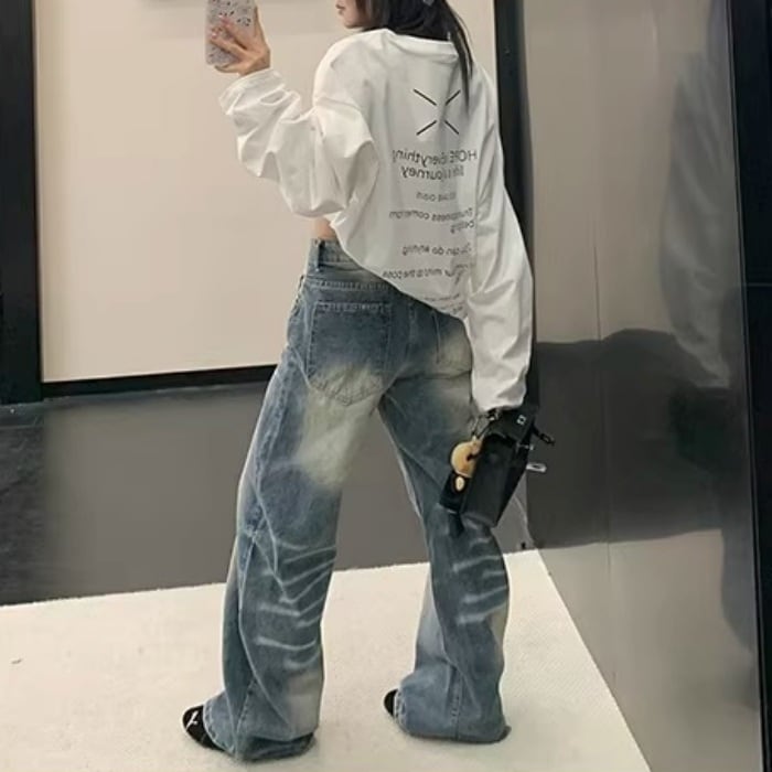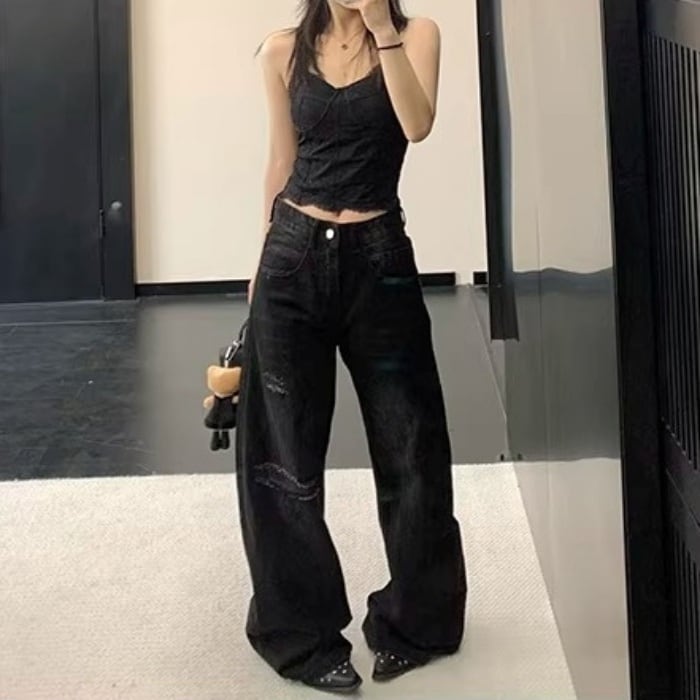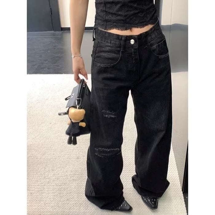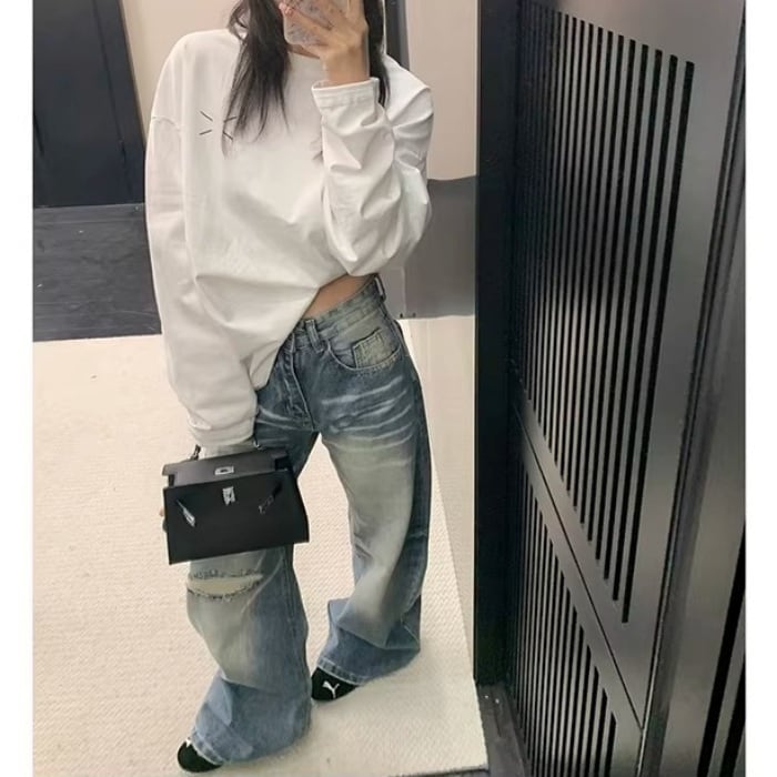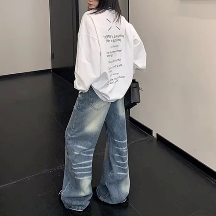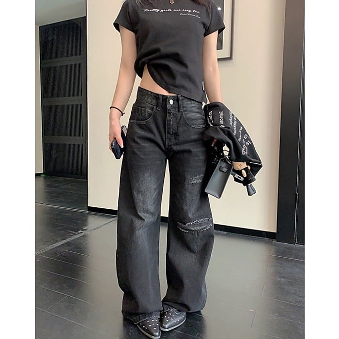 ヴィンテージワイドダメージデニムパンツ[S-XL]