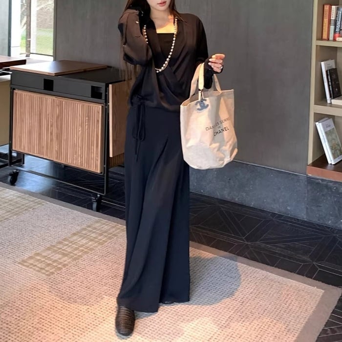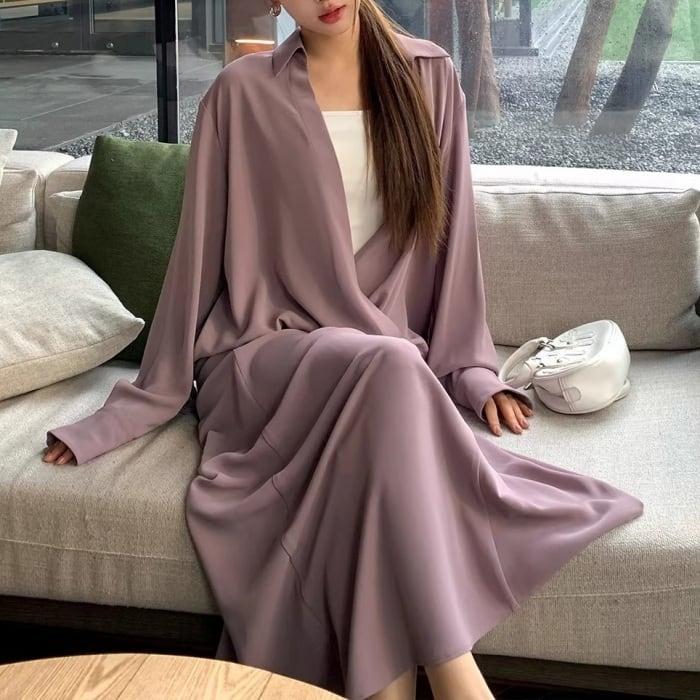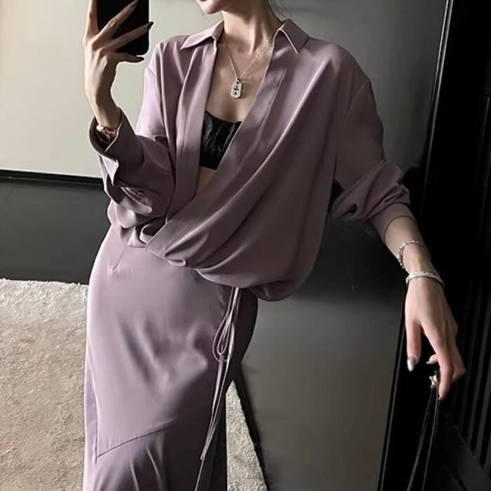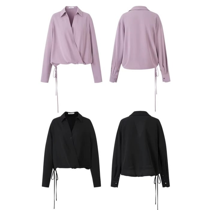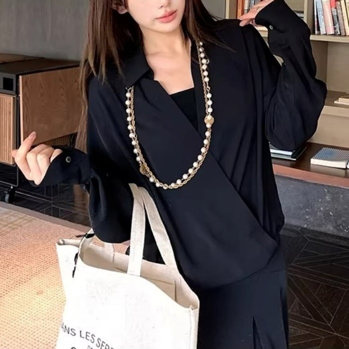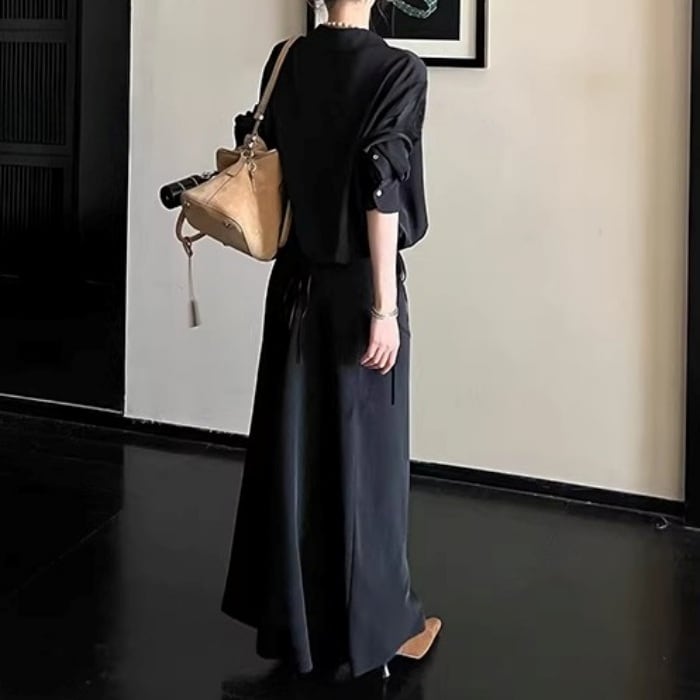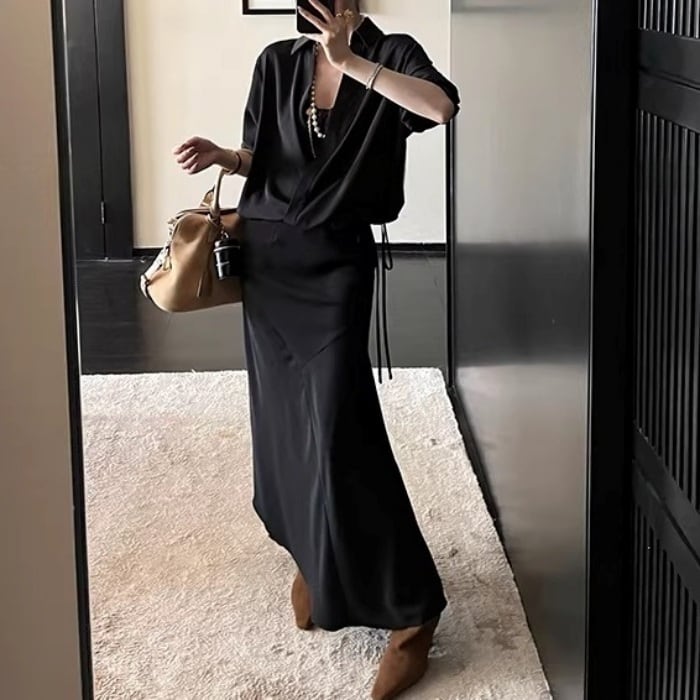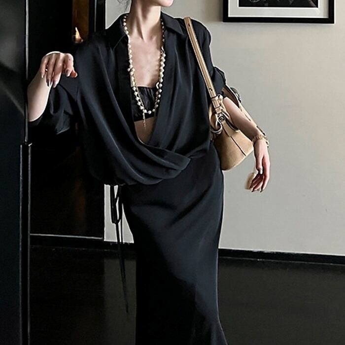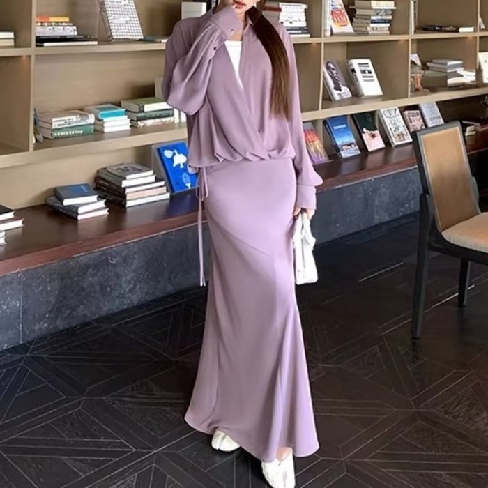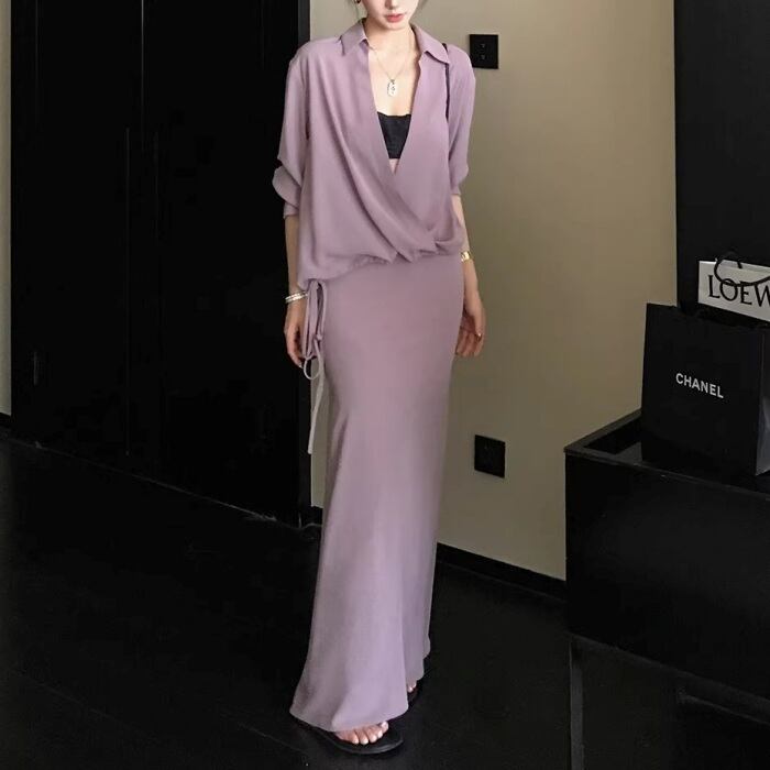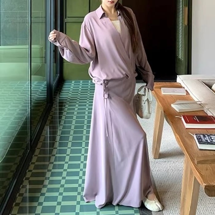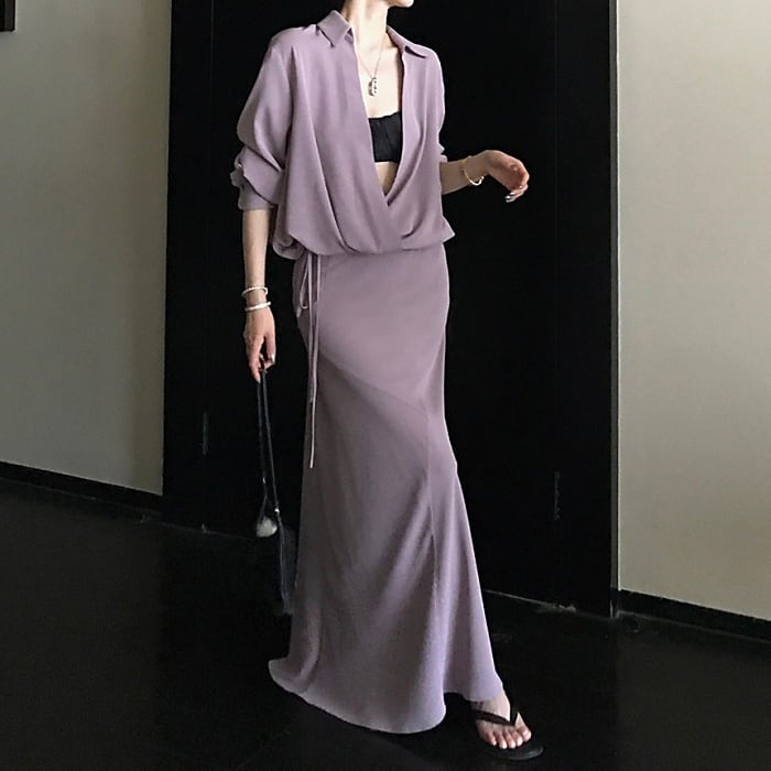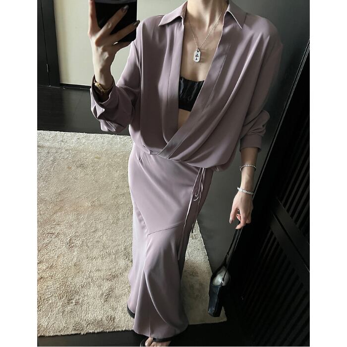 カシュクールシフォンシャツロングスカート セットアップ(単品購入可)[XS-L]