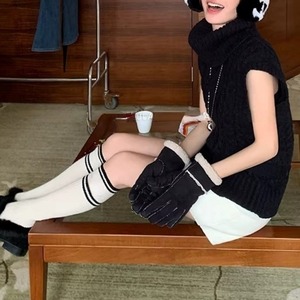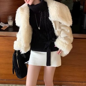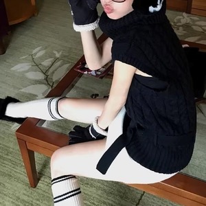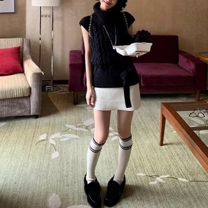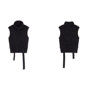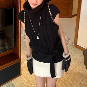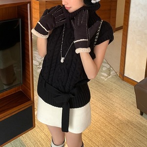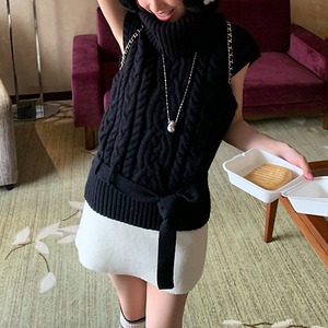 ウエストリボンノースリーブケーブルニット