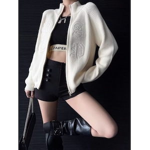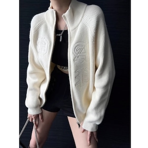 Emb.ロゴスタンドカラージップアップニット[S-L]