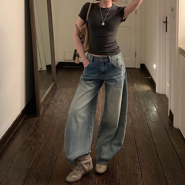 ヴィンテージワイドカーブデニムパンツ[XS-XL]