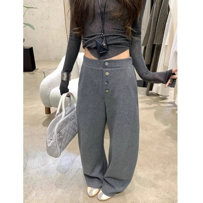 ボタンフライカーブスウェットパンツ[XS-XL]