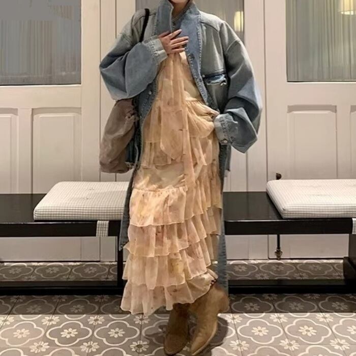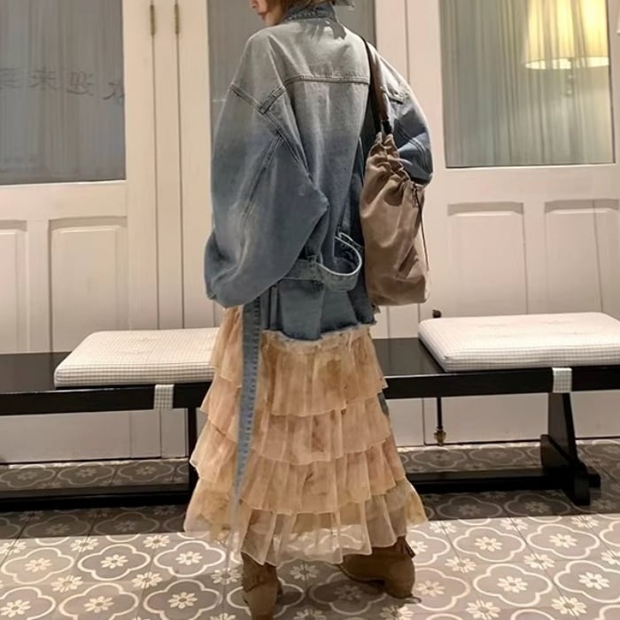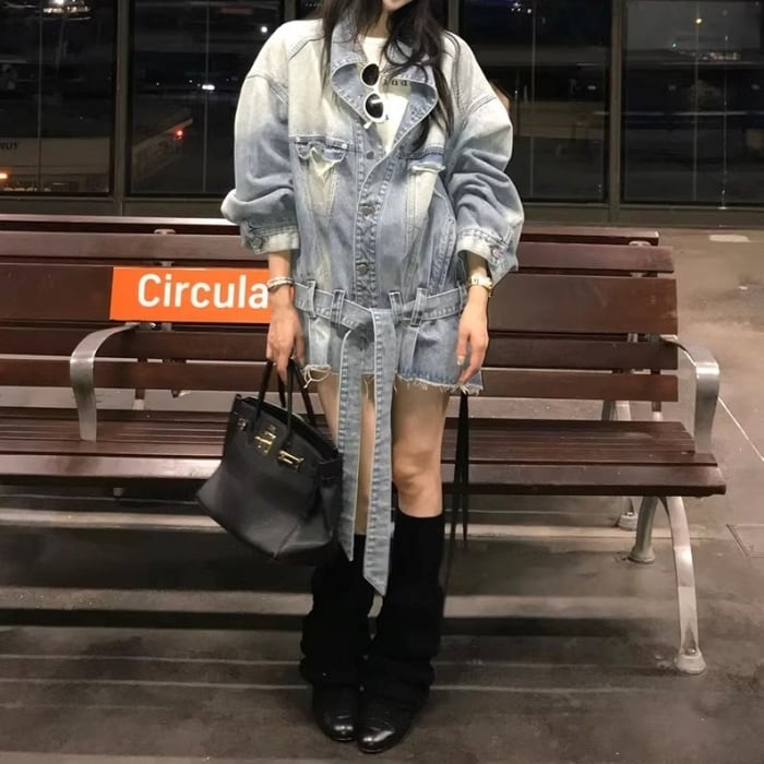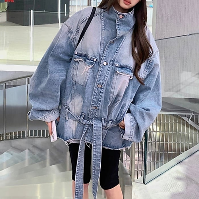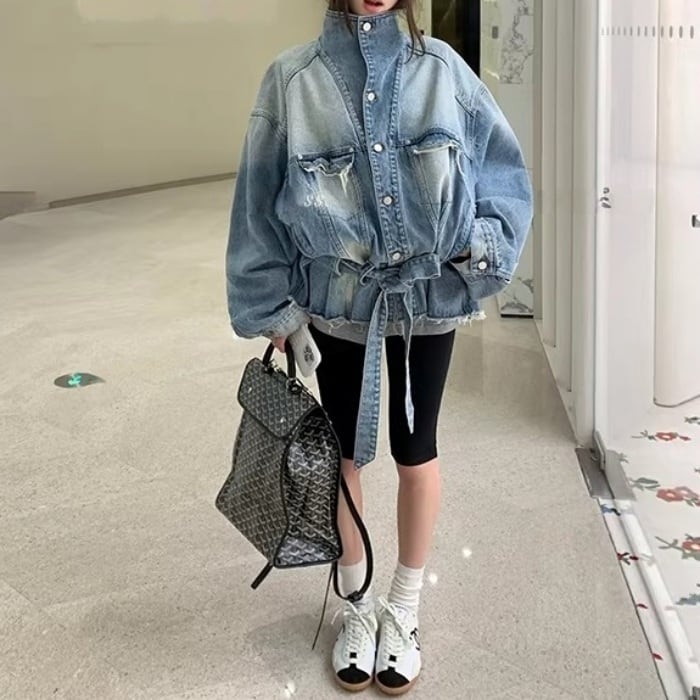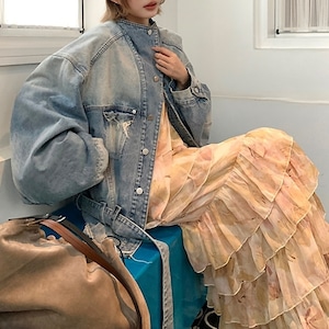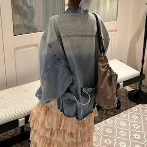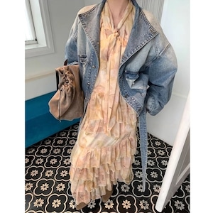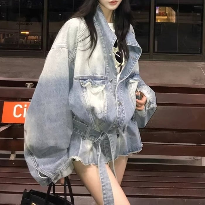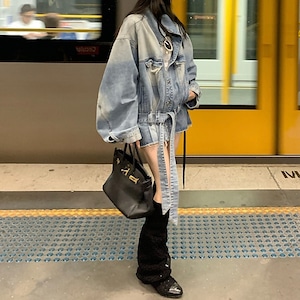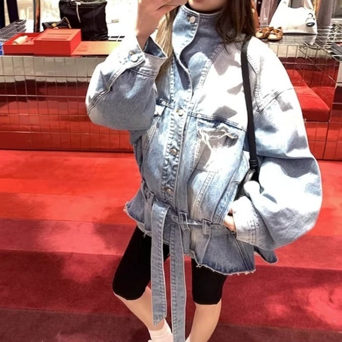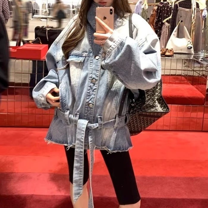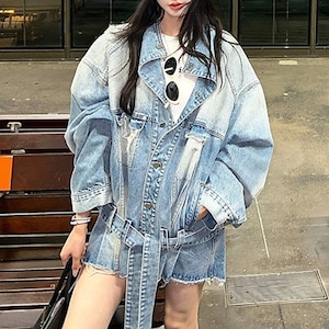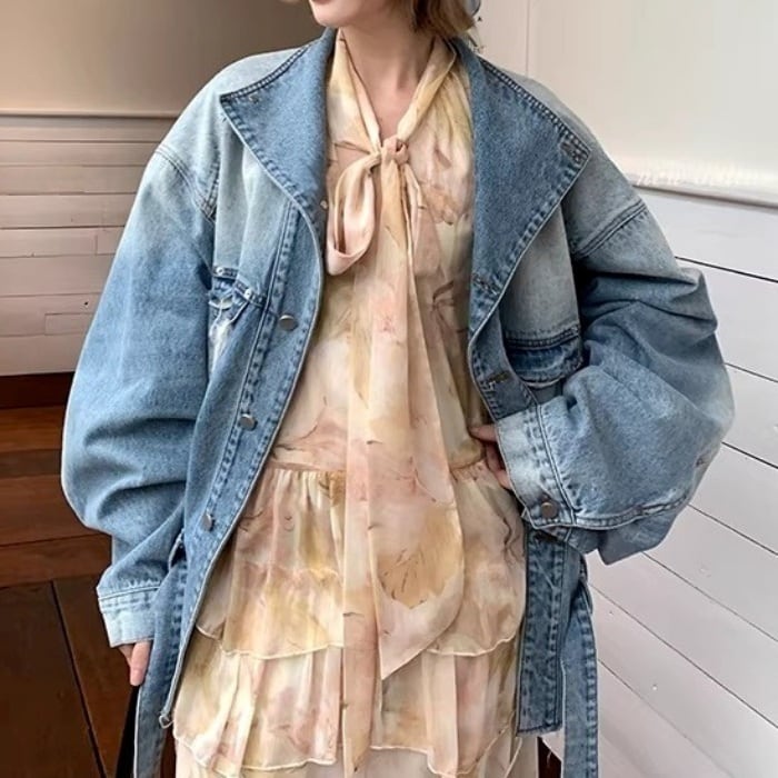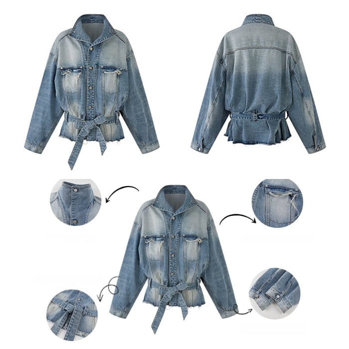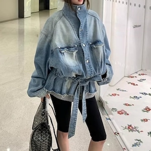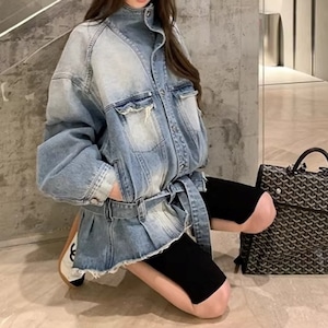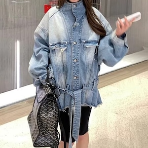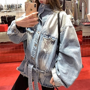 ヴィンテージ2wayカラーサッシュベルトデニムジャケット[XS-L]