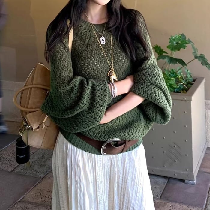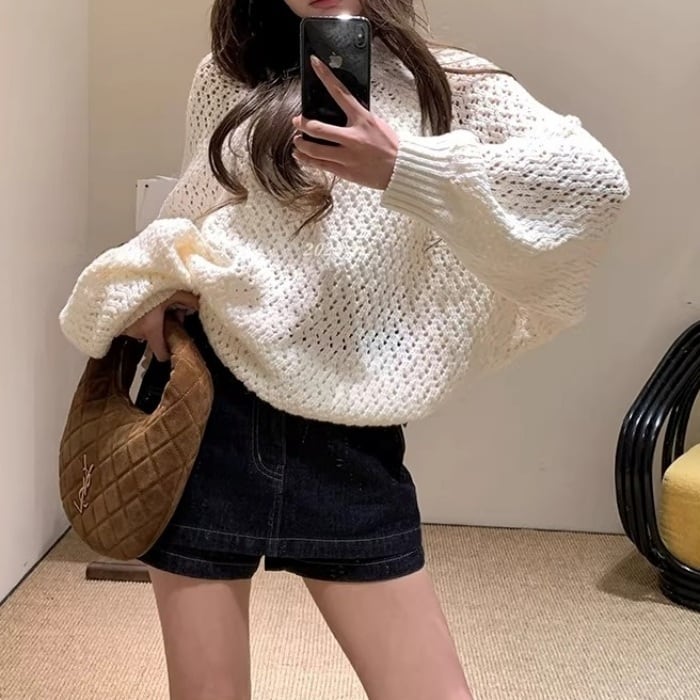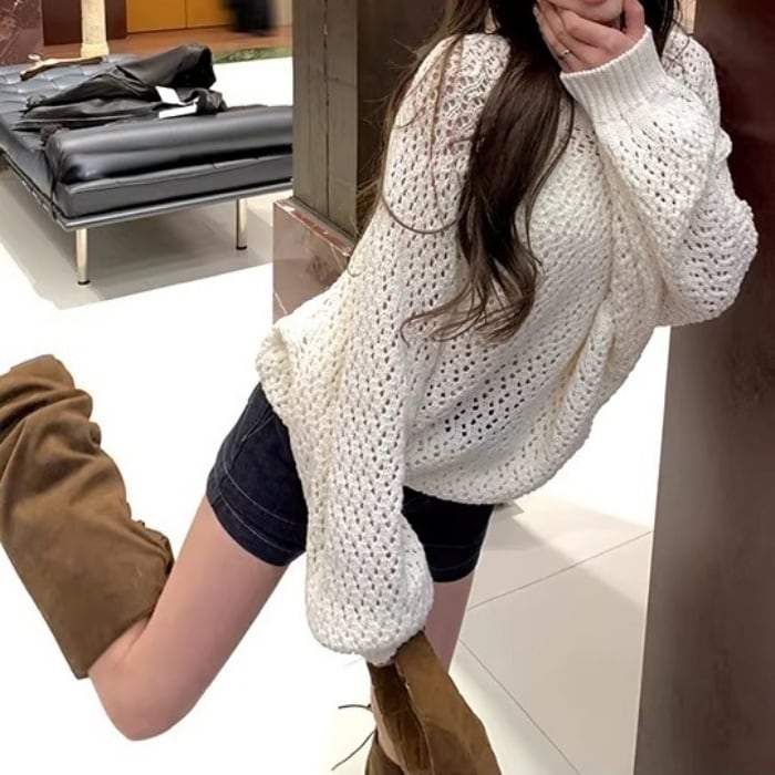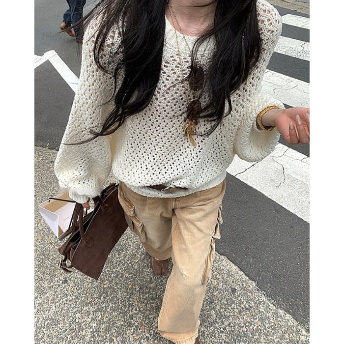 ヘビーウェイトクロシェニットプルオーバー[XS-L]