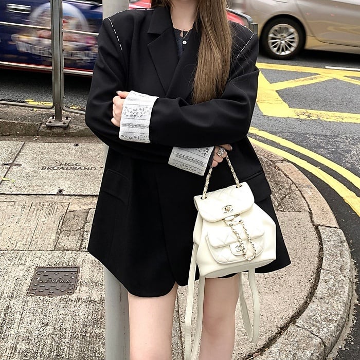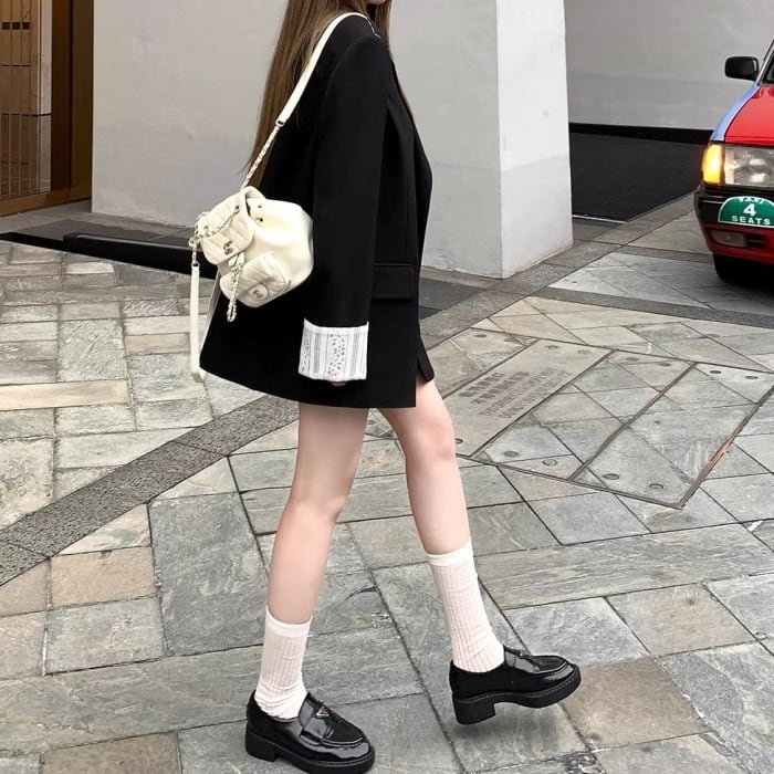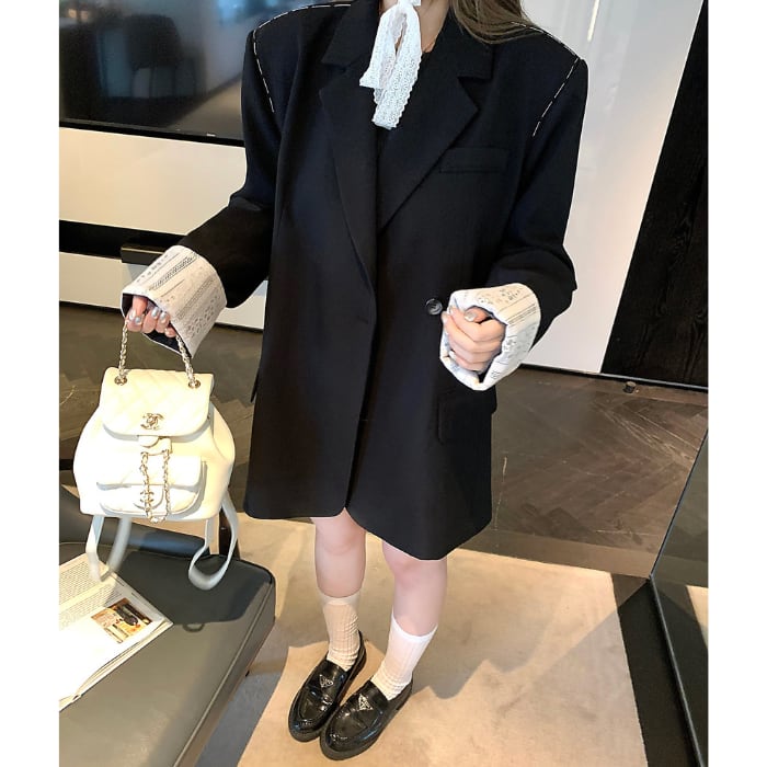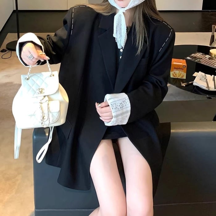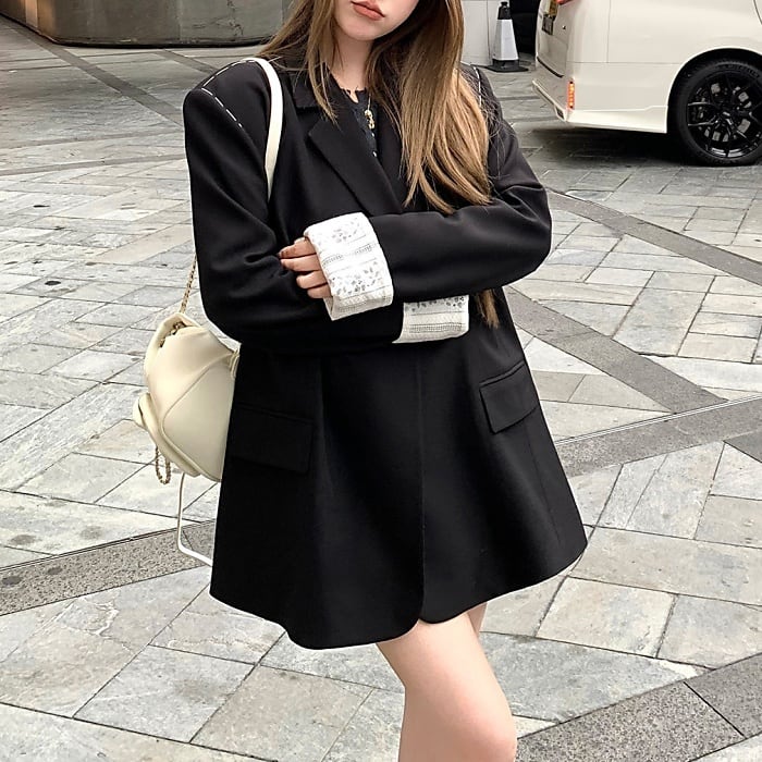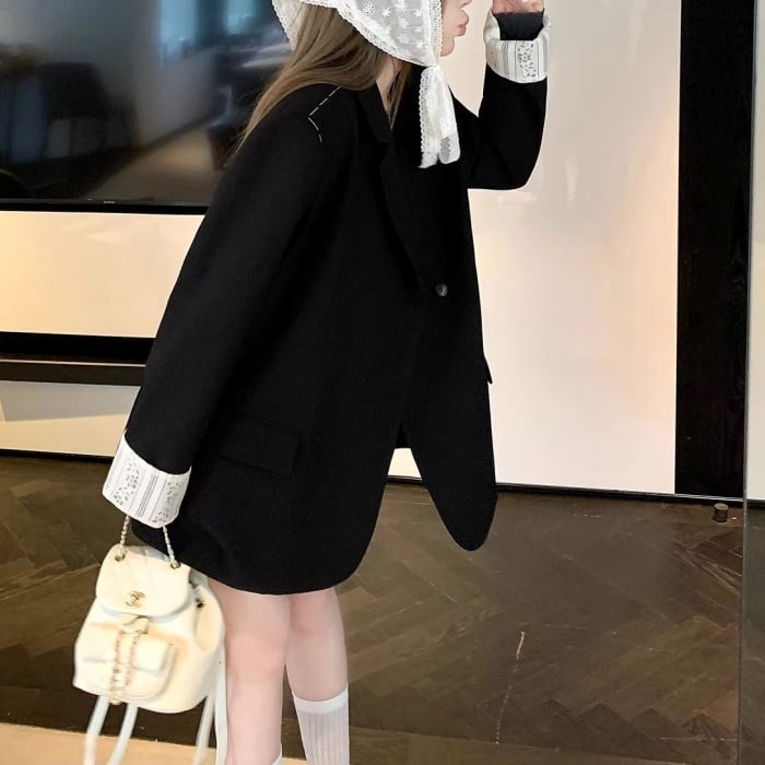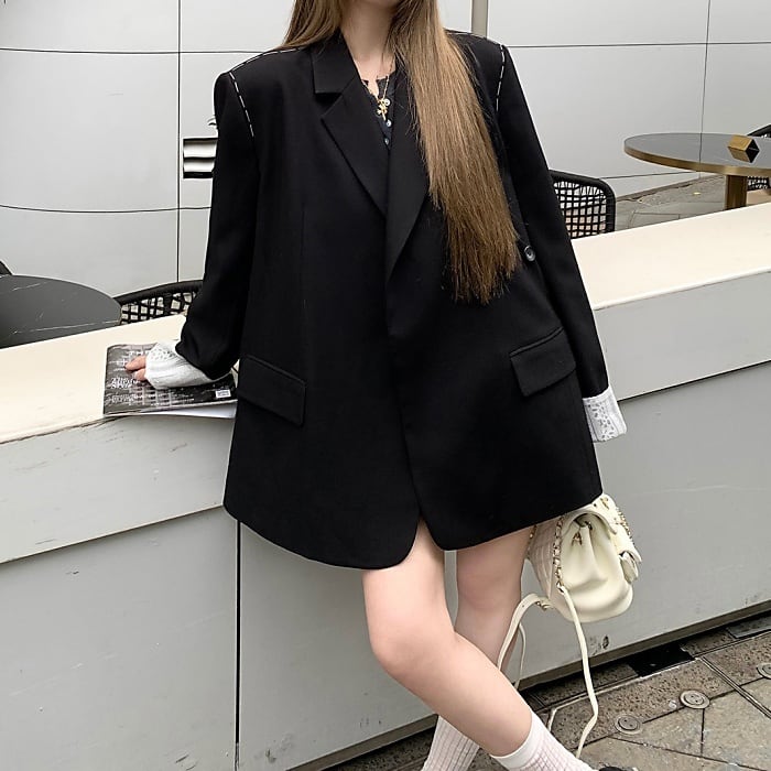 レースカフスデザインステッチルーズジャケット[S-L]