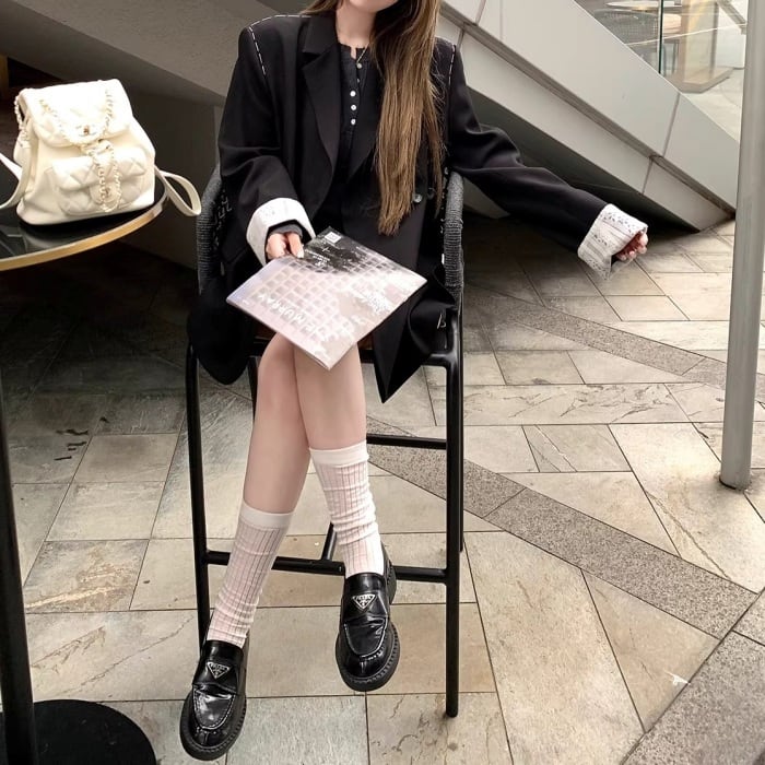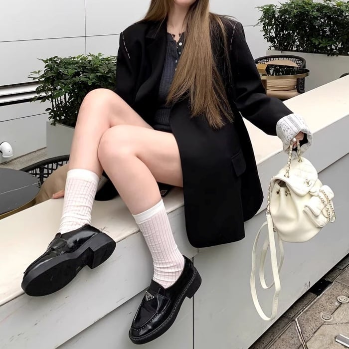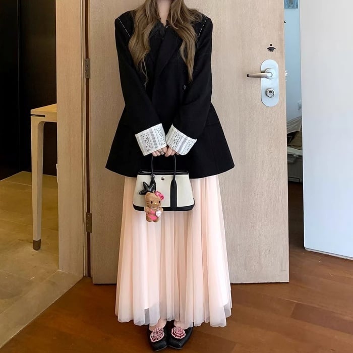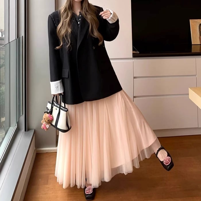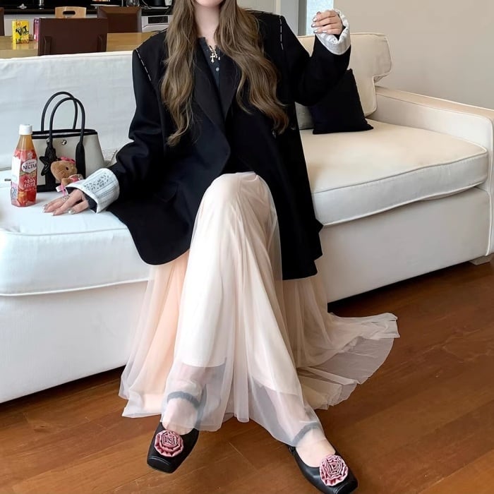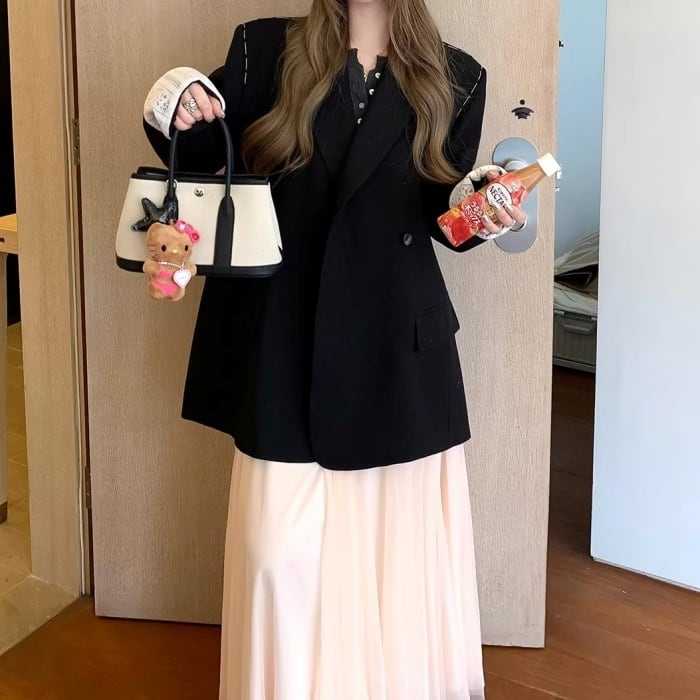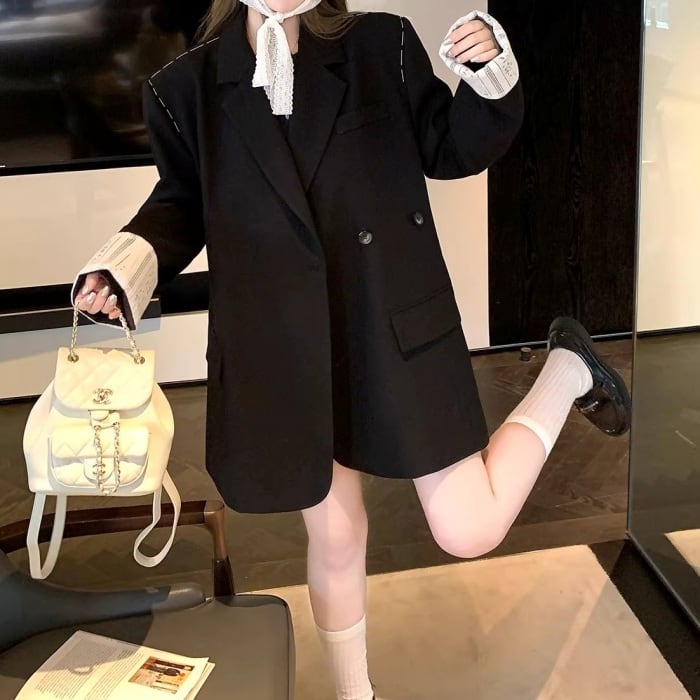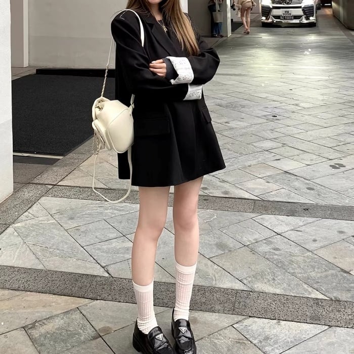 レースカフスデザインステッチルーズジャケット[S-L]