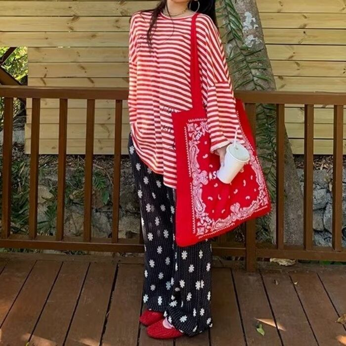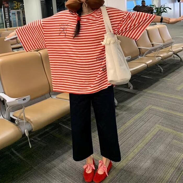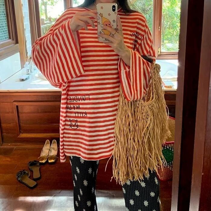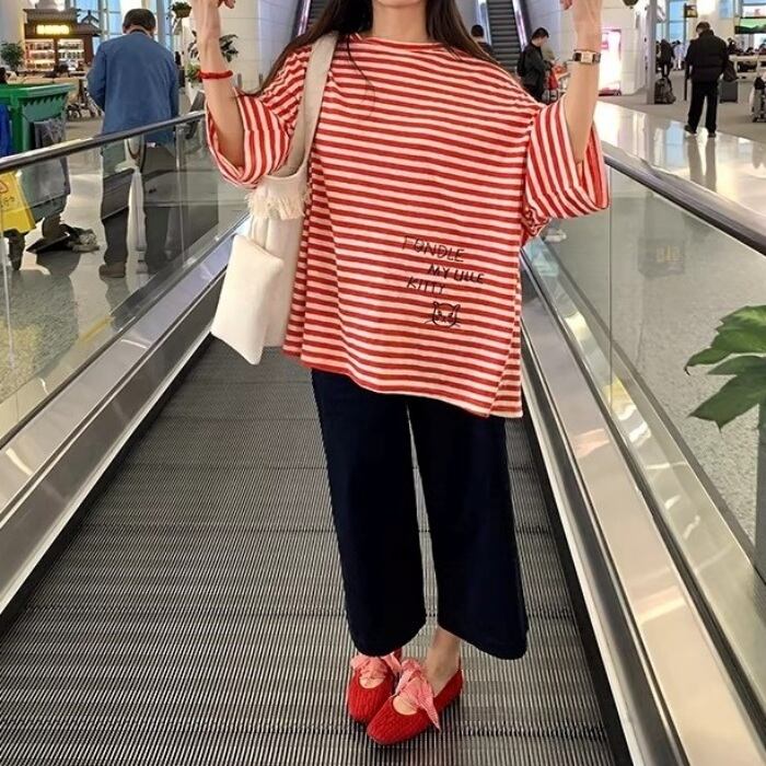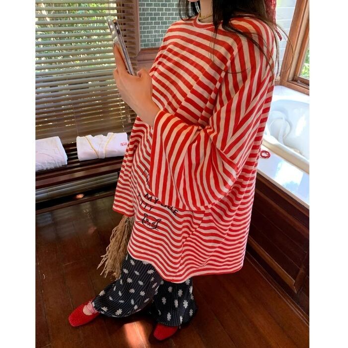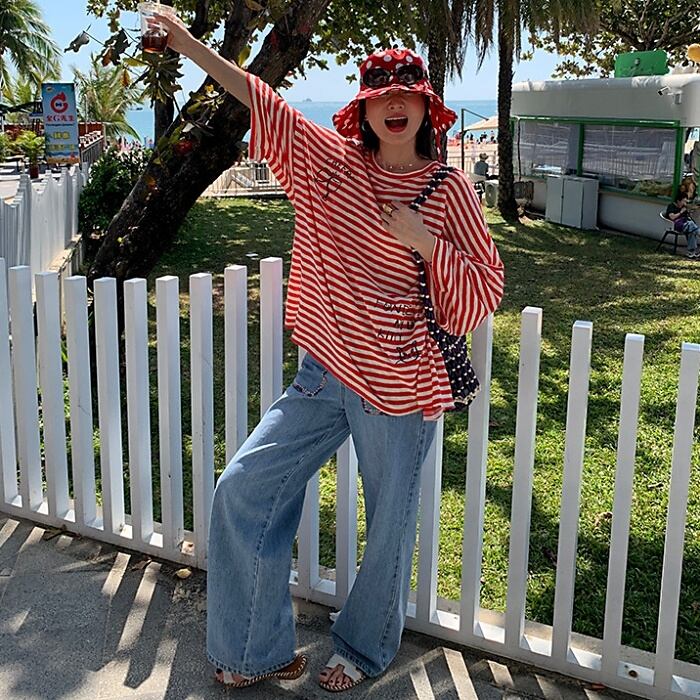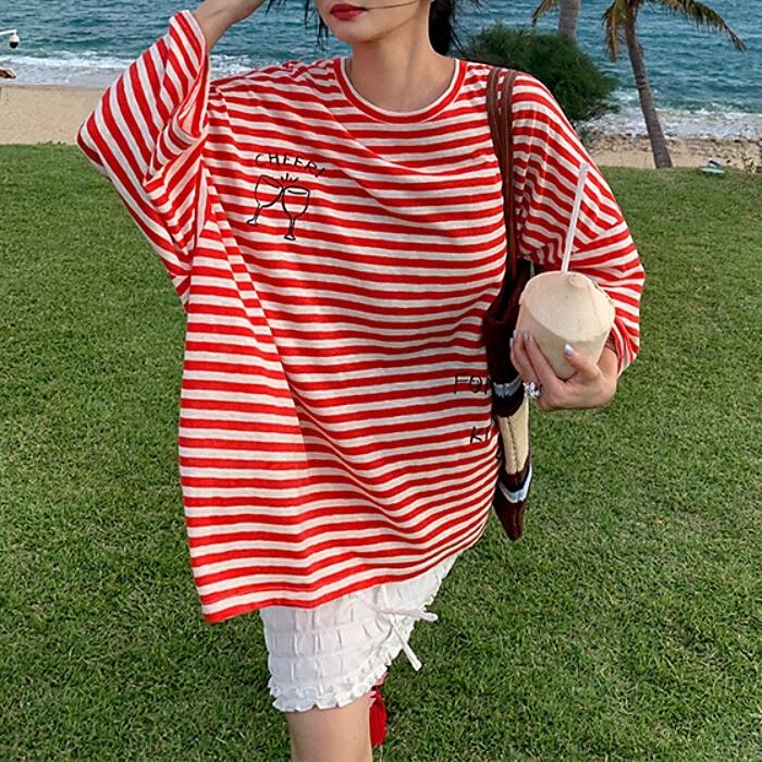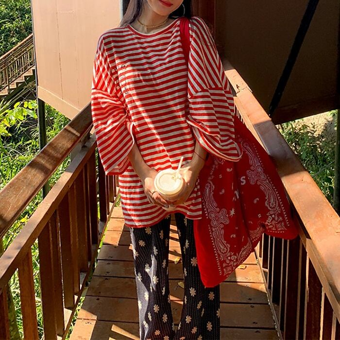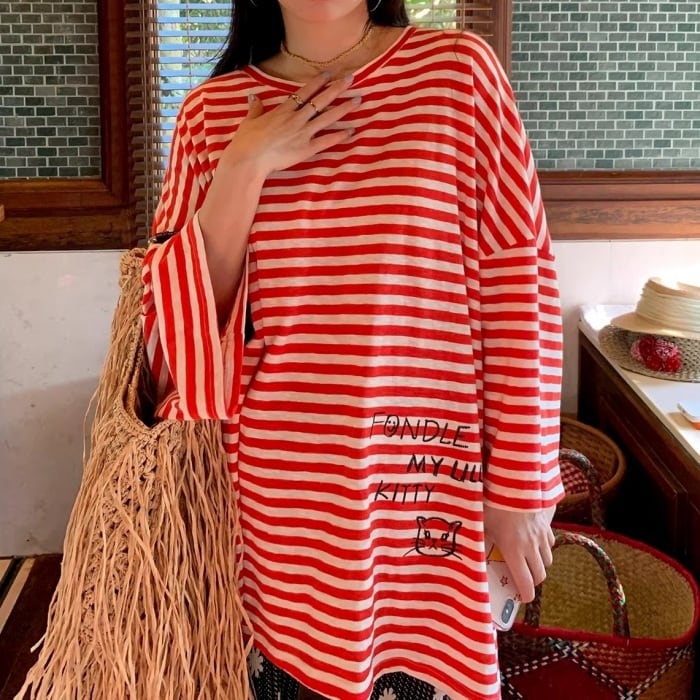 グラフィティオーバーサイズストライプTシャツ[S-L]