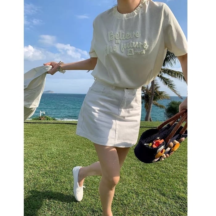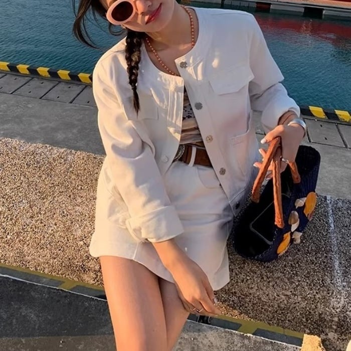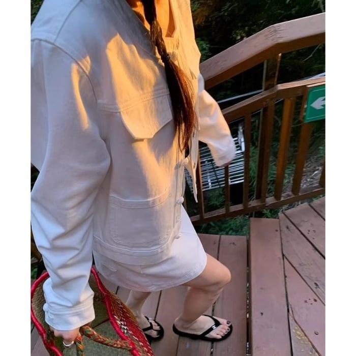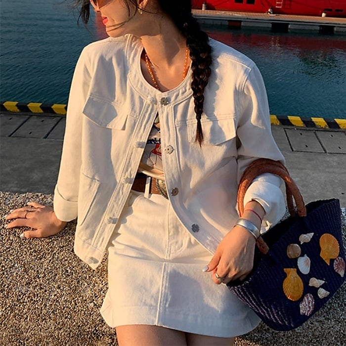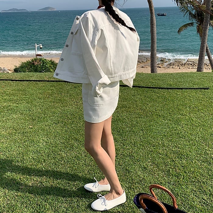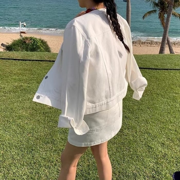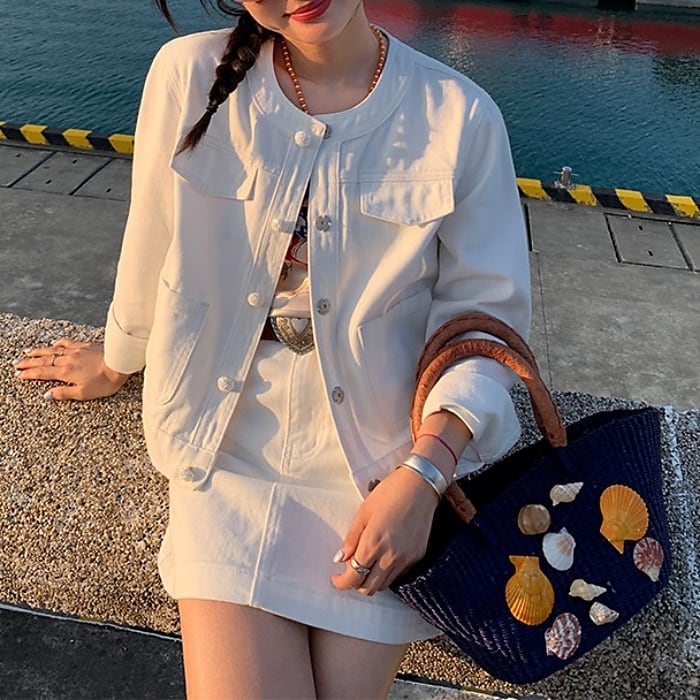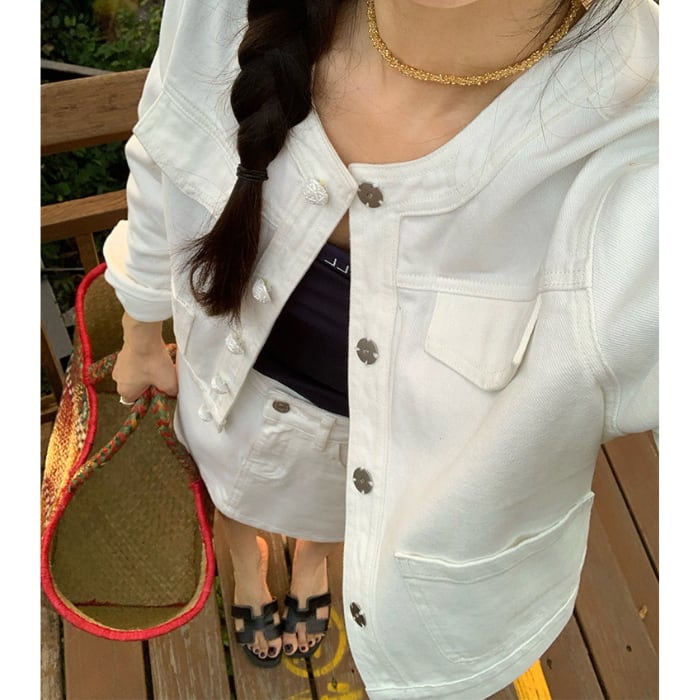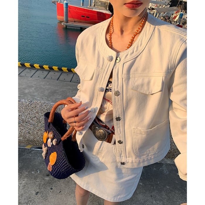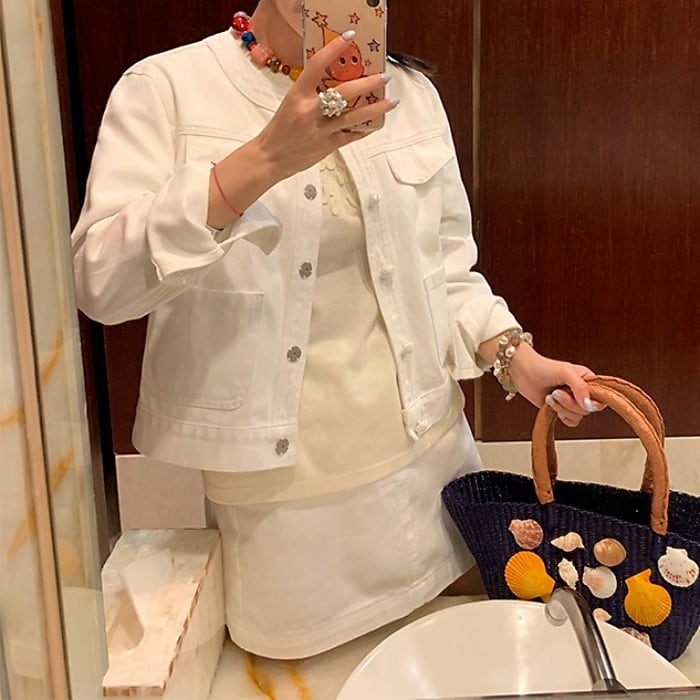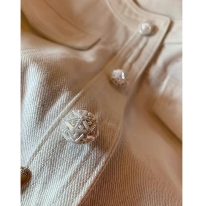 パールビジューボタンデニムセットアップ(単品購入可)[S-L]