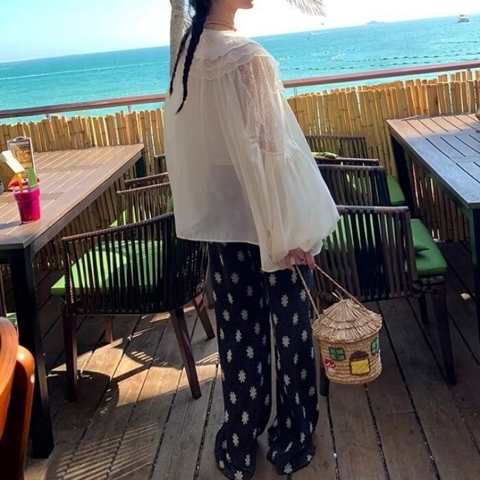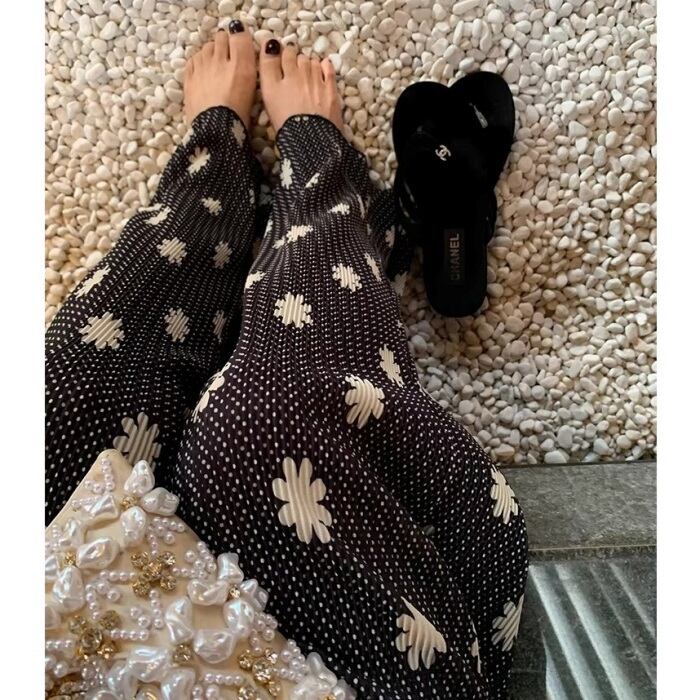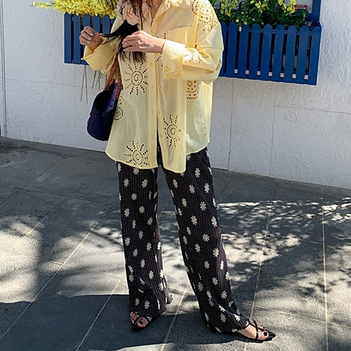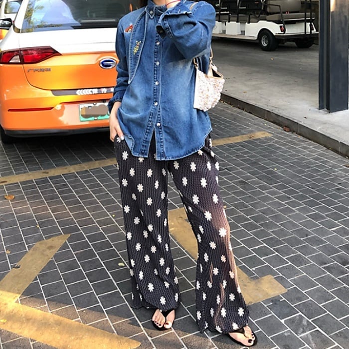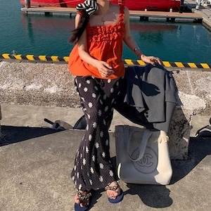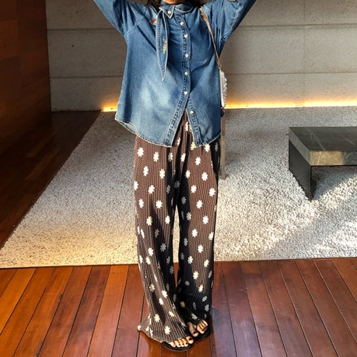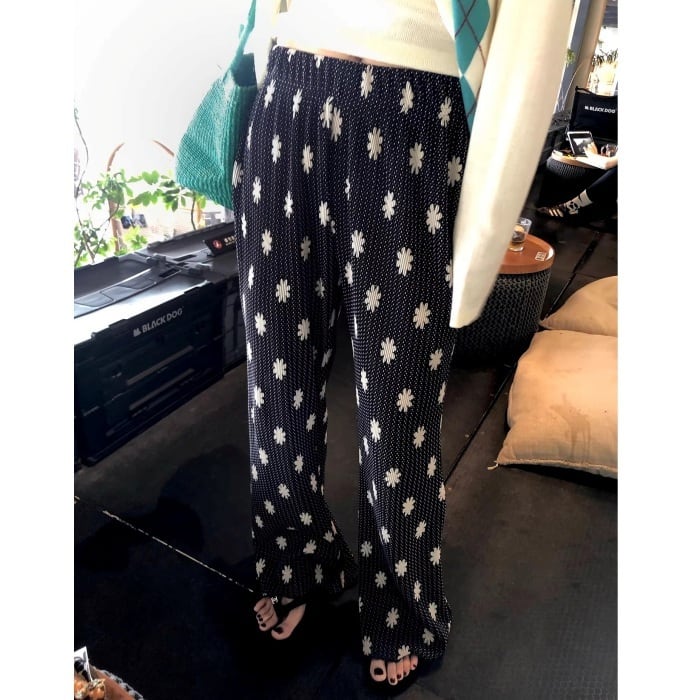 リバティプリントストレッチプリーツパンツ[S-L]