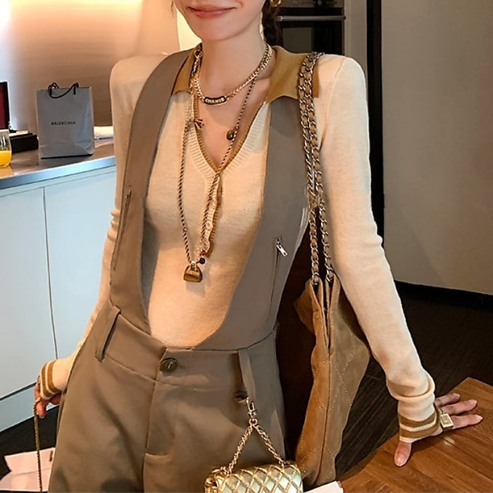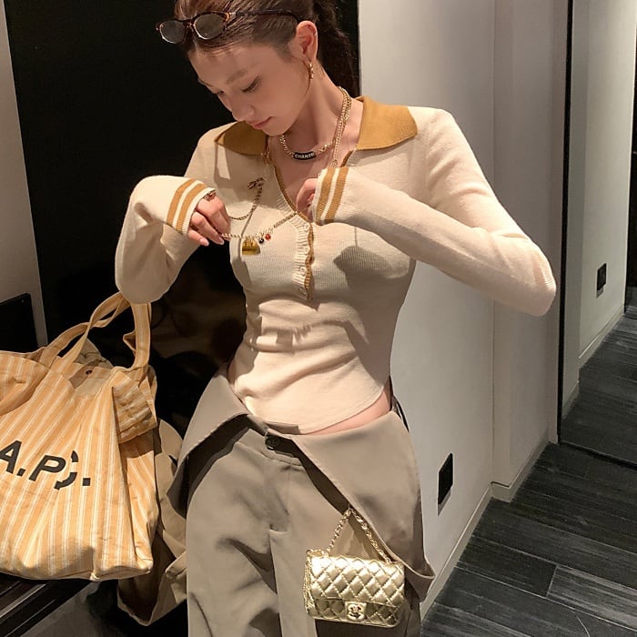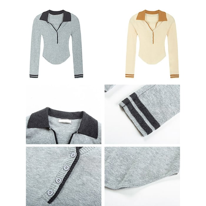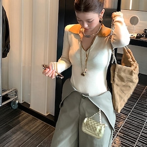 カラーブロックポロネックスリムフィットニット
