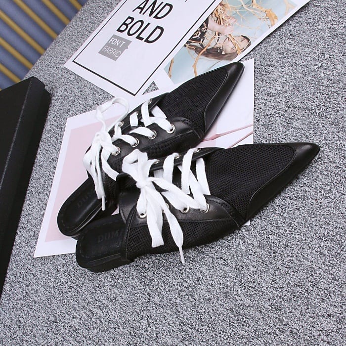 ポインテッドトゥレースアップフラットミュール[35-40インチ]