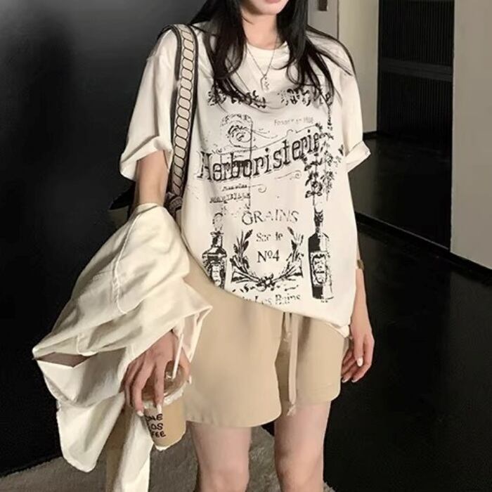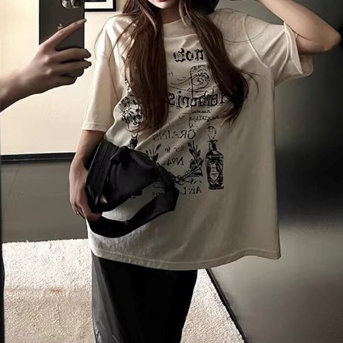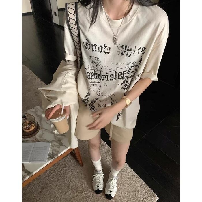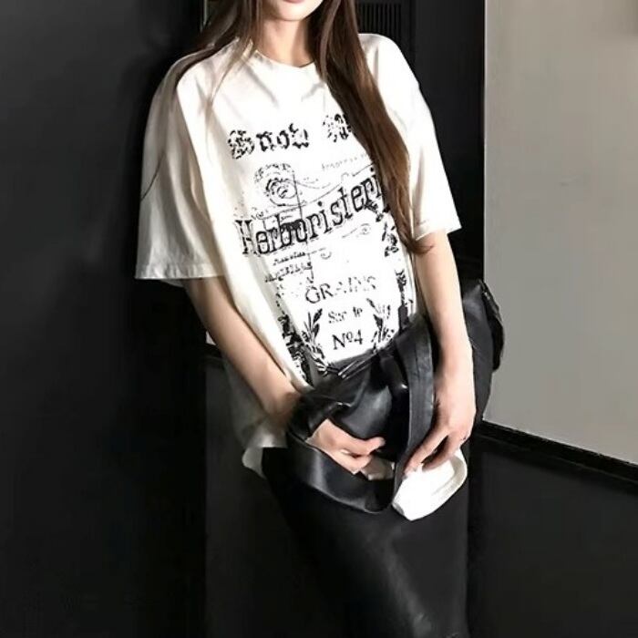 ダメージグラフィティプリントルーズTシャツ[XS-L]