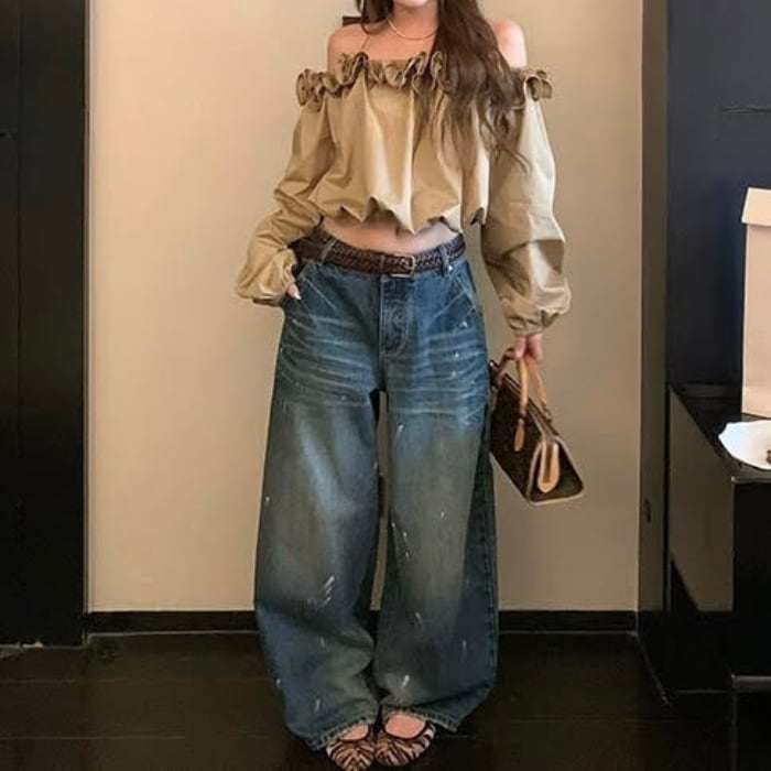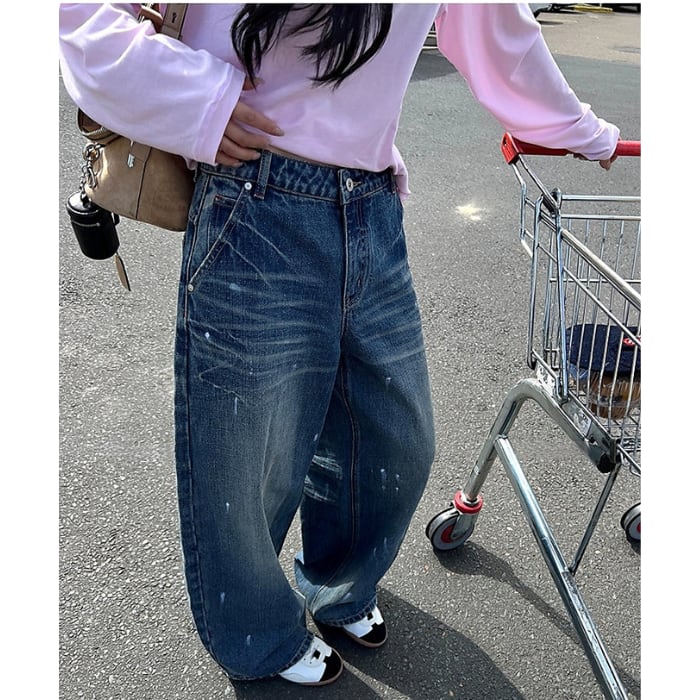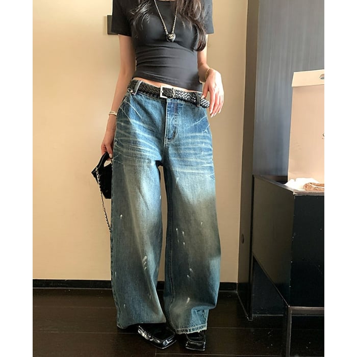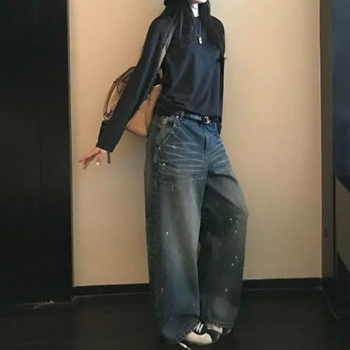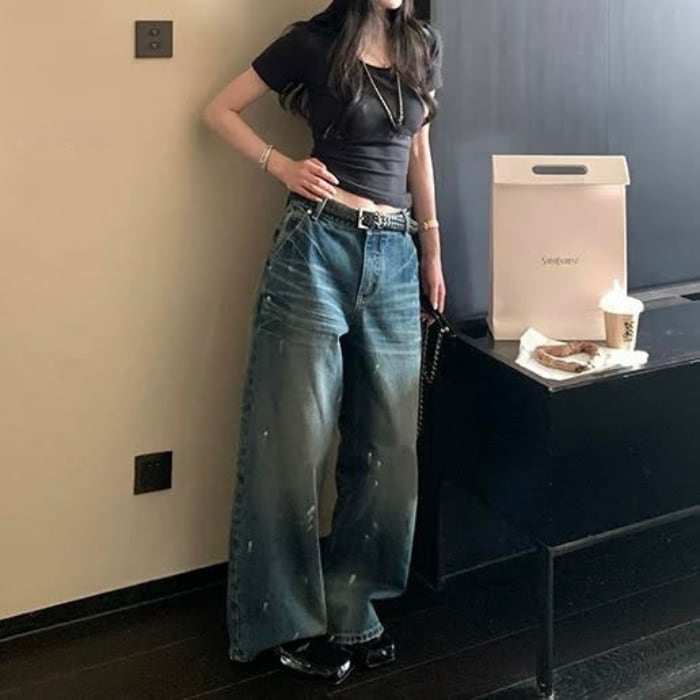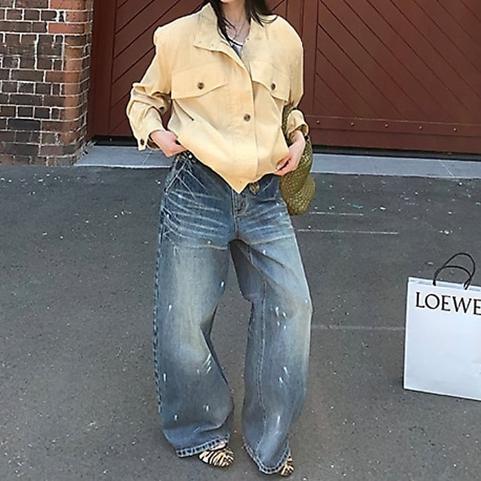ヘビーウェイトウォッシュドワイドデニムパンツ[XS-XL]