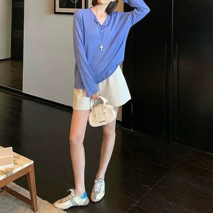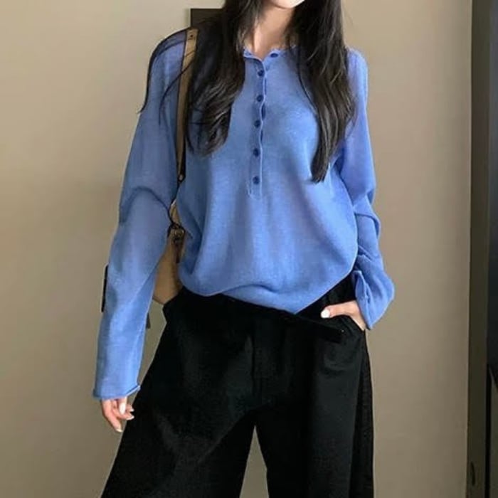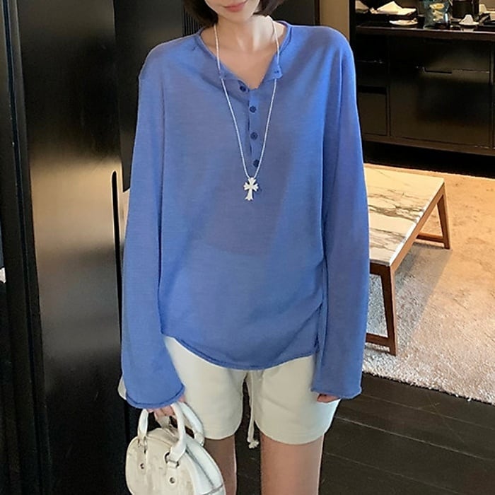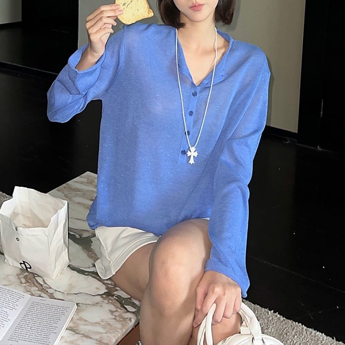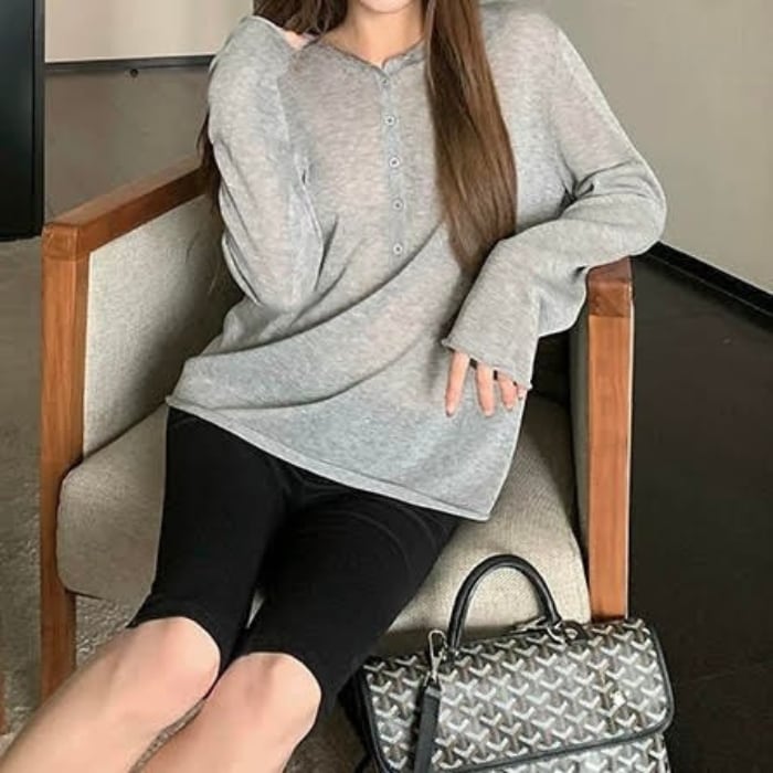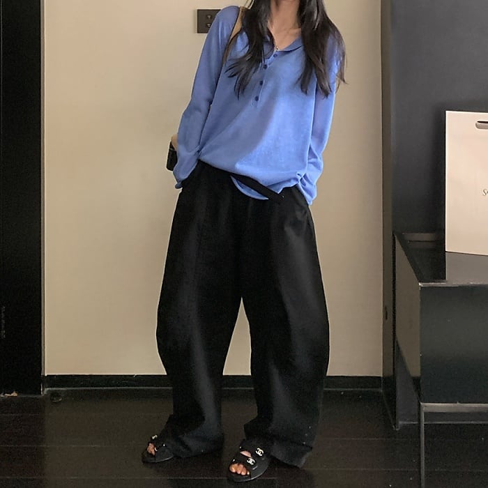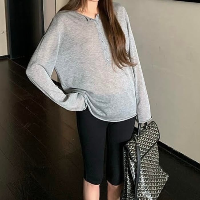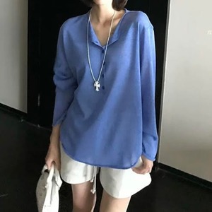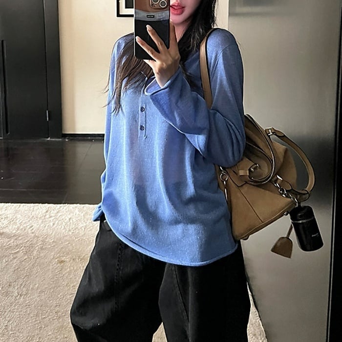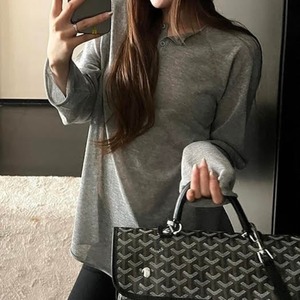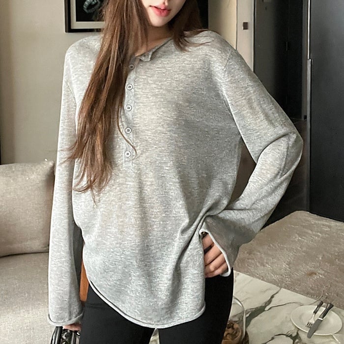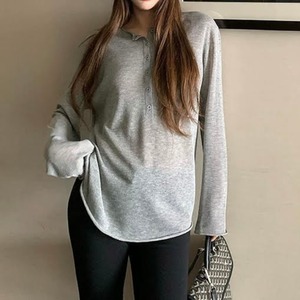 ヘンリーネックセミシアーロールエッジニット[XS-L]