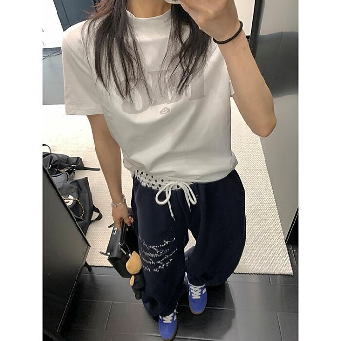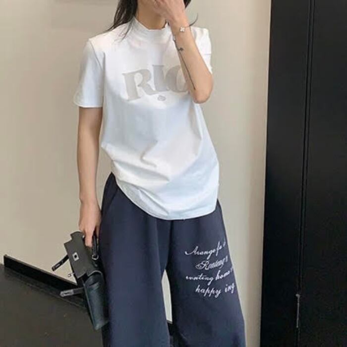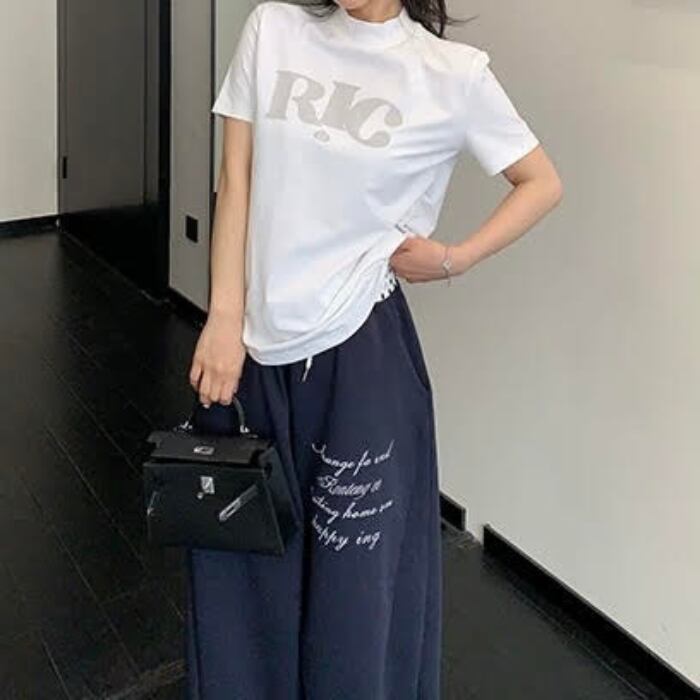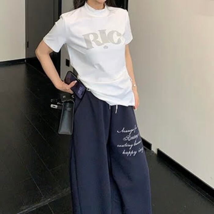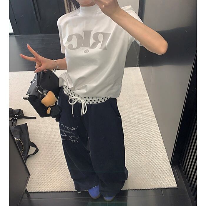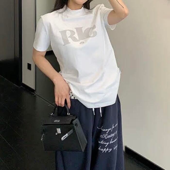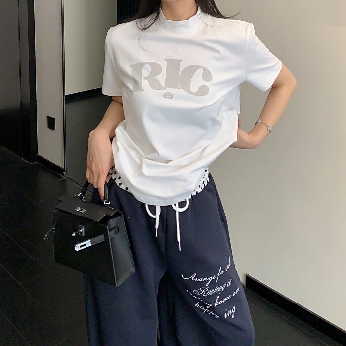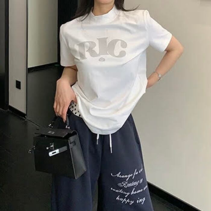 ハイネックロゴプリントTシャツ[M-XXL]