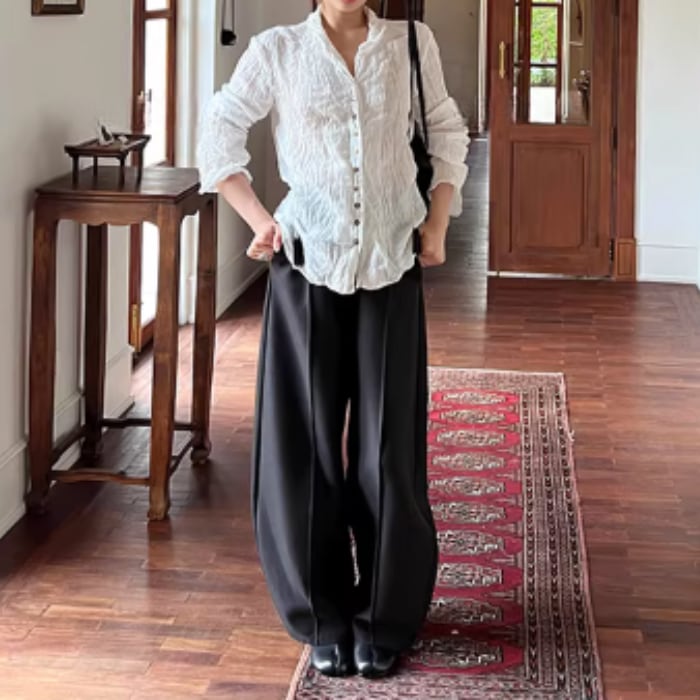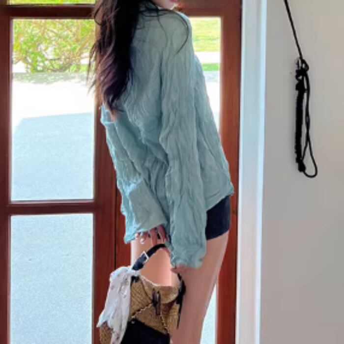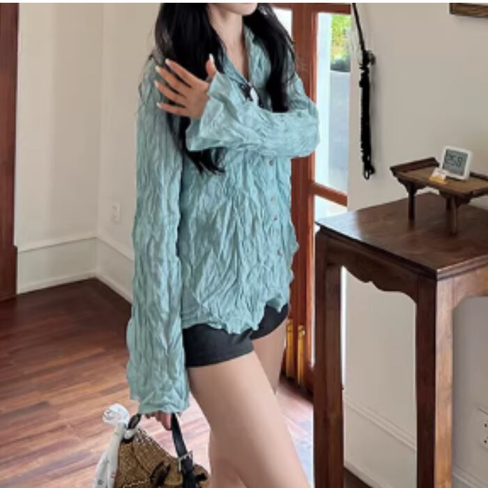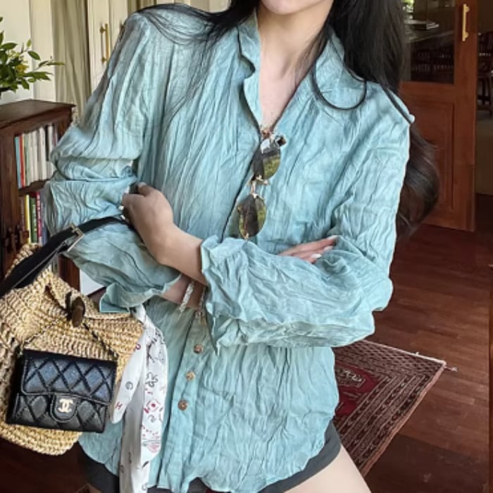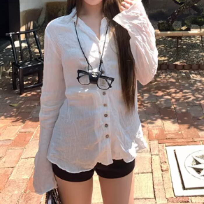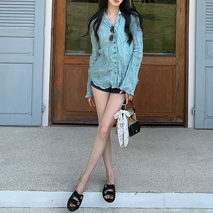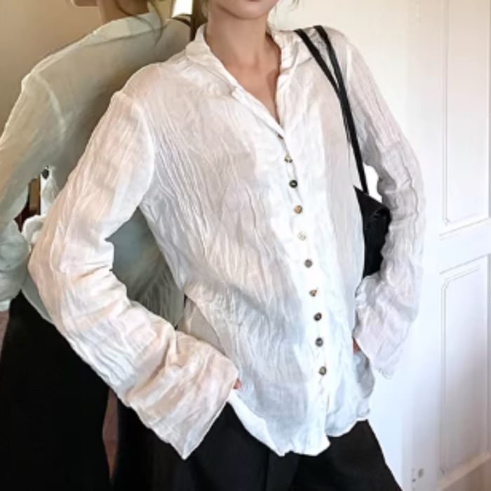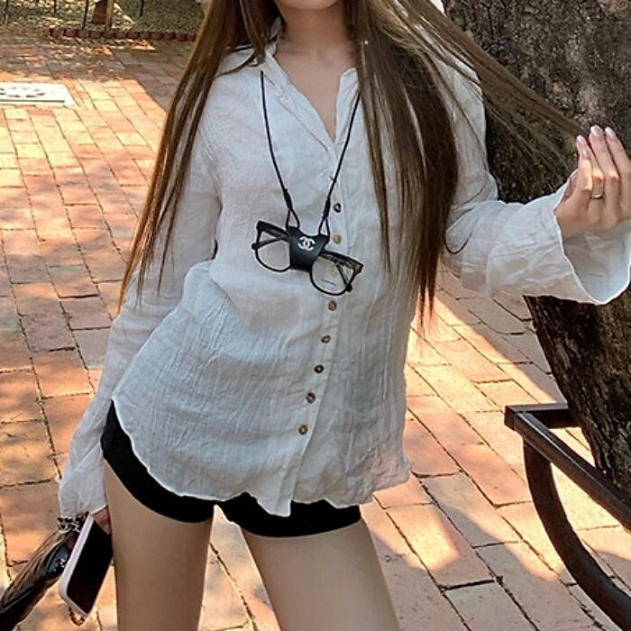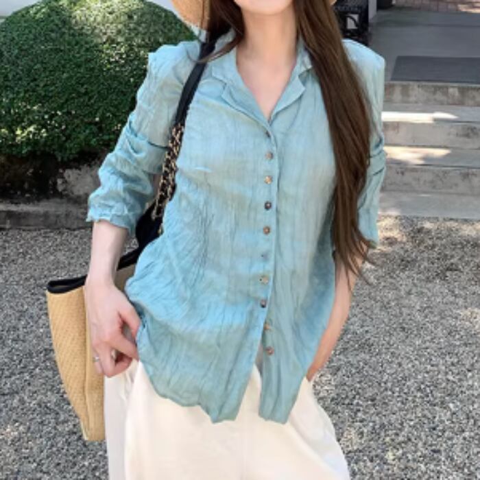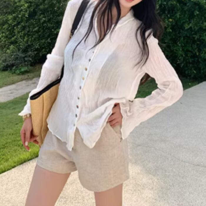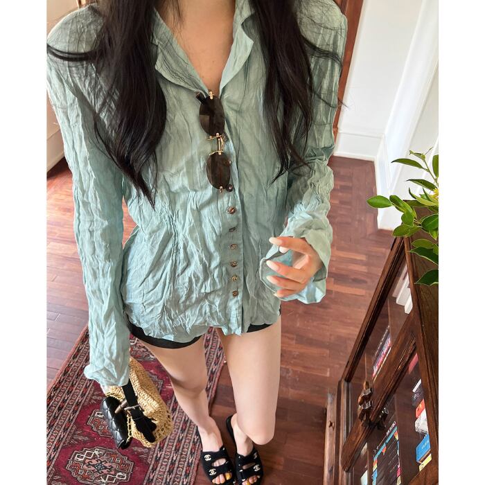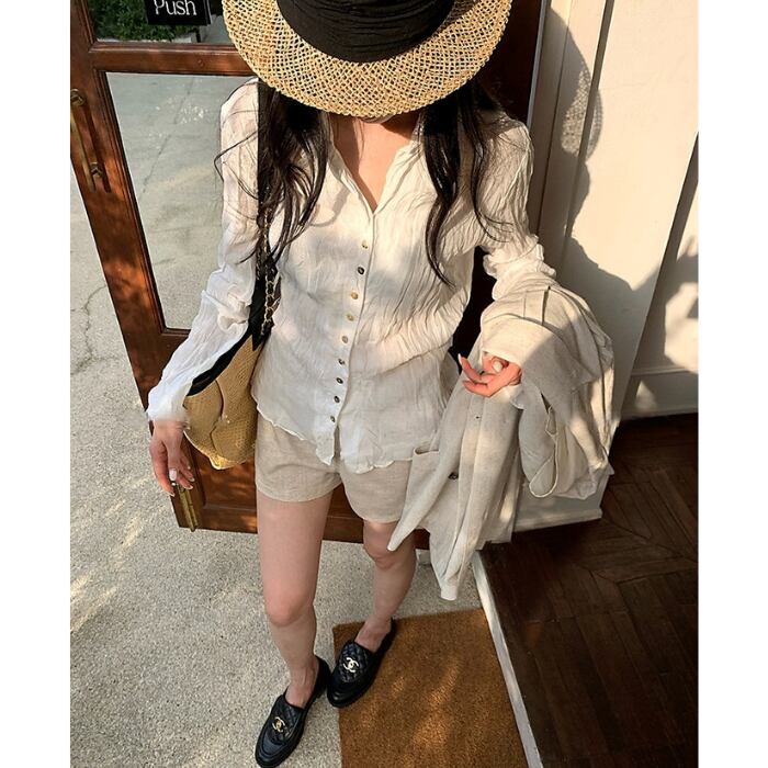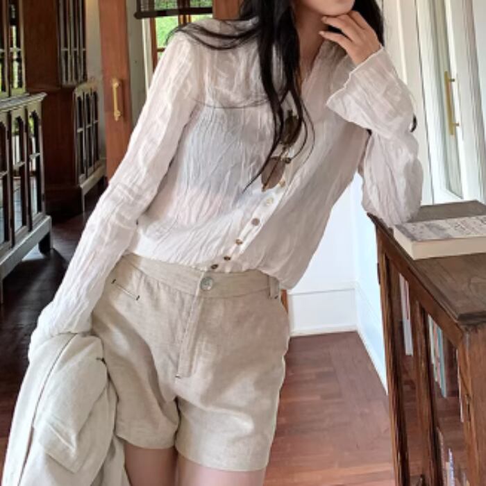 シェルボタンクリンクルリネンシャツ[XS-L]