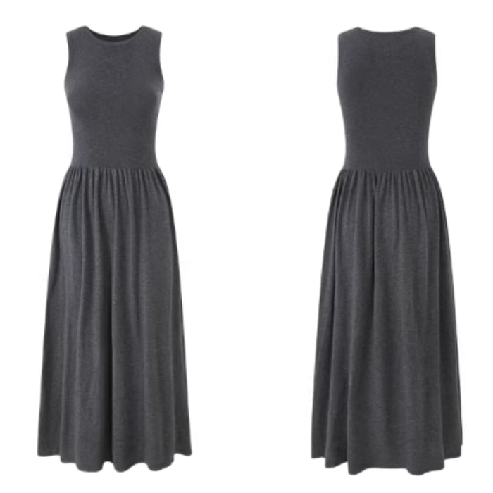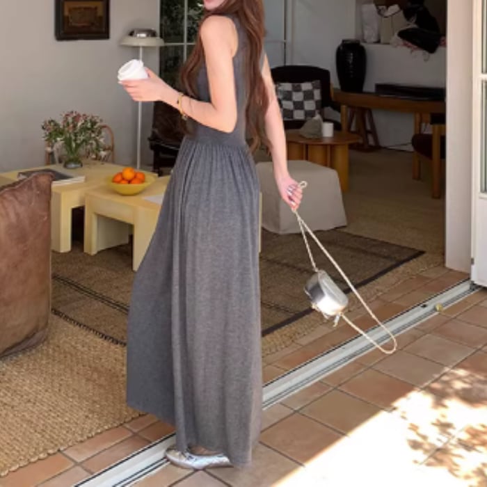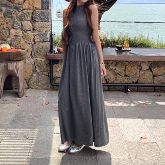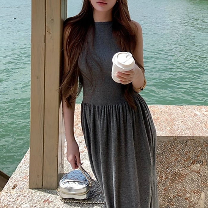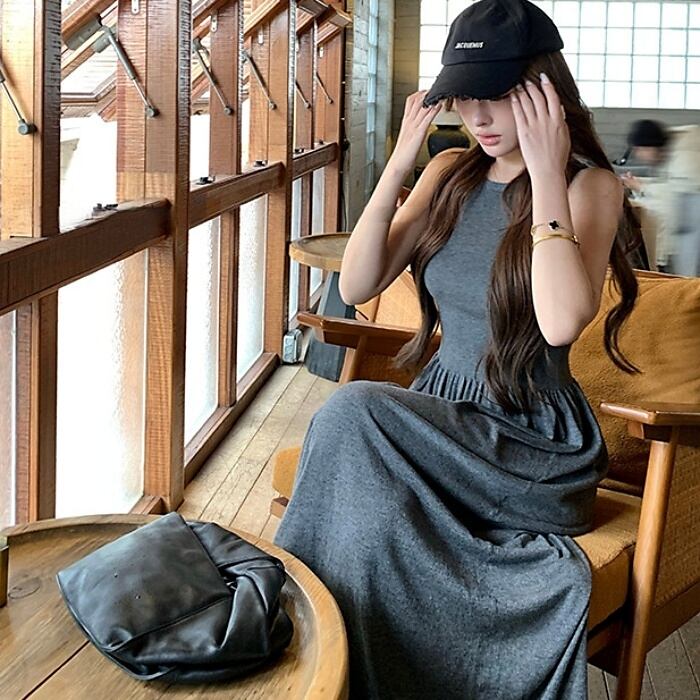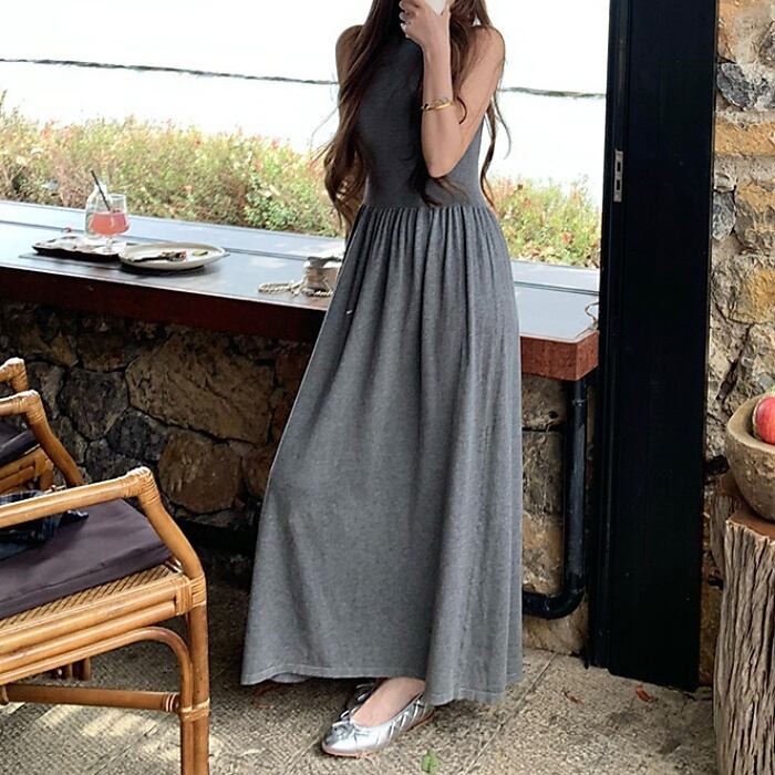 スリムフィットノースリーブマキシニットワンピース[XS-L]