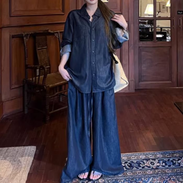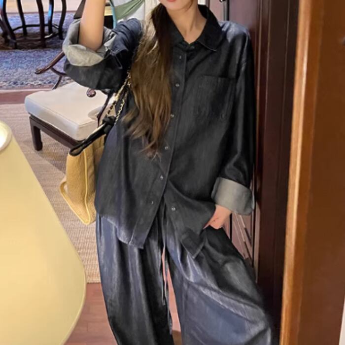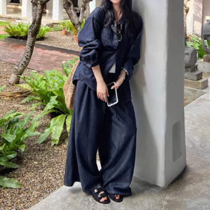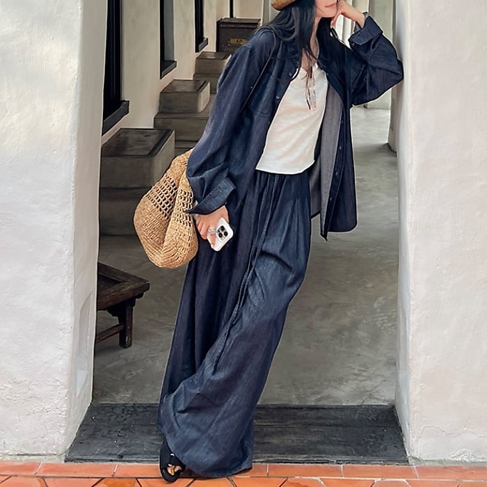 リラクシーテンセルコットンデニムセットアップ(単品購入可)[XS-L]
