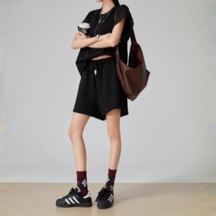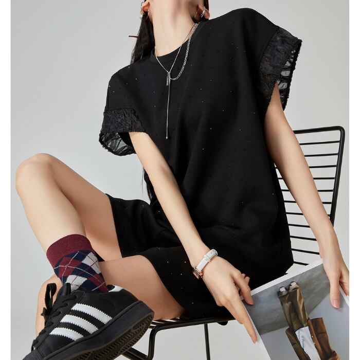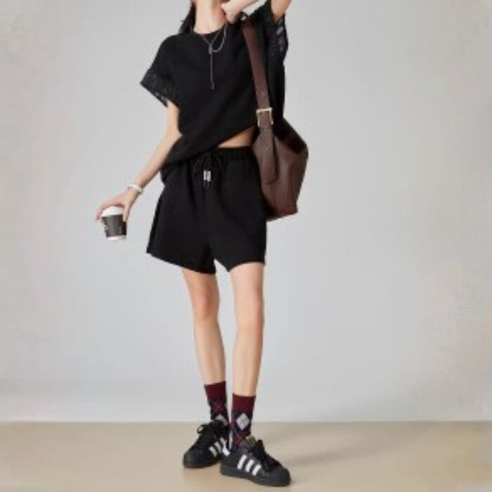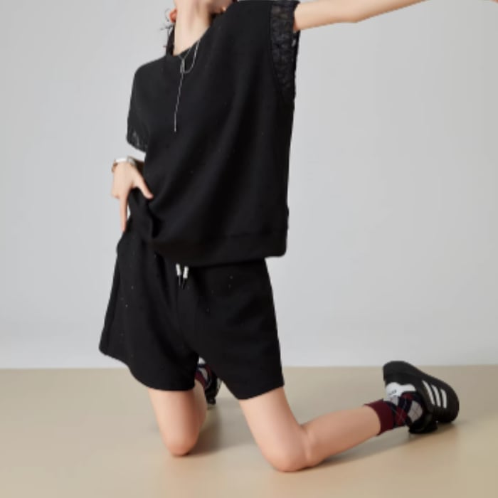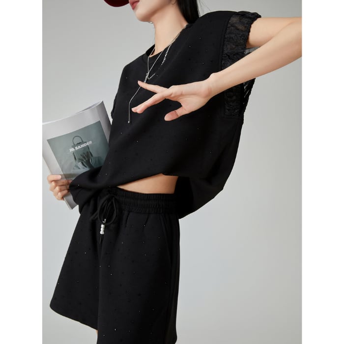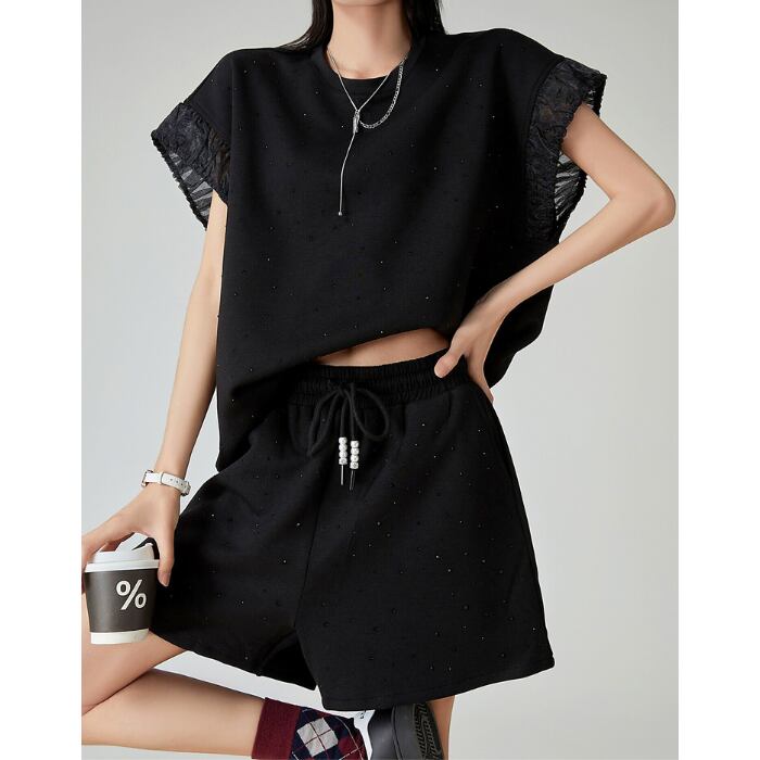 ラインストーンTシャツショートパンツ セットアップ[S-XL]