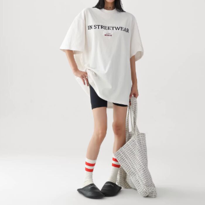 エンブロイダリープリントルーズTシャツ[S-L]