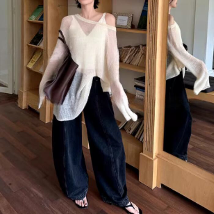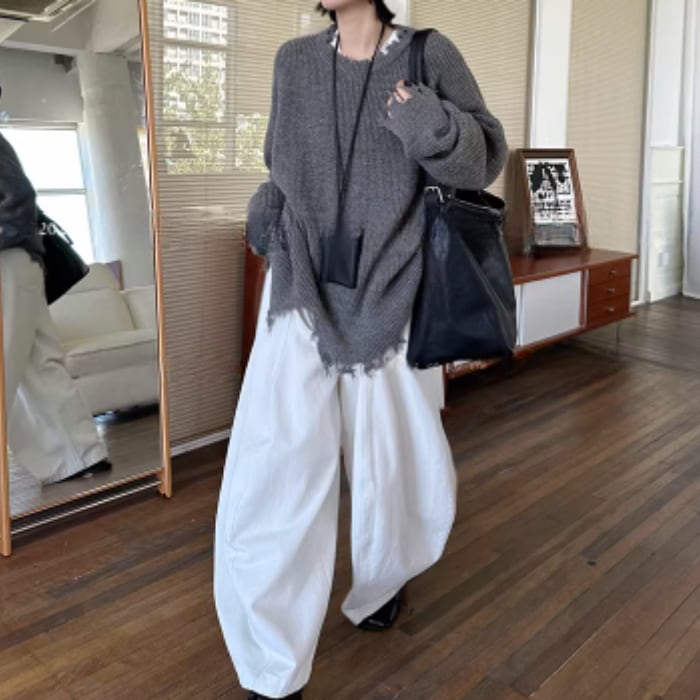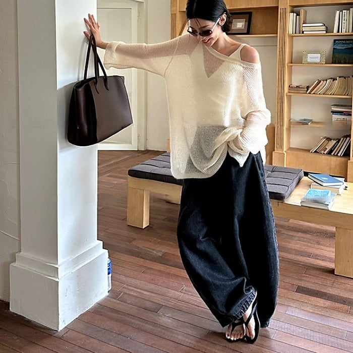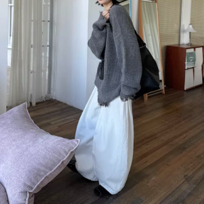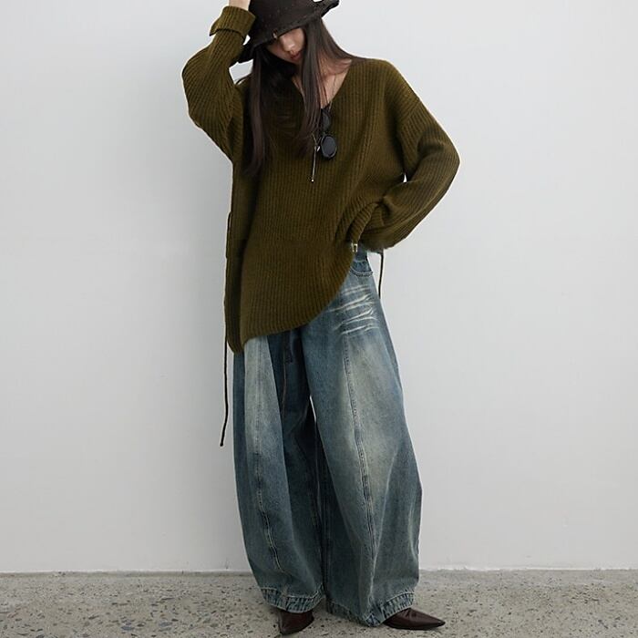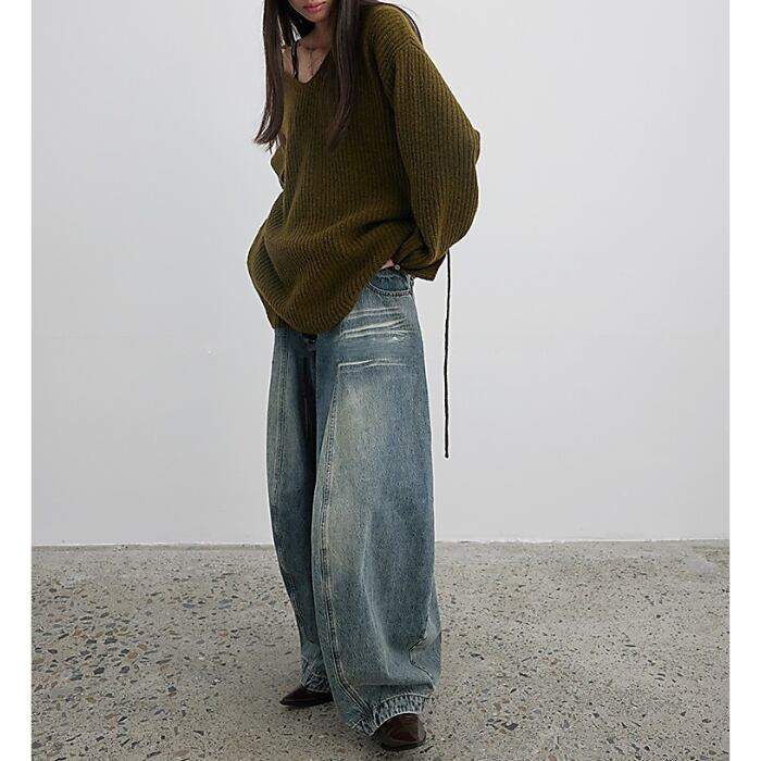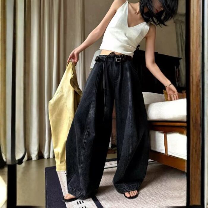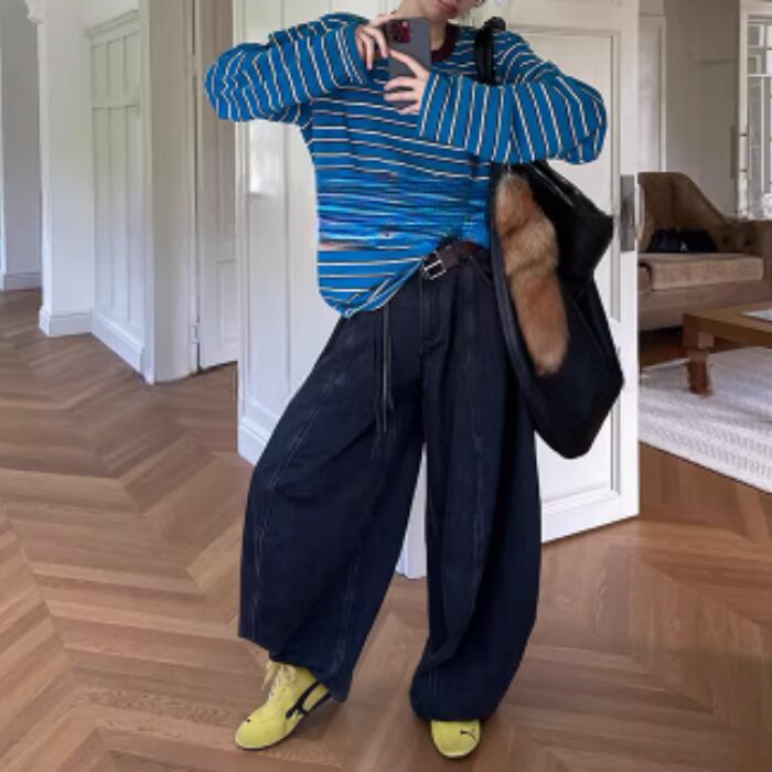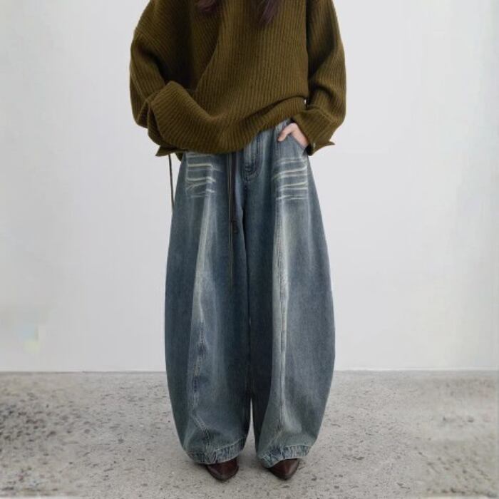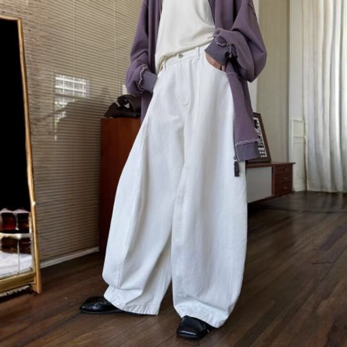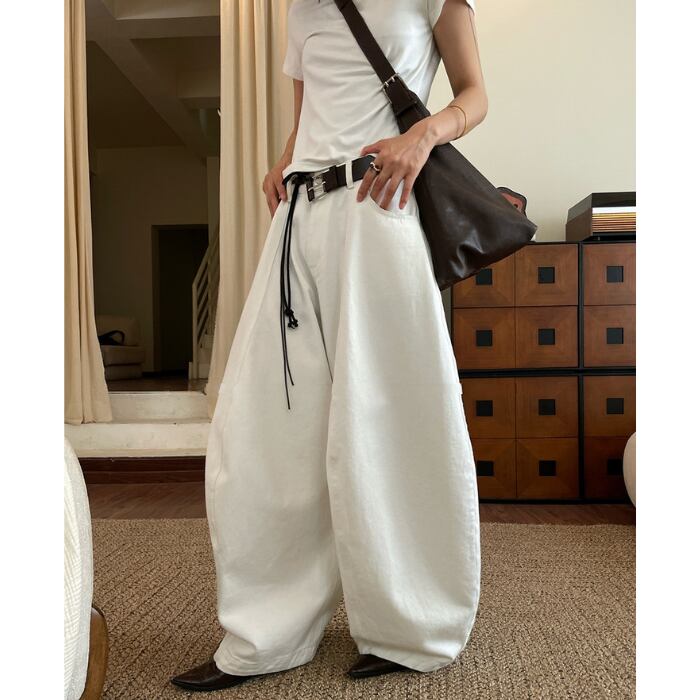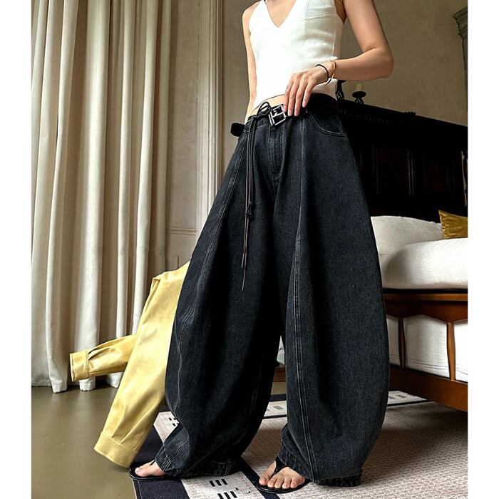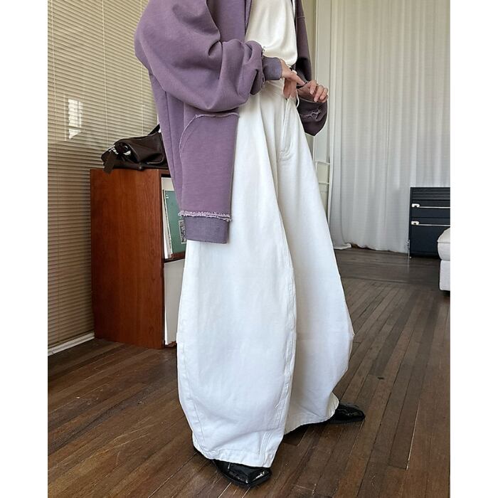 3Dカッティングワイドカーブデニムパンツ[XS-XL]