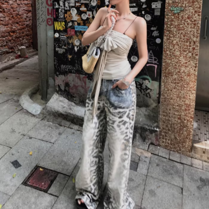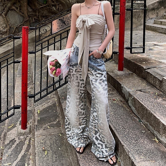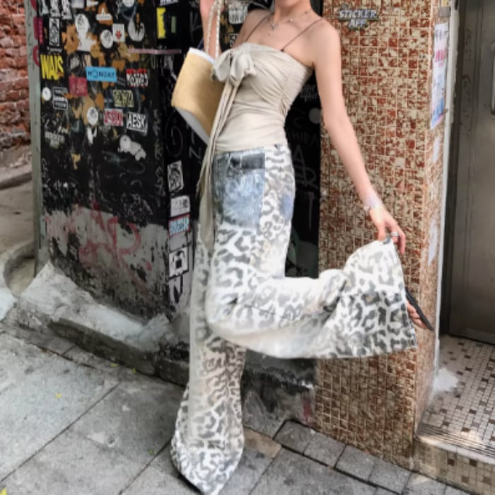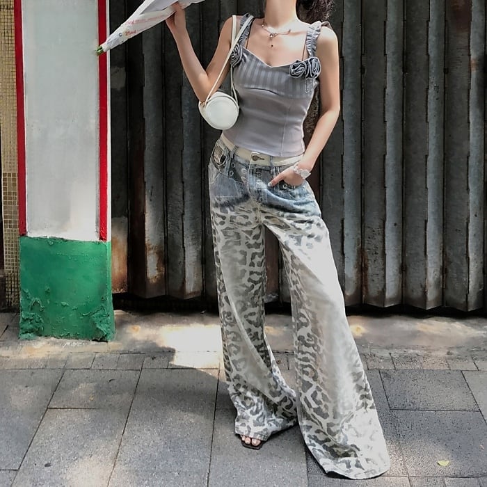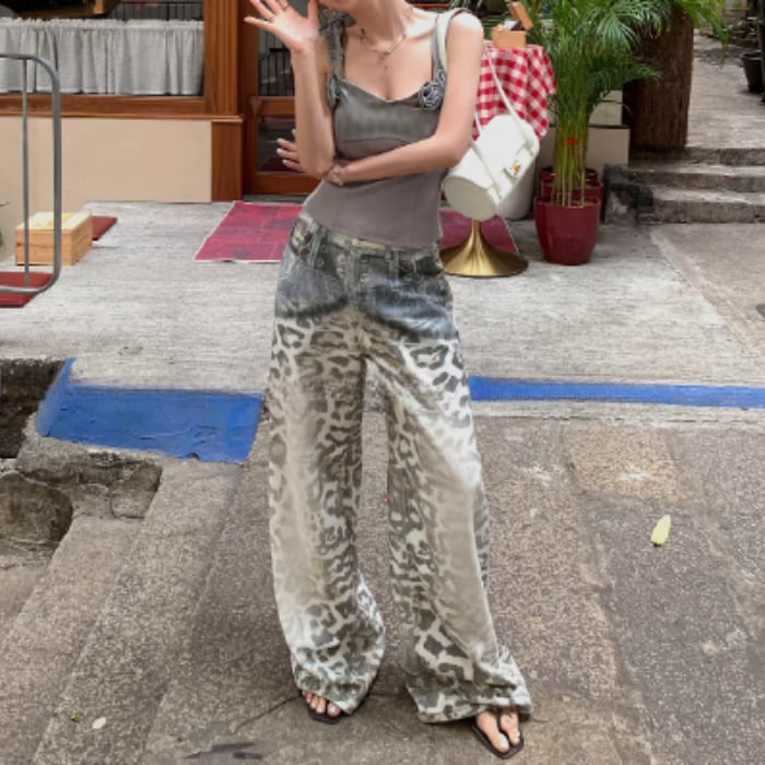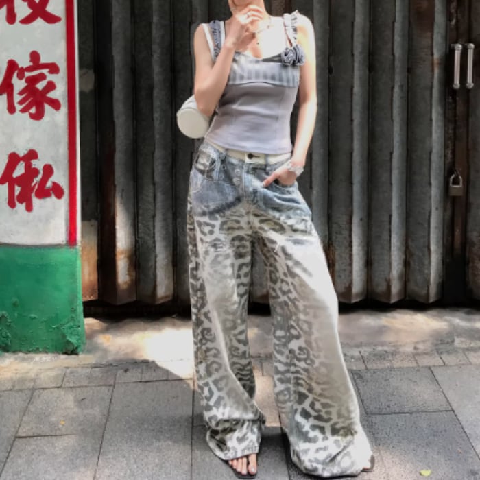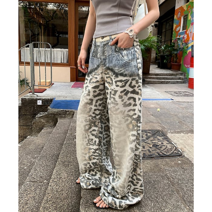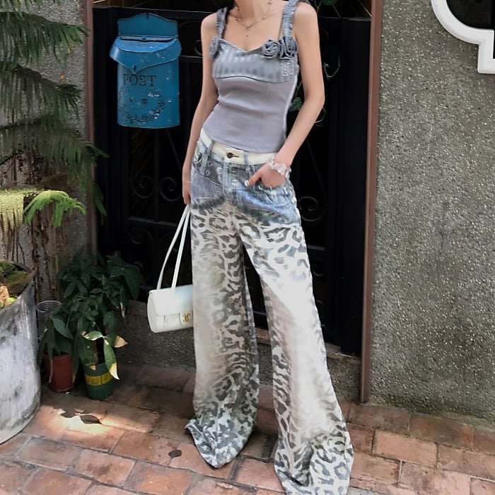 レオパードグラデーションウォッシュドデニムパンツ[S-L]
