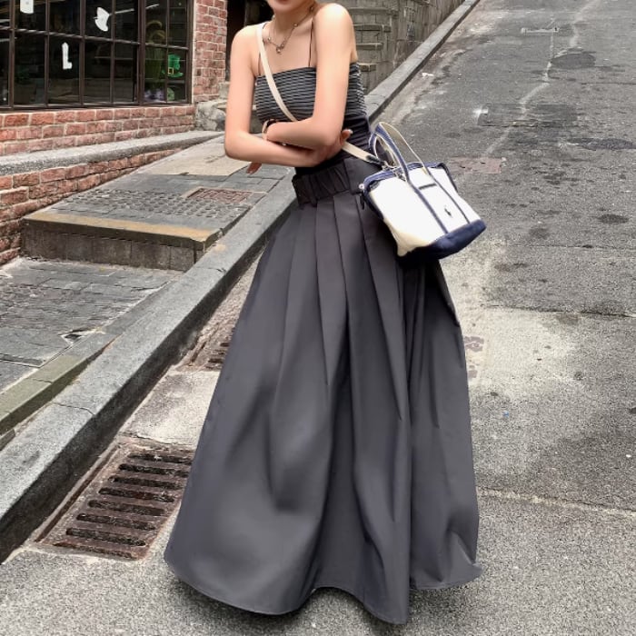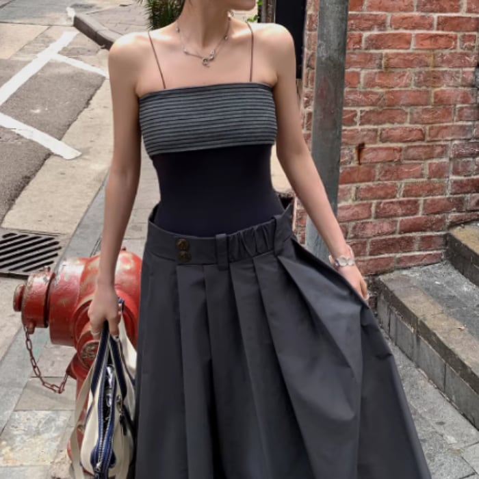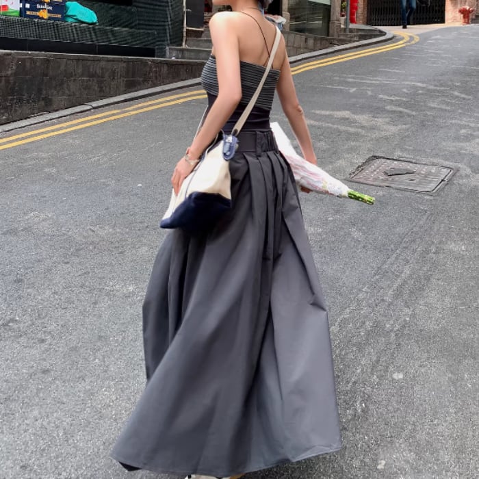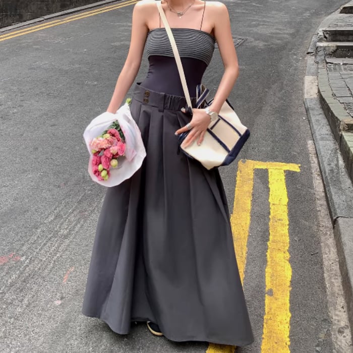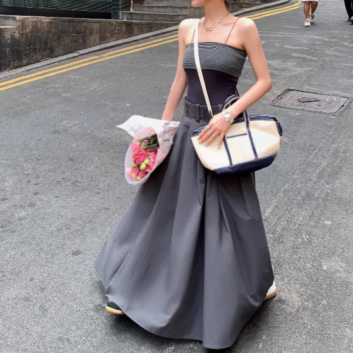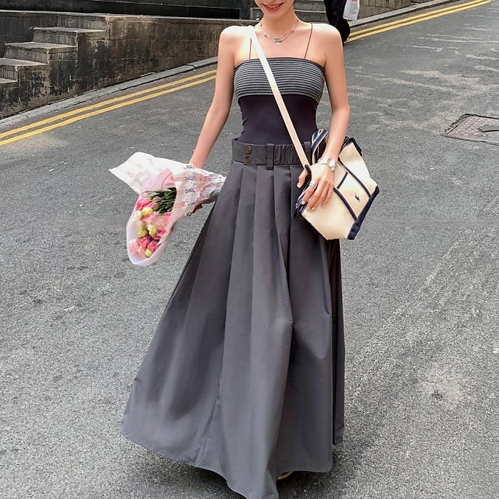 ドッキングベアトップフレアマキシワンピース[S-L]