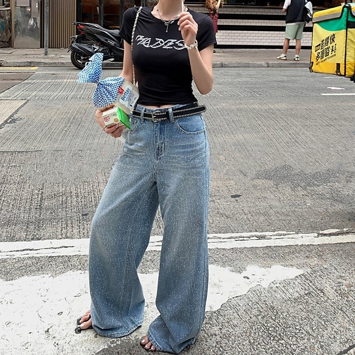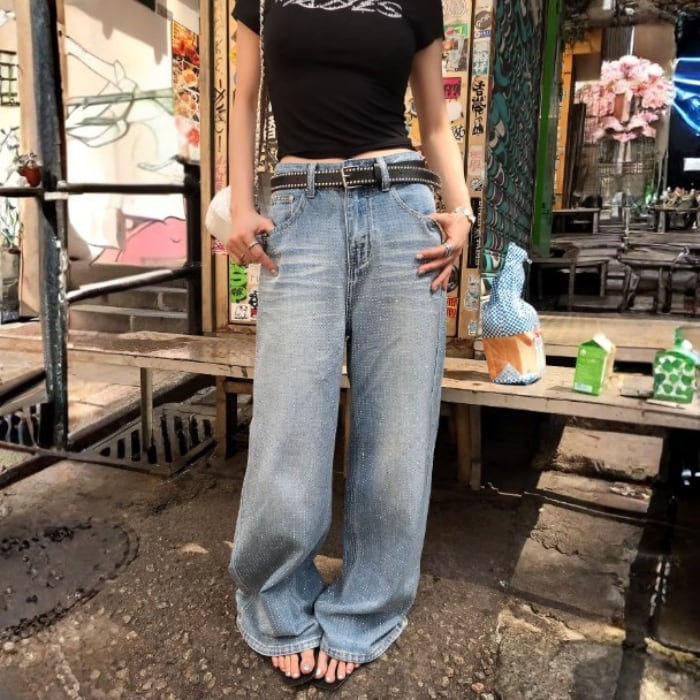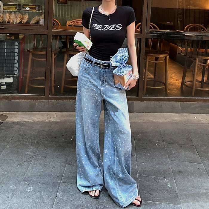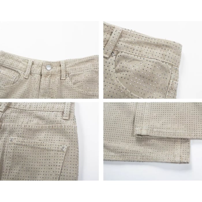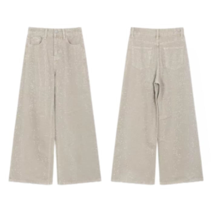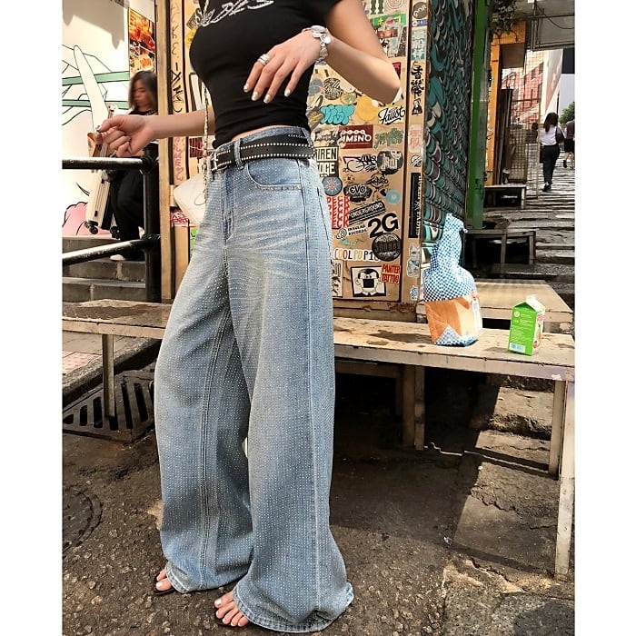 オールオーバーラインストーンワイドデニムパンツ[S-L]